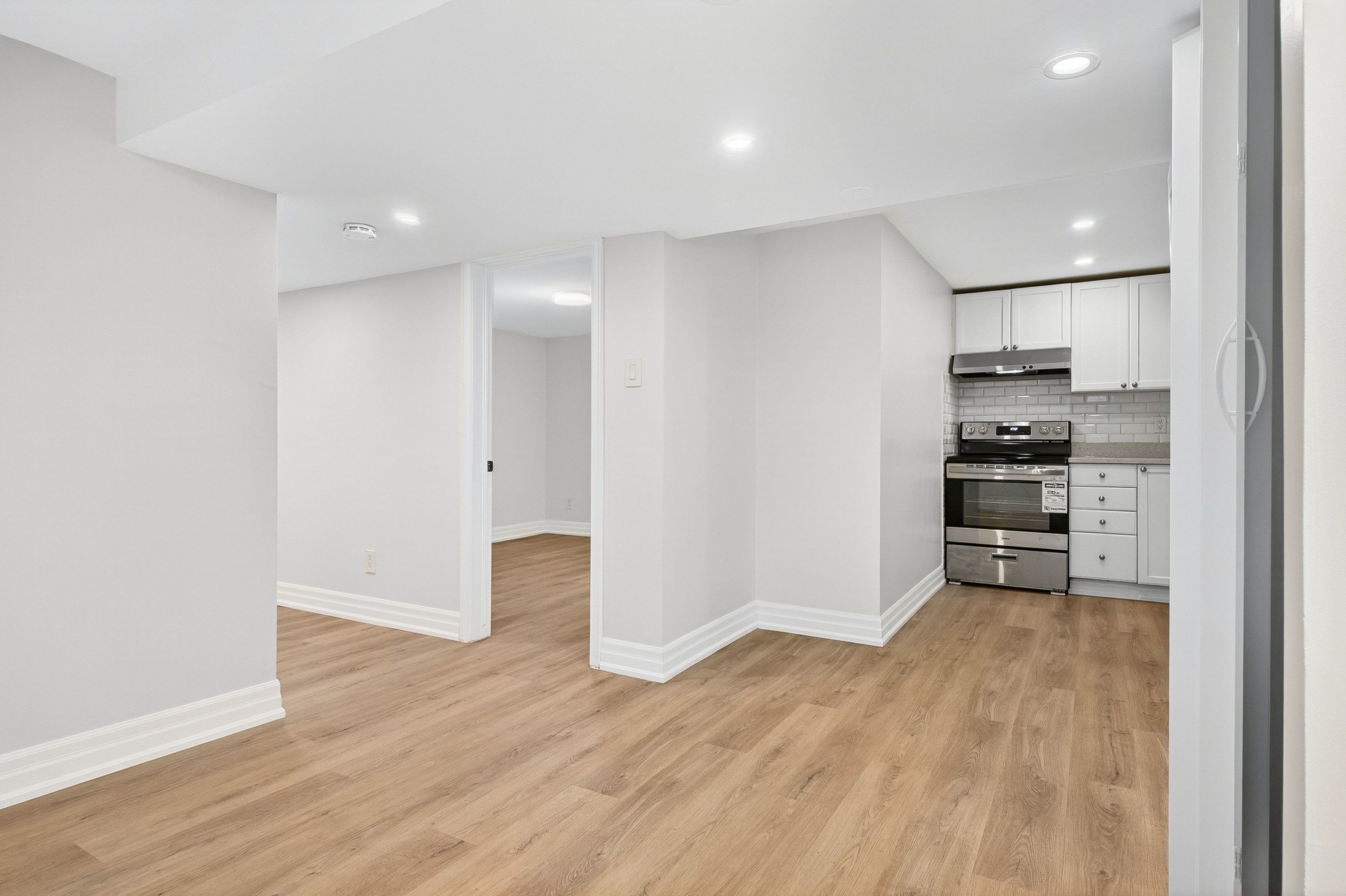 For aaa tenants only. Rarely available and just renovated, this beautiful 1,056 square-foot, 3-bedroom spacious suite is situated on a preferred residential street in a peaceful neighbourhood. The very spacious open-concept living/dining room offers natural light throughout the day, from south-facing, above-grade windows. The kitchen is designed for both style and function, finished with quartz countertops, a new stainless steel oven, range hood, and built-in dishwasher plus the convenience of an ensuite combination washer/dryer. The custom bathroom features a premium frameless glass walk-in shower and a quartz-topped vanity. And a walk-out/up from the primary bedroom takes you to your own private side patio. Heat, hydro, water, central air conditioning and one dedicated driveway parking spot are all included. Tenant is responsible for their own internet. This 3 bedroom suite is ideal for those seeking quality and comfort. No pets and this is a non-smoking premises (interior and exterior).