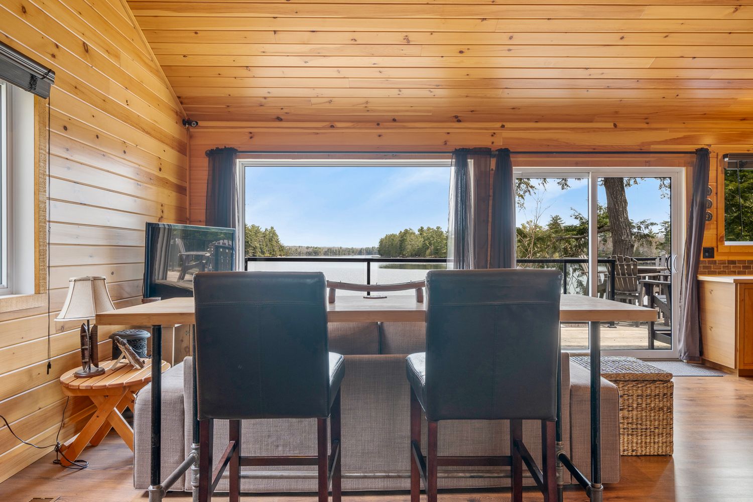 A gorgeous private four season cottage on a point of land with great views overlooking lake manitouwabing. This four season cottage has a gentle entry beach and deep water off the dock for great swimming. Located on a year round municipal road, it sits on 1. 27 acres and has 190 feet of shoreline. The cottage was built in 2014 and the 24 x 40 x 12 garage built in 2022. There is a bunkie for additional guests and the insulated building by the fire pit has a bathroom and laundry room. There is roughed in, in floor heating in the garage. Boat to many of the lake's destinations such as the manitou ridge golf club, glenwood marina or the manitouwabing outpost to name a few. Video to be added shortly