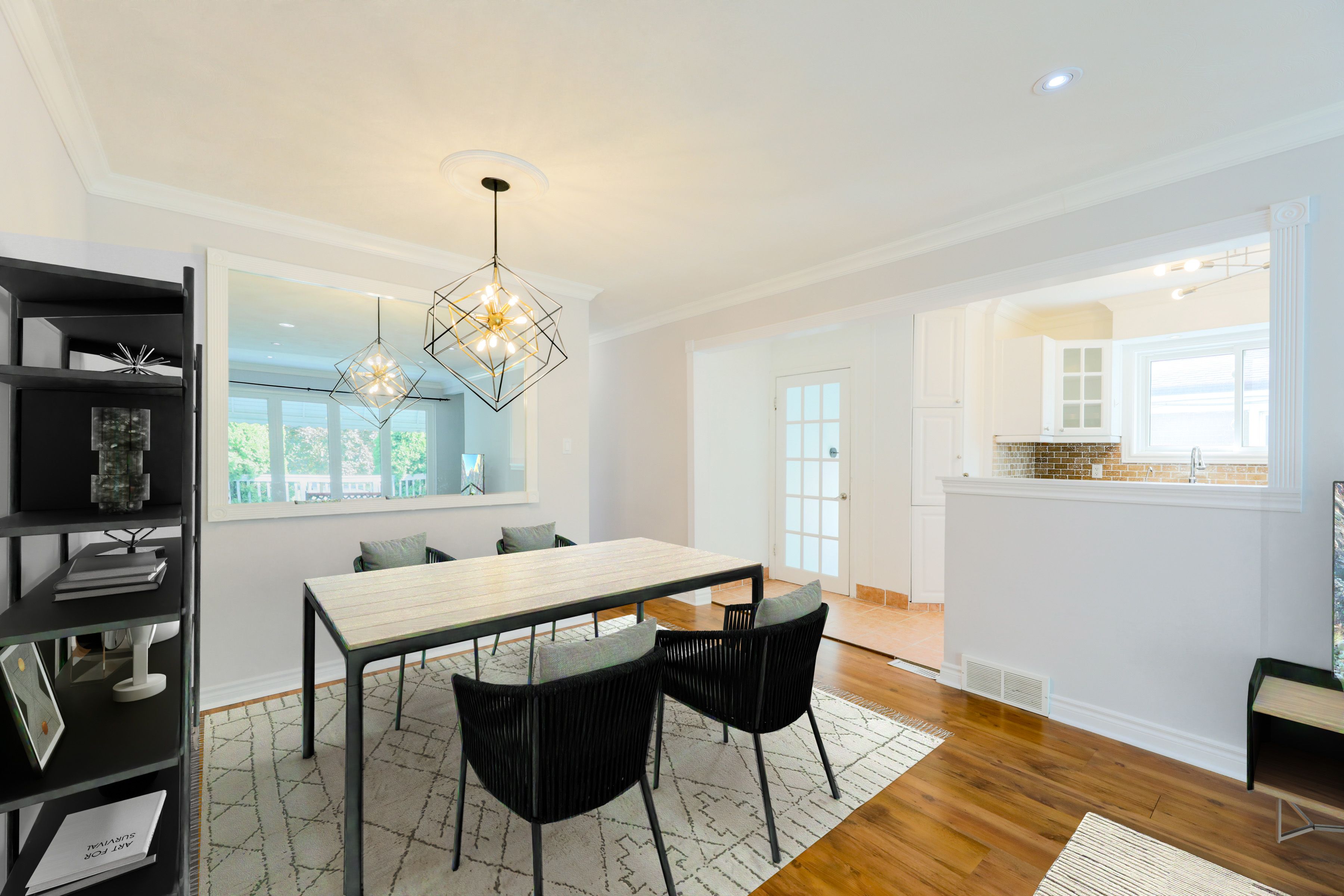 This is the perfect starter home for a young family or a couple starting their journey to homeownership, tucked away on a serene, tree-lined street that showcases abundant mature foliage, offering a sense of peace and character. As you enter, you are immediately embraced by an inviting layout with rich wood floors, exuding warmth and timeless elegance. The main level features a spacious, open concept living and dining area, where generous windows invite streams of natural light to cascade in, illuminating the space and creating a vibrant atmosphere for both joyful gatherings and quiet moments of relaxation. The well-appointed eat-in kitchen is a chef's delight, featuring generous counter space and ample cabinetry, making meal preparation both functional and convenient. This lovely home features 3 generously sized bedrooms, providing ample space for relaxation and personalization. There are 2 beautifully renovated bathrooms equipped with modern fixtures. The separate private entrance opens to an inviting in-law suite or guest suite. This welcoming space features a spacious living room with plenty of natural light. The newly updated, additional kitchen is designed for relaxed, casual dining and offers ample counter space. Completing this suite is a full bathroom that combines comfort and functionality, along with shared laundry facilities for convenience. Throughout the entire home, fresh paint creates a bright and inviting atmosphere. This charming home is only a stroll away from warden subway station, the sought-after danforth gardens public school, and the highly rated w. A. Porter post-secondary. Nearby, you'll discover a vibrant selection of shopping outlets, warden subway station, delightful dining establishments, cafes, and trails that invite exploration. With every thoughtful detail meticulously attended to, this residence is move-in ready, inviting you to embrace and enjoy its excellent amenities!