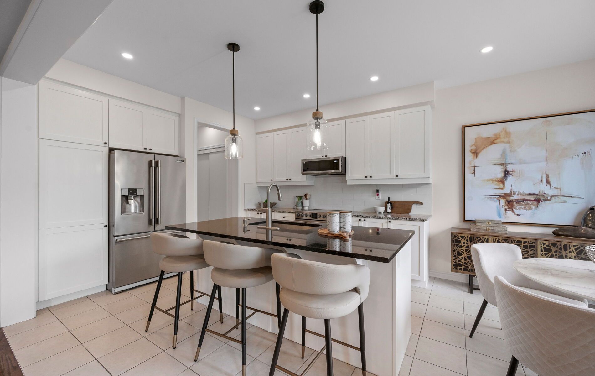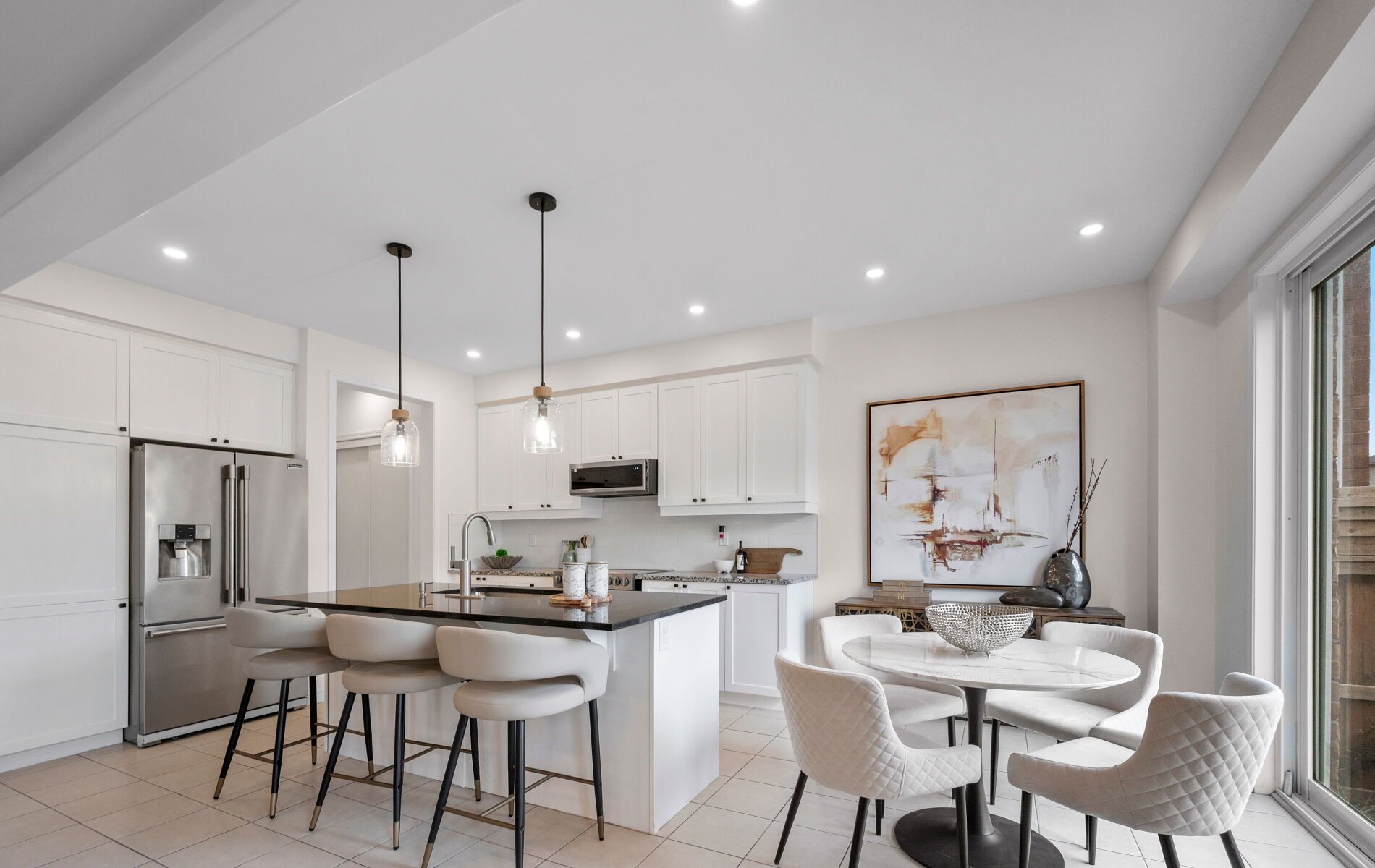 • Bright open-concept main floor with modern kitchen and 9-ft ceilings.