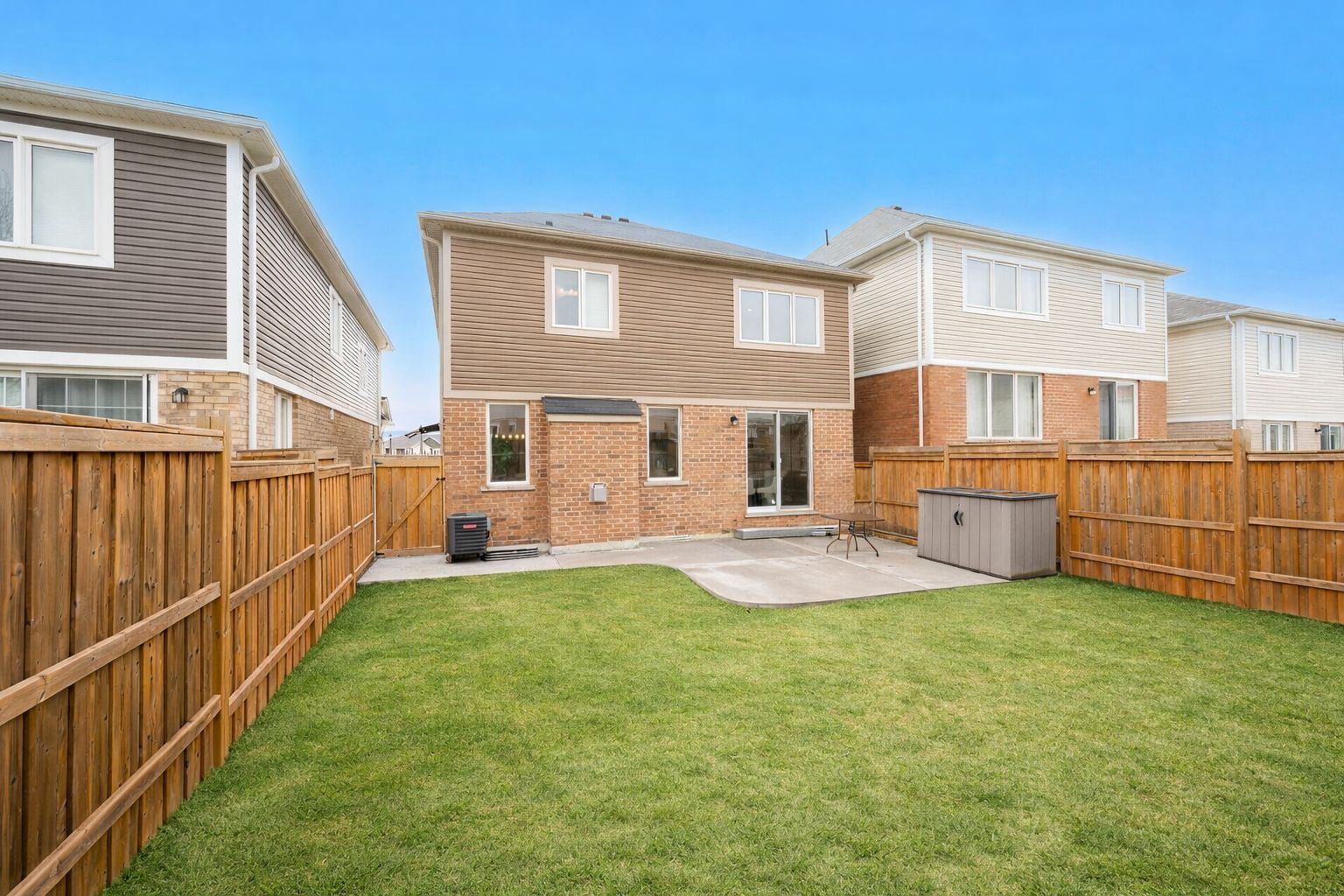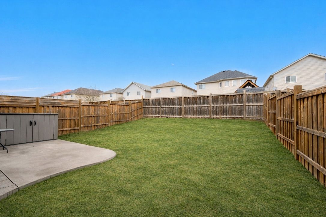 • Fenced backyard with stamped concrete patio for outdoor entertaining.