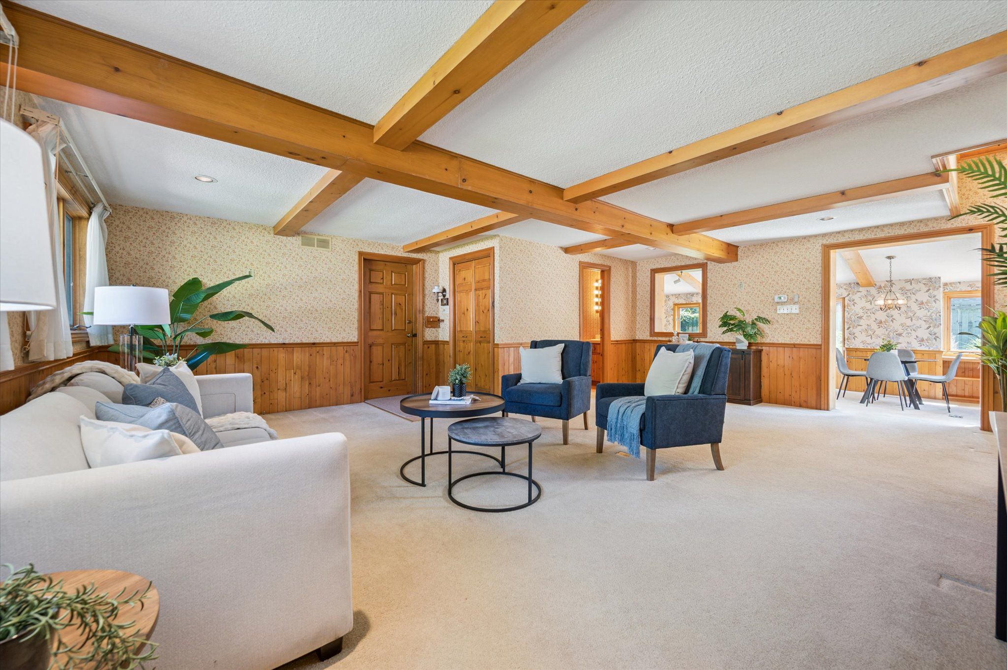 • Various living areas including a sunroom and family room with unique details.