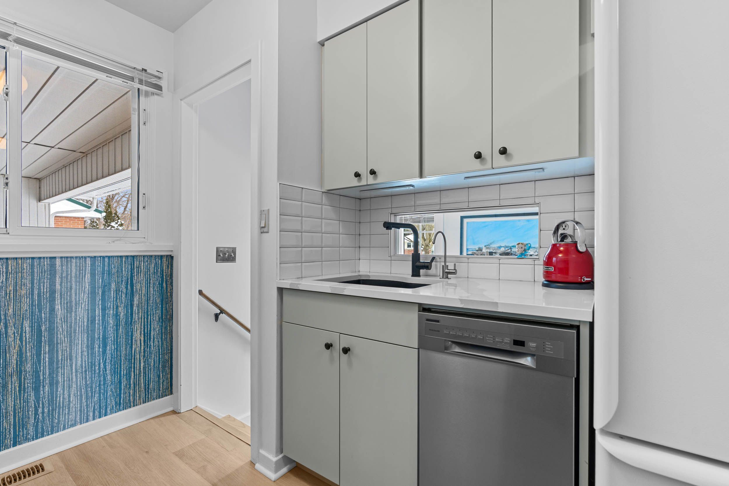 If you've been waiting for the perfect place to right-size without giving anything up, this is it. Modern finishes, tons of parking, a great backyard, and an unbeatable west-side location make this home stand out. Welcome to this charming red brick bungalow, where standout curb appeal meets stylish, thoughtfully updated interiors. Set on a quiet, pride-filled street lined with well-kept mid-century homes, you're just steps from a neighbourhood park, minutes to scenic trails, and within walking distance to a local elementary school, making this an ideal spot for easy everyday living. Outside, you'll love the double-wide concrete driveway leading to a spacious carport with convenient side entry. The fully fenced backyard features an oversized deck, mature landscaping, and plenty of space to relax, entertain, and make lasting memories. Inside, the home is full of warmth and personality, with tasteful finishes throughout. The kitchen offers quartz countertops, refinished cabinetry, a mix of stainless and white appliances, and unique design touches like wood slat accents and stylish wallpaper. Updated vinyl flooring runs through the main living areas, adding to the bright, modern feel. The main floor includes two comfortable bedrooms, a beautifully updated bathroom with a glass shower, and a flexible third room that could work well as a bedroom, dining area, or home office. Downstairs, the finished lower level offers a cozy rec room with a gas fireplace, pot lights, and smooth ceilings. One of the standout features is the original wet bar, full of retro charm and future potential. This level also includes a full four-piece bathroom, laundry area, and plenty of storage. Move-in ready, full of personality, and easy to love, this is a home you won't want to miss.