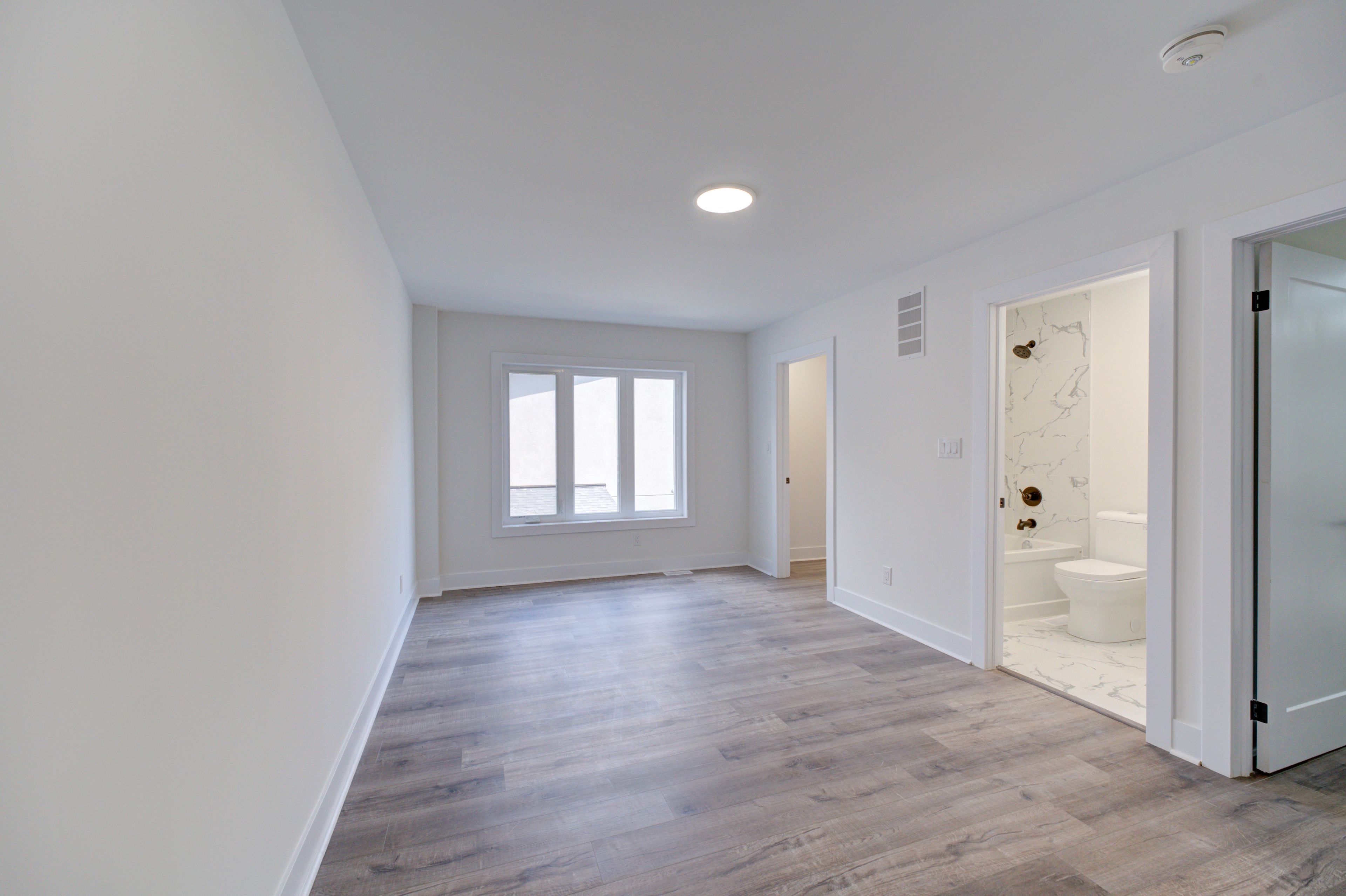 • Upper level includes a primary bedroom with a walk-in closet and ensuite bathroom.