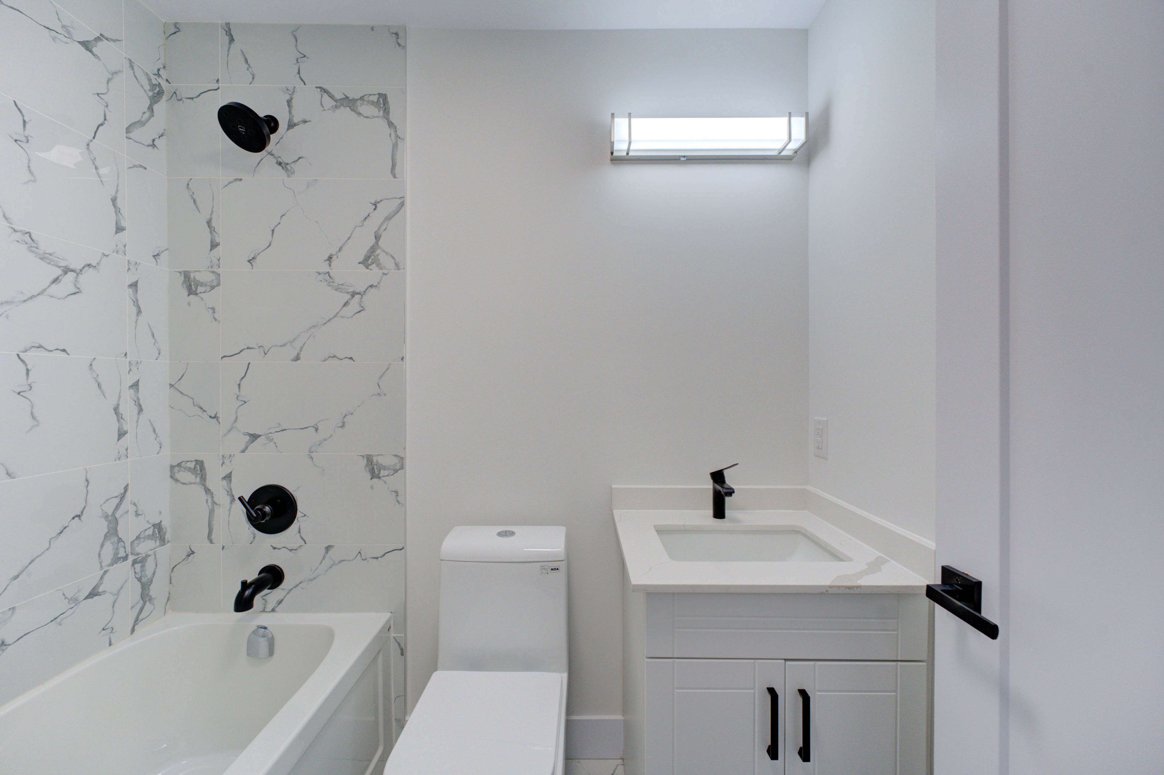 • Modern kitchen features quartz counters and stainless steel appliances for a sleek look.