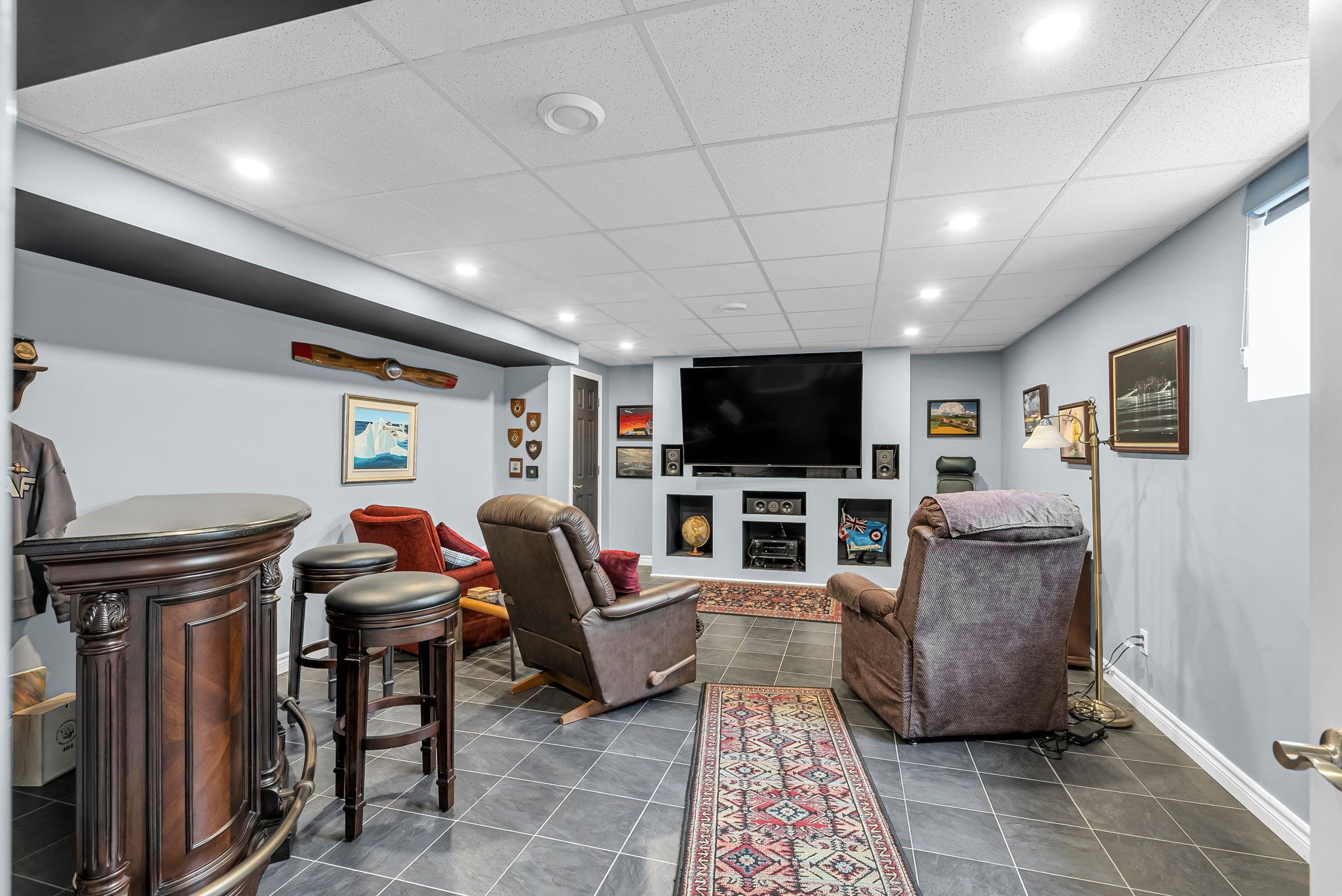 • Finished lower level with a theater room, recreation space, and extra bedroom.