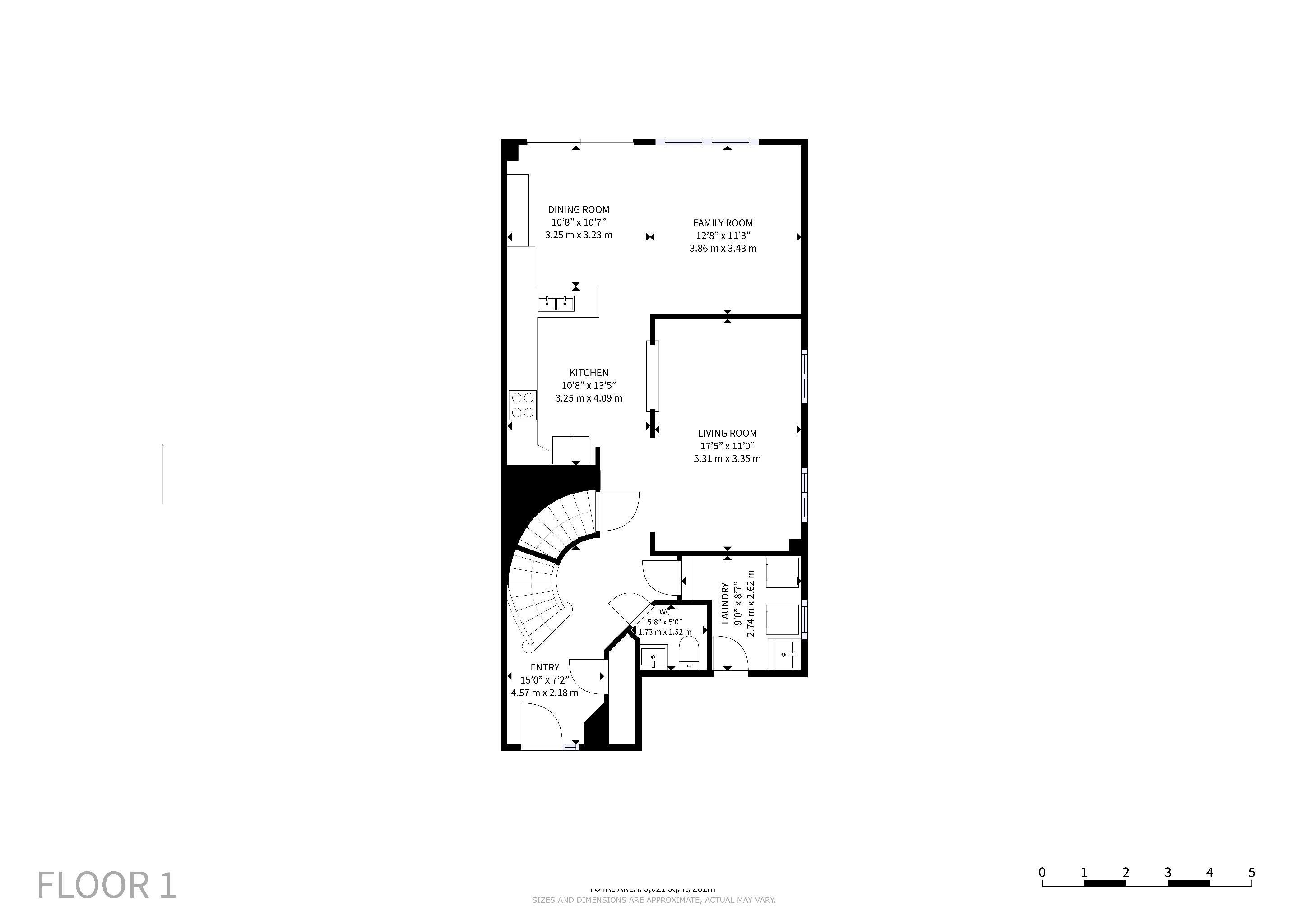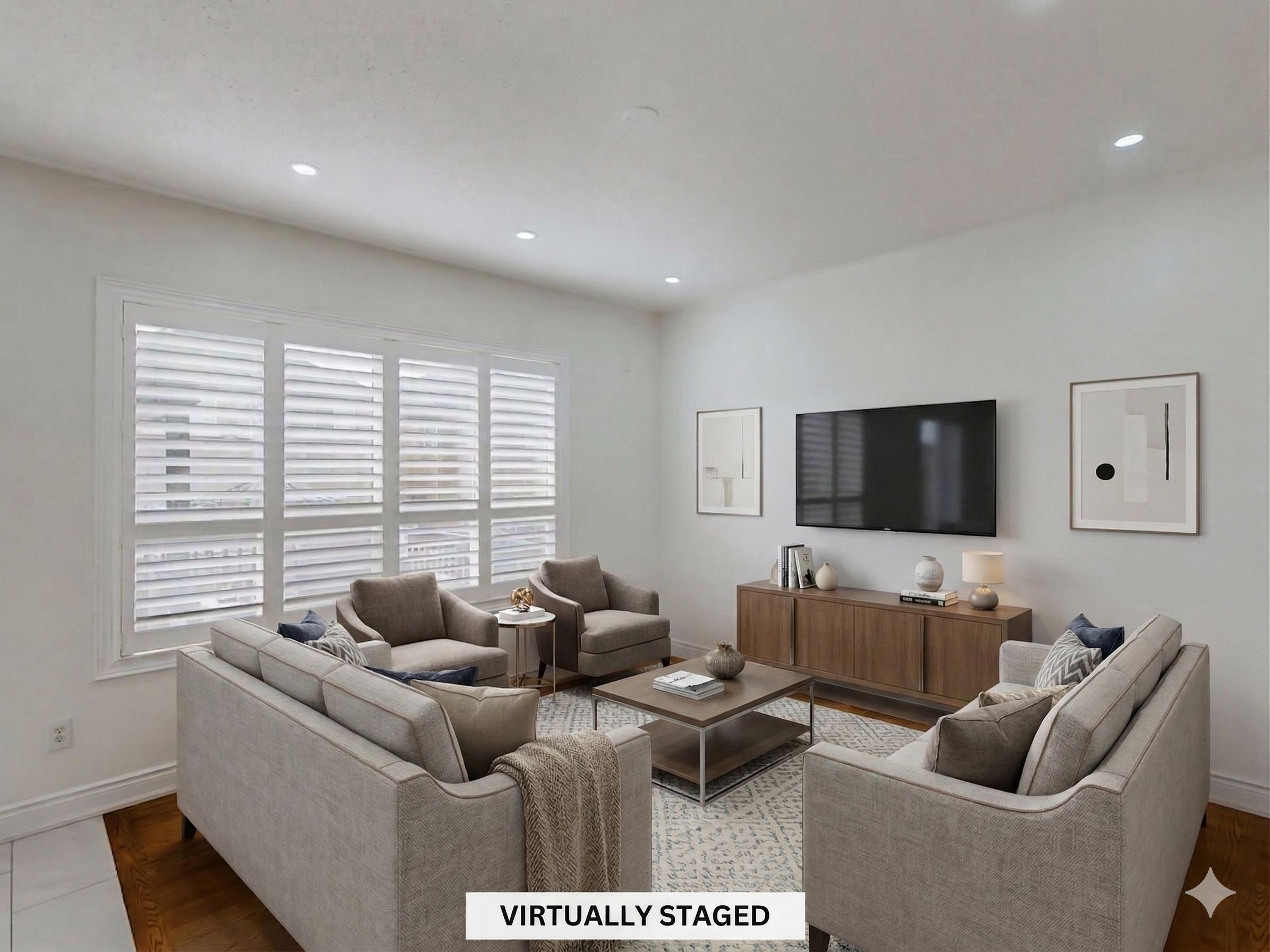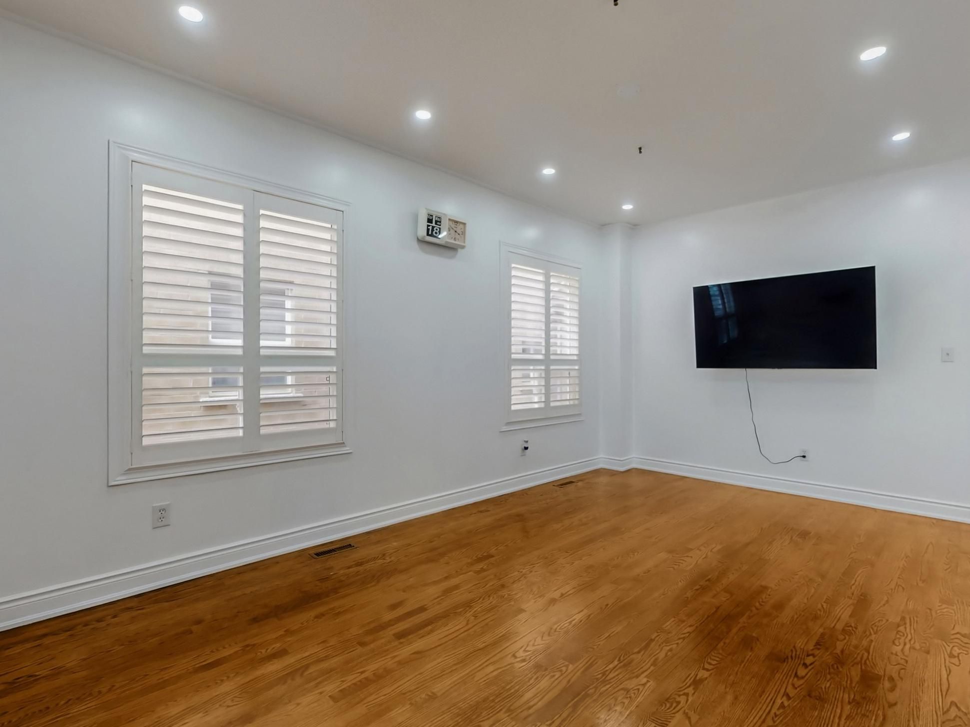 • Inviting living and dining area with large windows and hardwood floors.