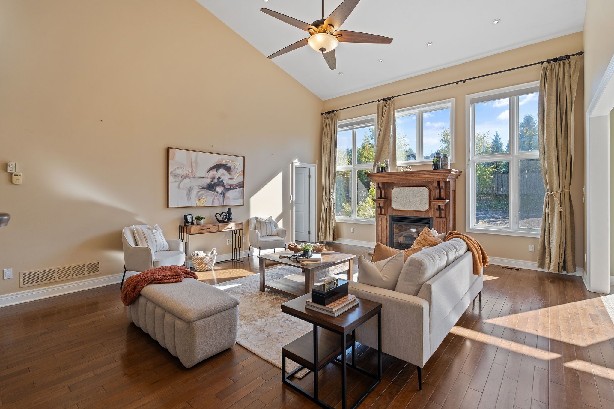 • Open-concept main floor with 20-ft vaulted ceilings and bright living spaces.