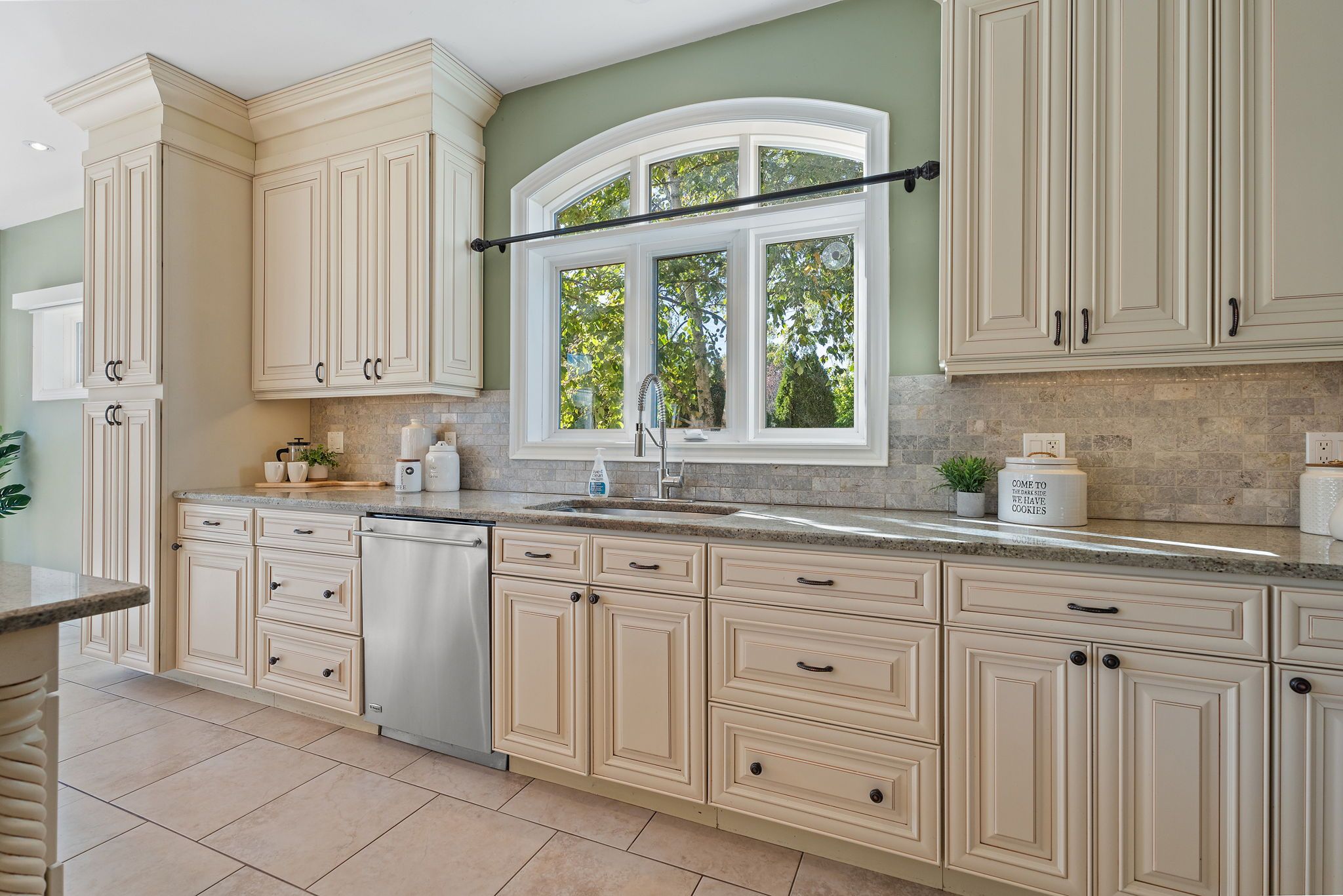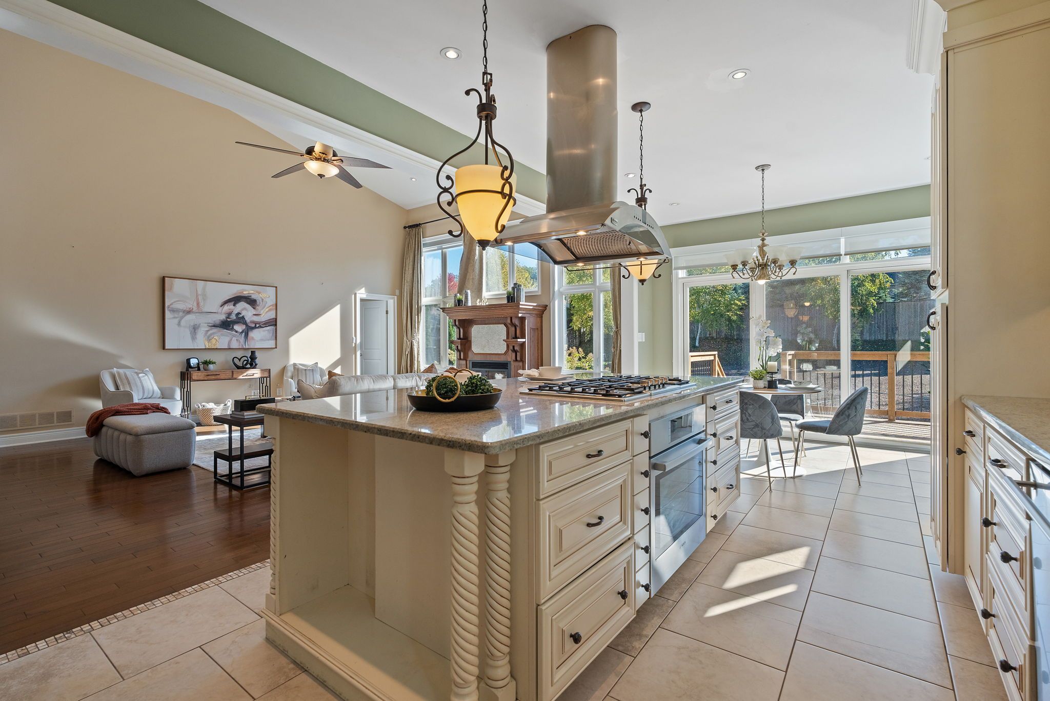 • Custom kitchen with granite countertops and ample cabinetry for convenience.