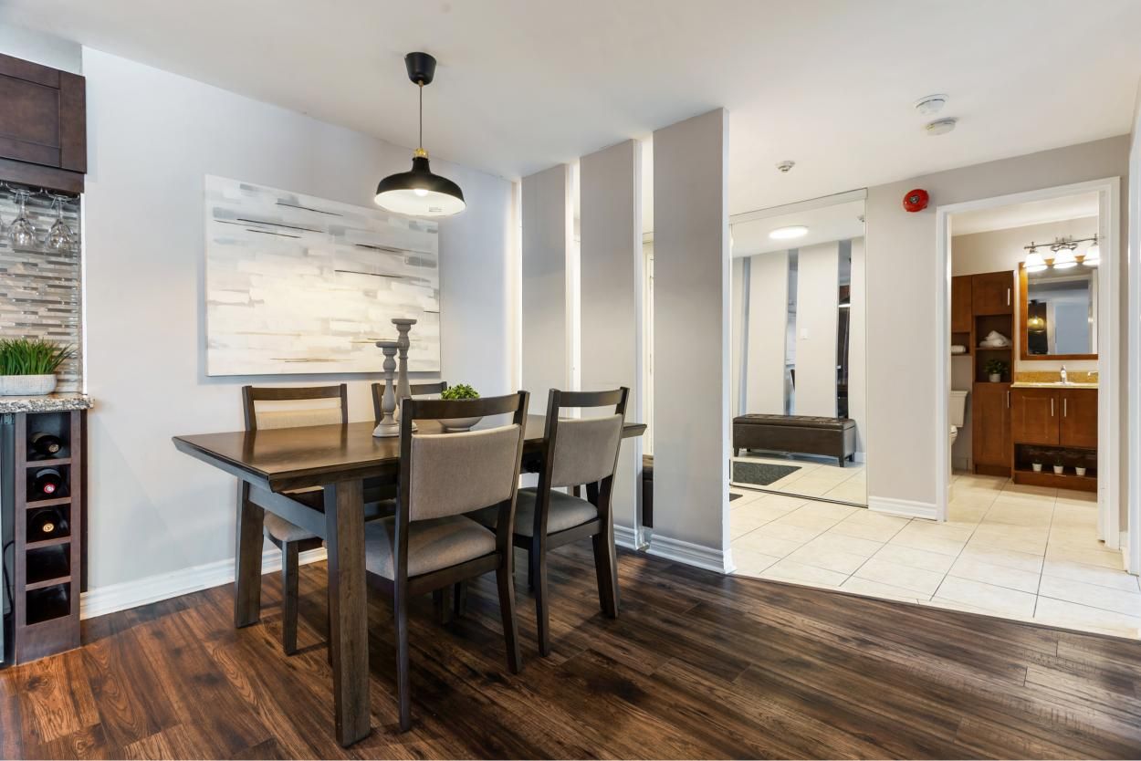 Welcome to 6720 glen erin drive, a beautifully renovated and move-in ready 2-bedroom condo in the heart of meadowvale. Offering nearly 1,000 square feet of well-designed living space, this bright and spacious home features a functional open-concept layout ideal for both everyday living and entertaining. The updated kitchen showcases granite countertops, custom cabinetry, and a stylish coffee bar, seamlessly flowing into the living area and separate dining room. Large windows allow for plenty of natural light, creating a warm and inviting atmosphere throughout the home. Both bedrooms are generously sized with ample closet space, while the modern bathroom has been tastefully updated. This turnkey unit also includes the rare convenience of two parking spaces. Located in one of mississauga's most convenient communities, you are just a short 5-minute walk to meadowvale town centre with shops, restaurants, groceries, and everyday amenities. Commuters will appreciate the quick 2-minute drive to meadowvale go station and easy access to highways 401 and 407. Costco, walmart, parks, and schools are all just minutes away. An exceptional opportunity for first-time buyers, downsizers, or investors seeking a beautifully updated home in a prime meadowvale location.