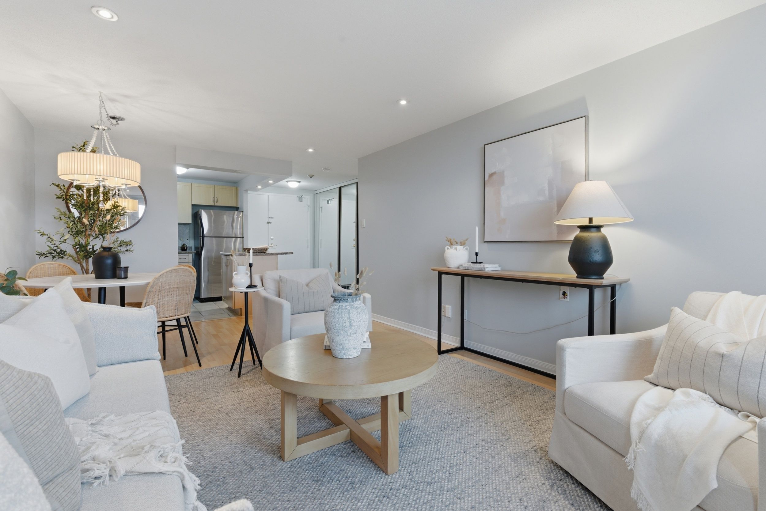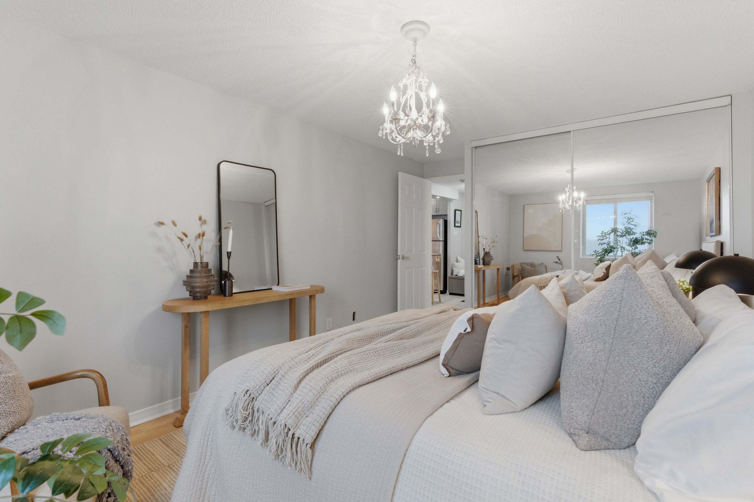 Welcome to this bright and airy 1- bedroom, 1 bathroom condo complete with a parking spot and in-suite laundry. Offering a spacious, open-concept layout designed for comfortable everyday living. Thoughtfully updated and move-in ready, this home features durable laminate flooring, pot lights throughout, and an abundance of natural light that fills the space beautifully. The functional layout makes the most of every square foot, with a generously sized bedroom, ample closet space, and a seamless flow between living, dining, and kitchen areas. The kitchen offers plenty of storage and workspace, making it as practical as it is inviting. Added bonuses include a new a/c and furnace for year-round comfort and peace of mind. Located in one of mississauga's most convenient communities, you're just a short 5-minute walk to meadowvale town centre with shops, restaurants, groceries, and everyday essentials at your doorstep. Commuters will love the quick 2-minute drive to meadowvale go station, along with easy access to highways 401 and 407. Costco, walmart, parks, and schools are all just minutes away. An exceptional opportunity for first-time buyers, downsizers, or investors looking for a beautifully maintained home in a prime meadowvale location.