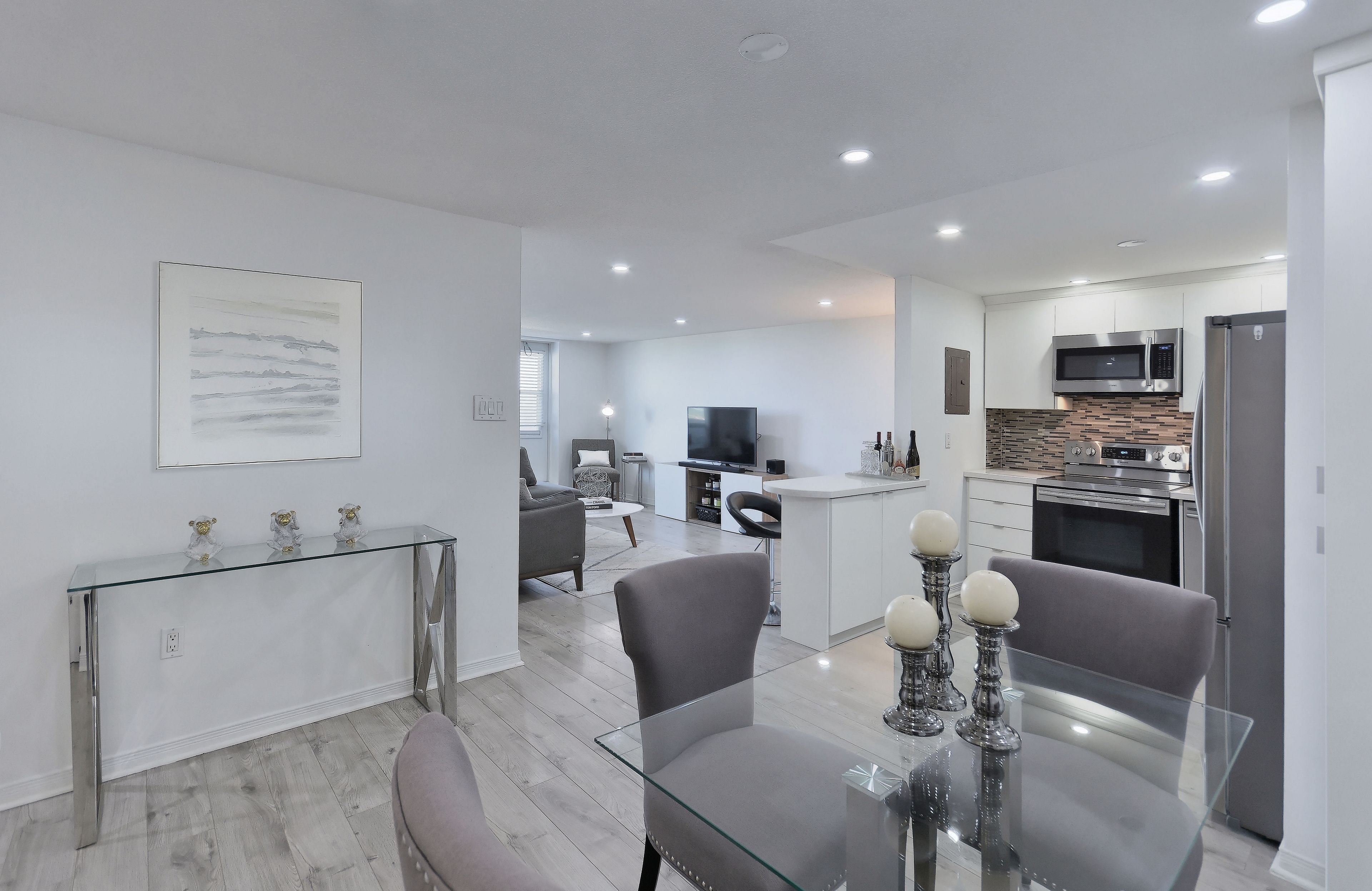 A gorgeous, fully renovated unit in the heart of meadowvale. This 2 bed, 1 bath condo offers a modern touch with all the luxury & upgrades you are looking for, with parking and ensuite laundry. The open concept layout features laminate floors throughout (no carpets!), creating a modern and low-maintenance space. Walls in the foyer & kitchen have been removed giving a full re-model. Quartz counters, stainless steel appliances, pot lights, upgraded bathroom. The all-inclusive rent makes living here hassle-free so you don't have to worry about running the air conditioning, laundry, or dishwasher. Well run, clean building. Conveniently located within walking distance to mississauga transit, go bus, go train, meadowvale town centre, lake aquitaine, and meadowvale community centre. Enjoy great trails, nearby schools, shopping, and easy highway access. *pictures are from prior to the current tenant*
