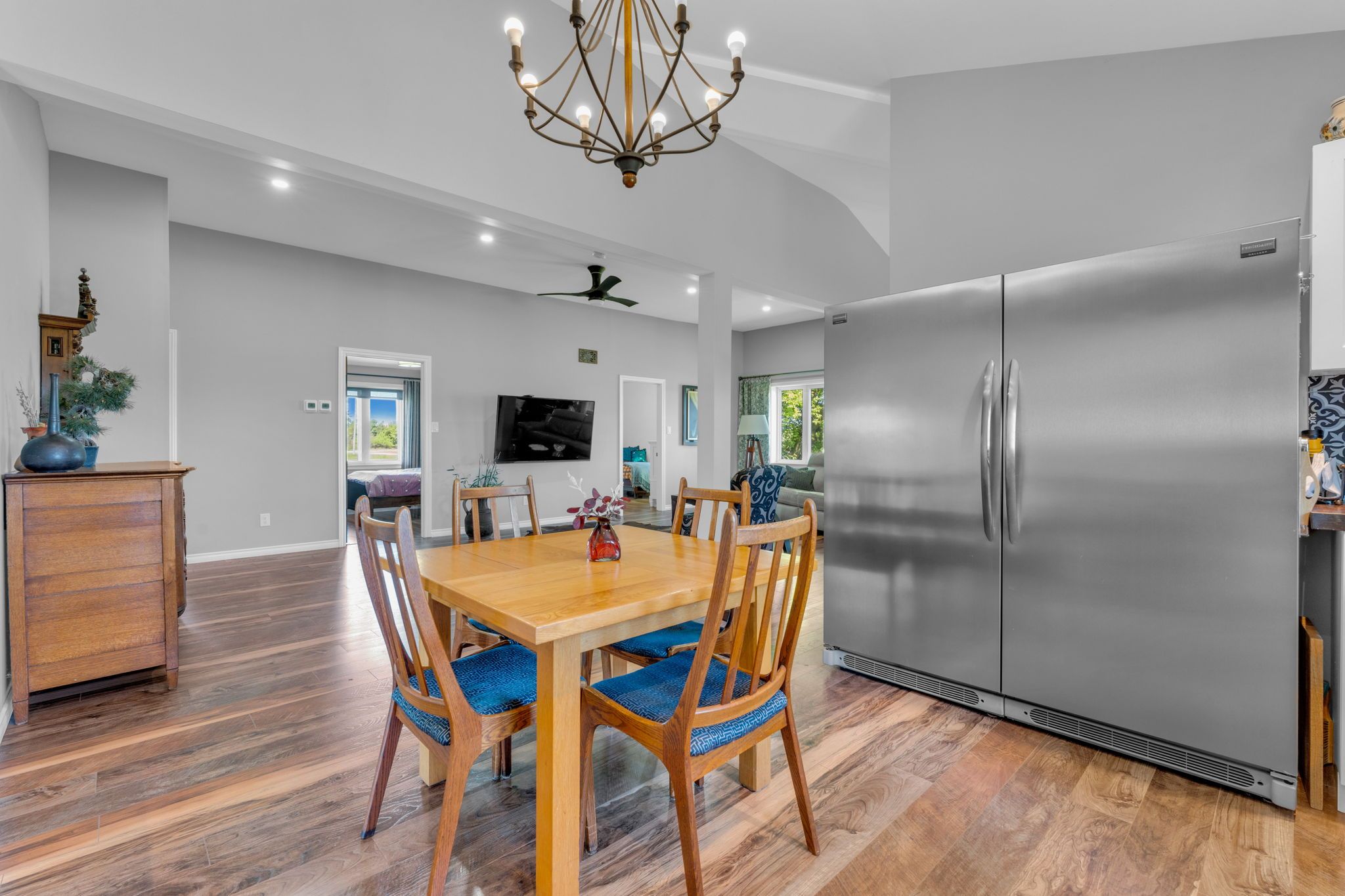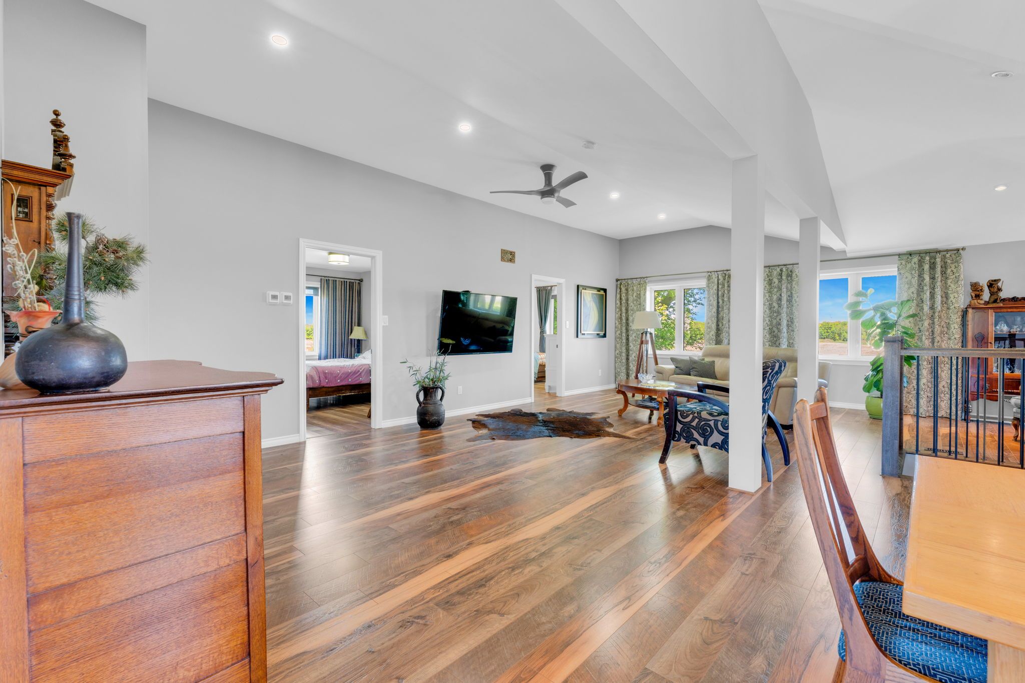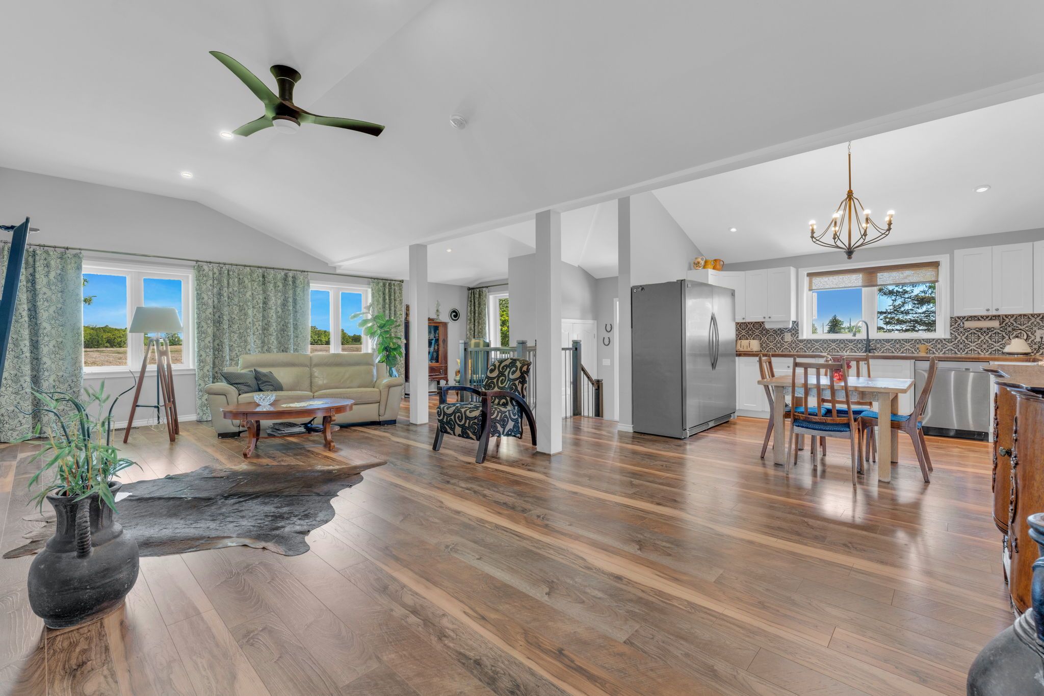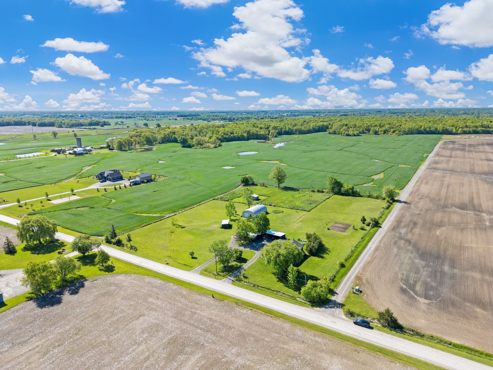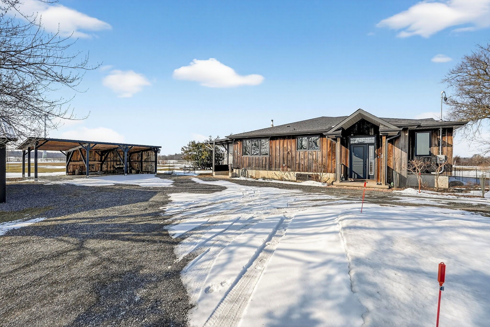 4. 02 acres of rural paradise! This stunning hobby farm property features a "practically new" home and exceptional outbuildings, offering the opportunity to own a turnkey acreage in west lincoln. An impressive 50' x 29' insulated quonset workshop comes equipped with a water, concrete floor, wood stove and 70 amp electrical service. The home underwent a complete transformation in 2018 with majority of foundation, framing, electrical, plumbing, hvac, interior and exterior finishing, and roofing updated. Main floor features include a spacious living space with soaring vaulted ceilings and a modern kitchen with white cabinetry and rich wood countertops. The dining room has garden door access to a covered 10' x 8' rear deck. 4 main floor bedrooms and a 5-piece bathroom complete the main level. A walk-up basement with a separate entrance offers potential for an in-law suite. The basement offers an additional bedroom, an expansive rec room and cold storage room. A modern 3-piece bathroom features a walk-in shower, oak vanity, penny tile flooring, and a decorative mirror. Additional outbuildings include: 29' x 16' garage/storage building with single car parking and wood storage area, an 11' x 23' storage building and an 18' x 30' carport with covered parking for three vehicles - complete with hydro service for added convenience. The chicken coop and dog shed both benefit from hydro service, ensuring your hobby farm operations run smoothly year-round. This property offers the ideal setting to enjoy the peace and privacy of rural living. With over 4 acres of land, premium outbuildings, a garden, and a fenced-in chicken coop, this hobby farm is truly a rare find where the possibilities are endless.