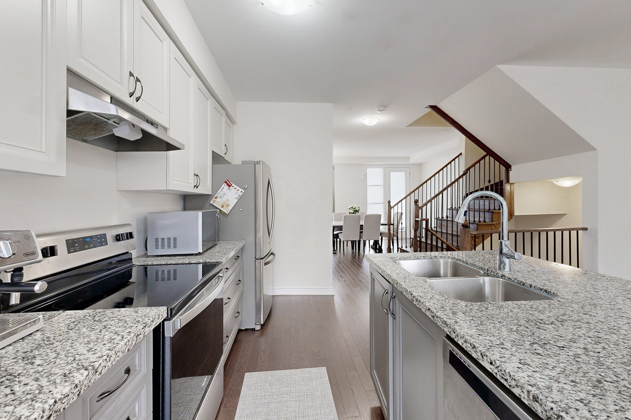 Spacious 1,900 sq ft beautifully finished home with 3 bdrms, 4 baths, sun-filled open concept floor plan. Eat-in kitchen with island and breakfast bar, with two walkouts to a large deck perfect for outdoor entertaining. Balcony off the master bdrm provides additional outdoor living space. Other highlights of this home include a private driveway, a built-in garage, and ample parking and storage options. Located near parks, shopping, downtown brooklin, schools and easy highway access for commuters and much, much more! Must be seen, book a showing now!!! Vtb 1st or 2nd mtg. Min. 15% dp. Regardless of income or credit!!