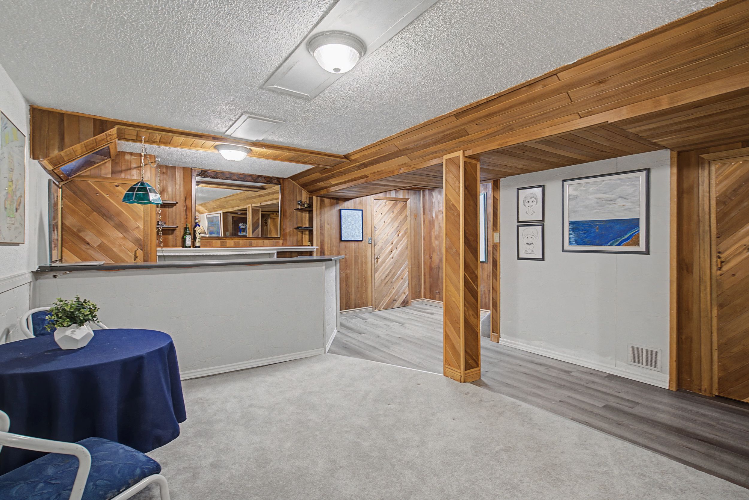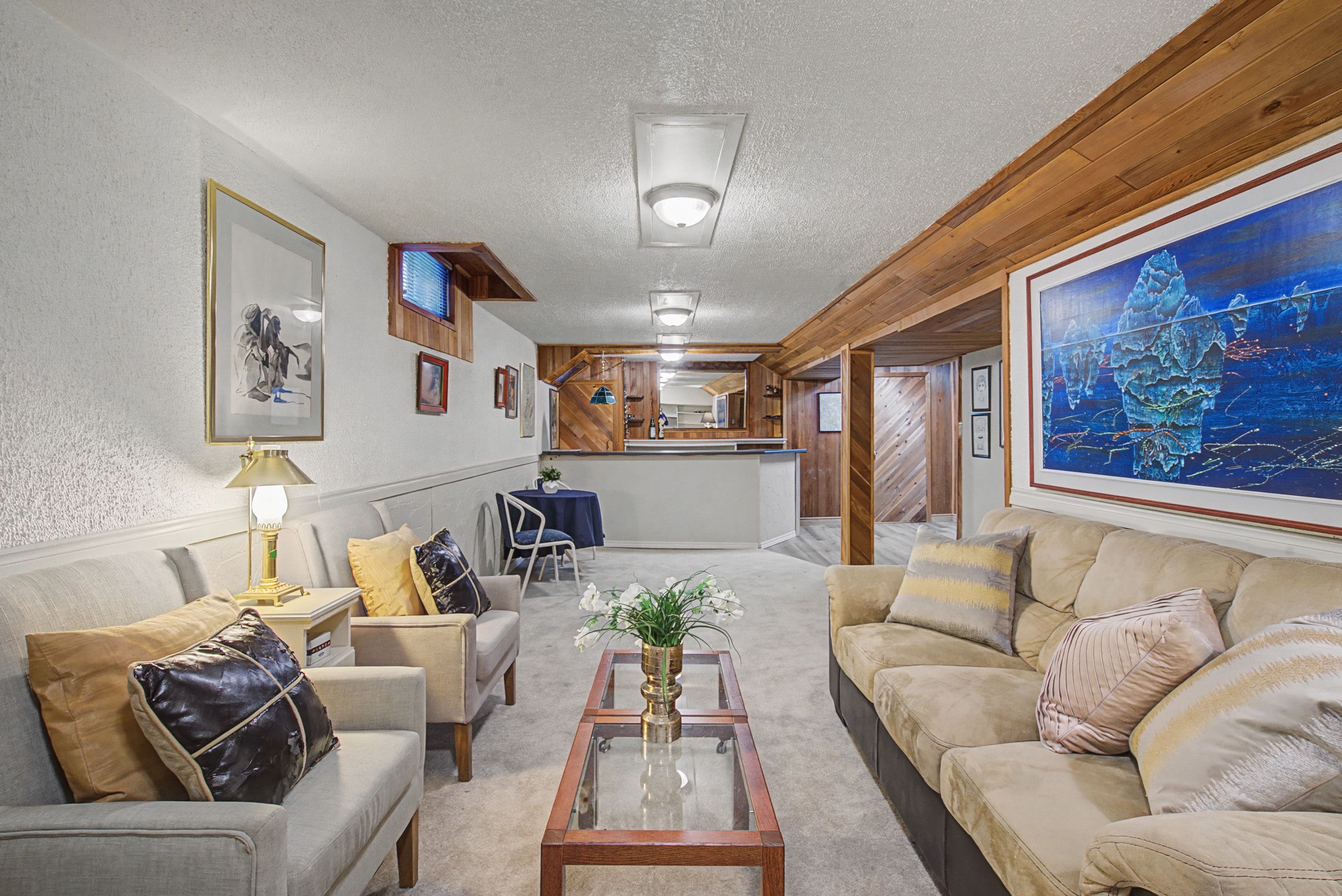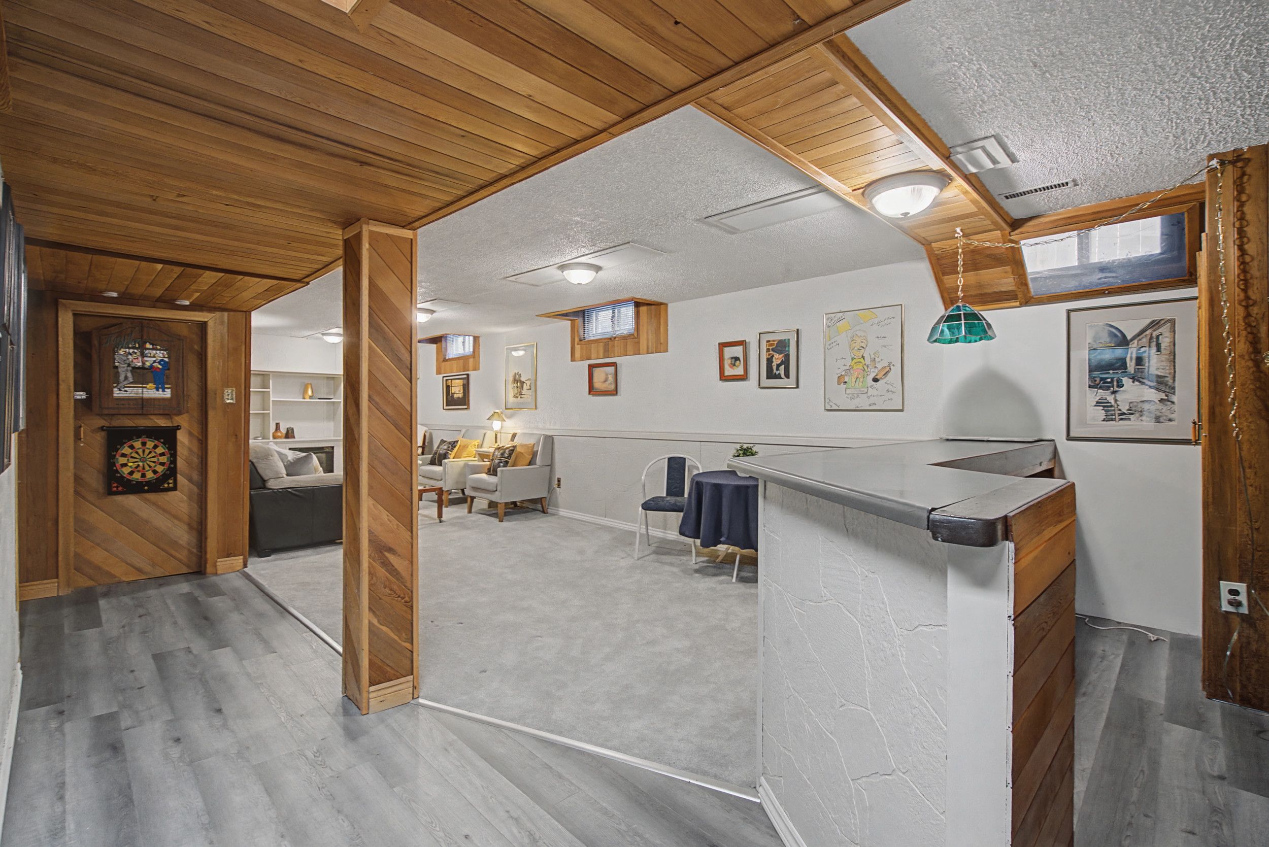• Finished basement with bar, perfect for family gatherings and entertainment.