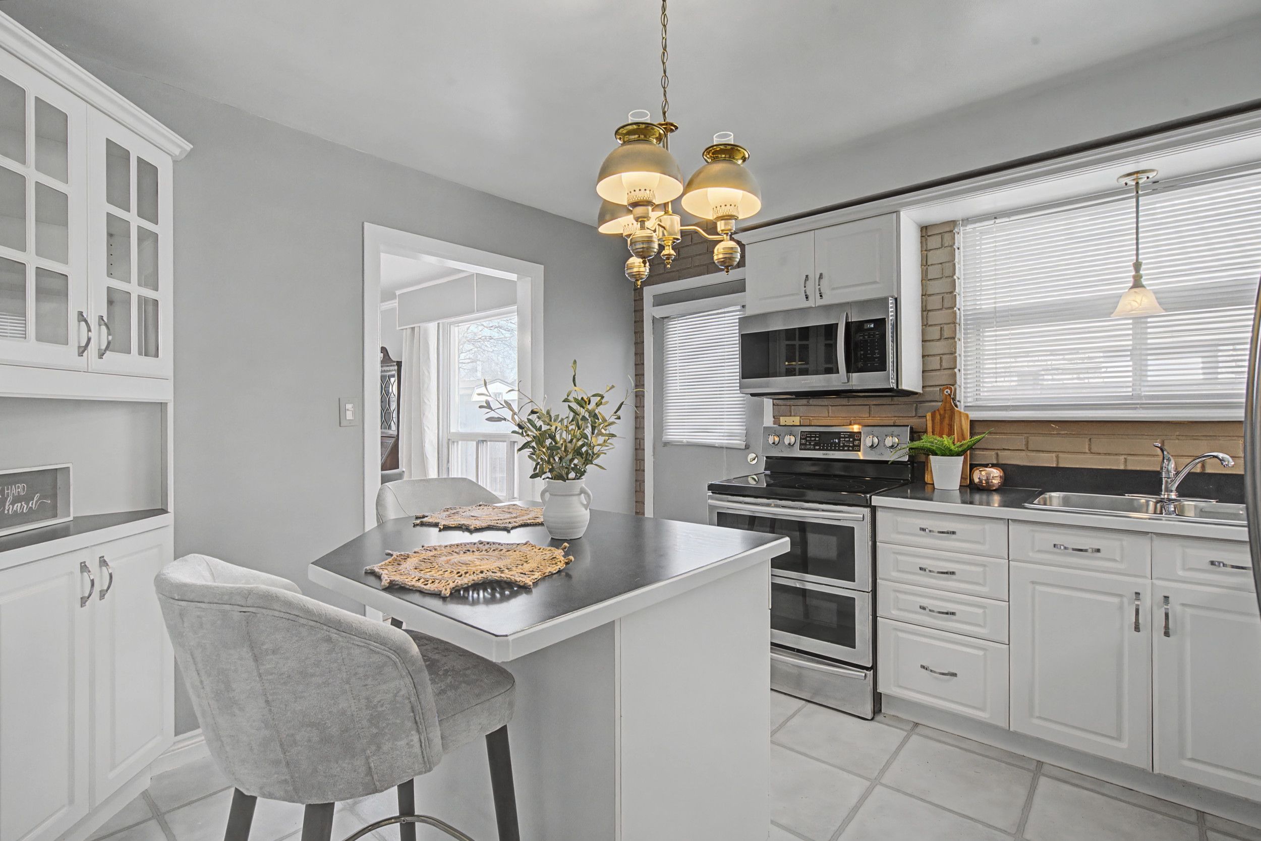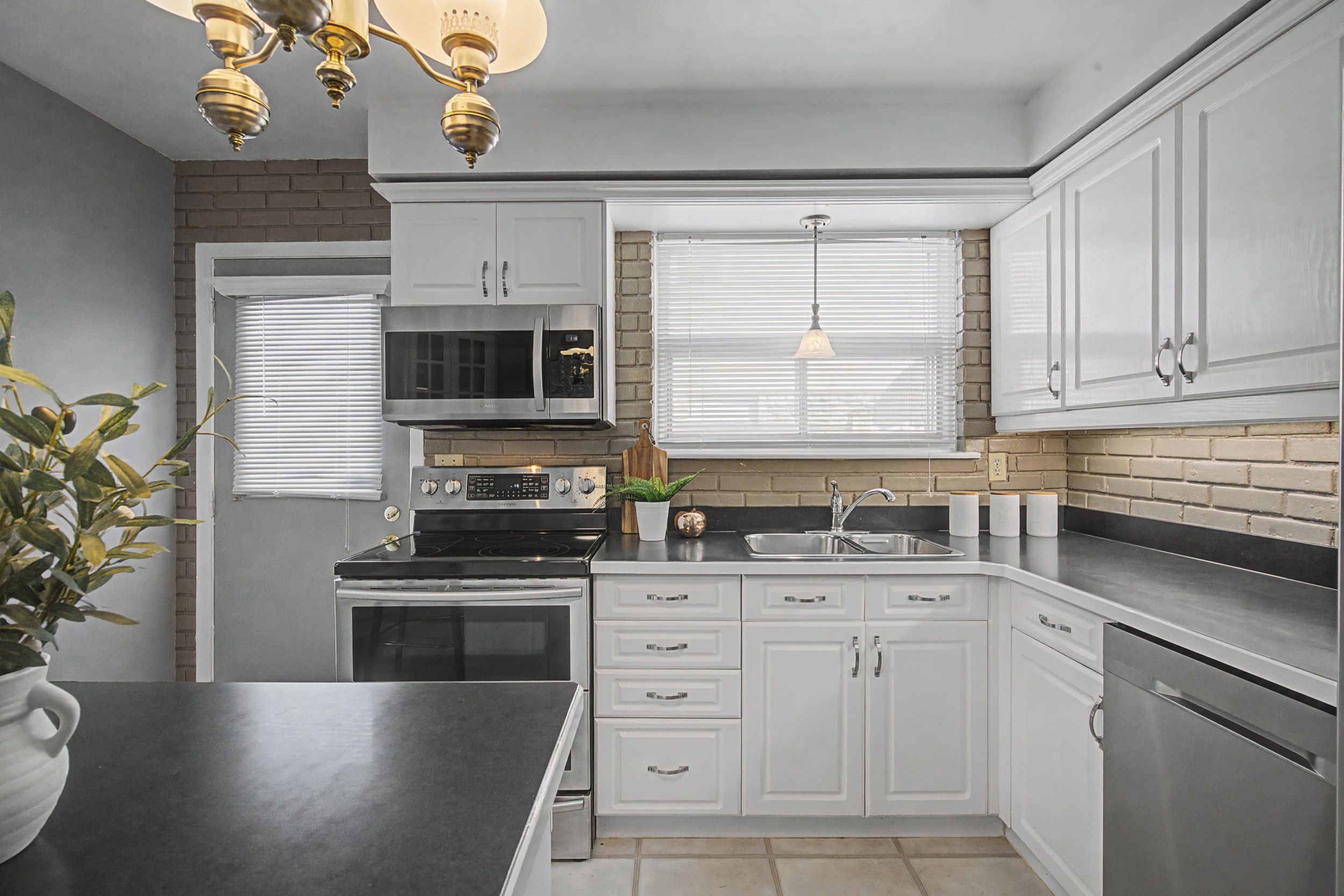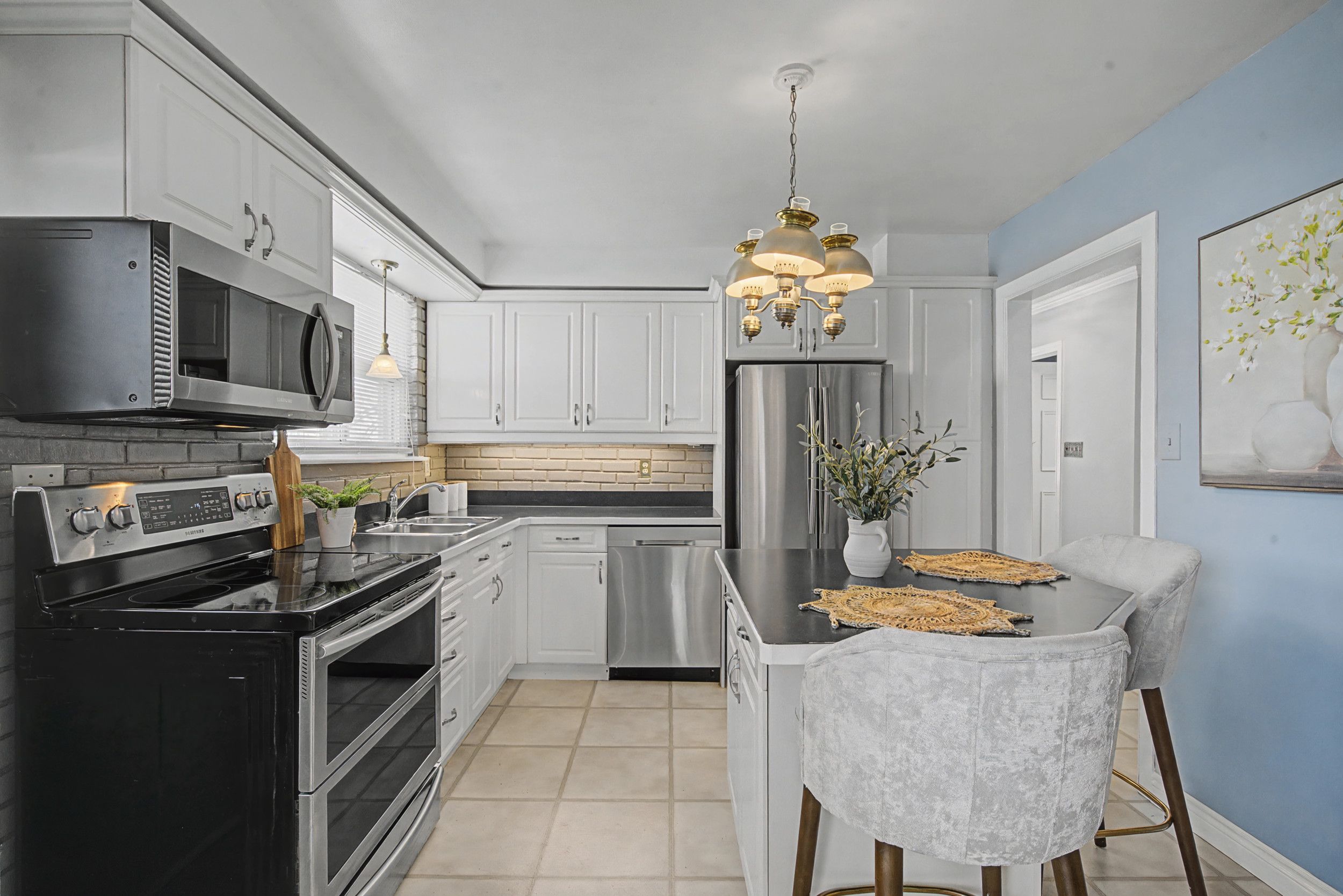 • Updated kitchen with breakfast bar and stainless steel appliances.