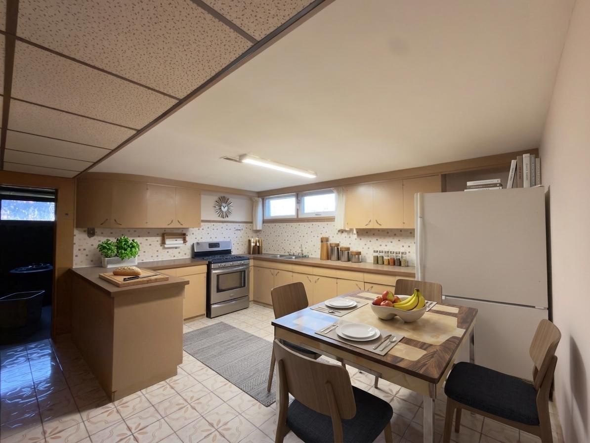 • Finished basement with separate entrance and second kitchen for in-law suite.