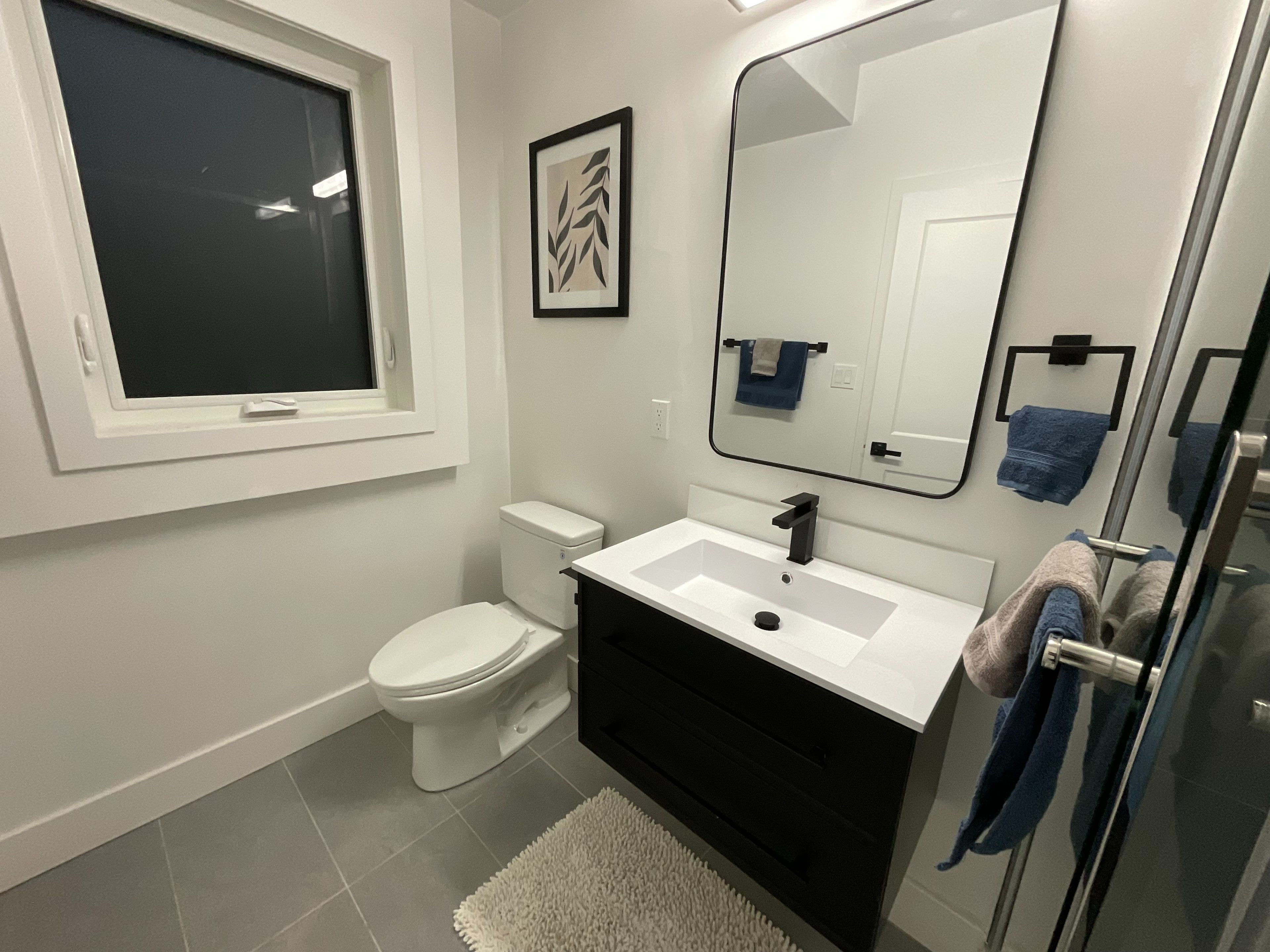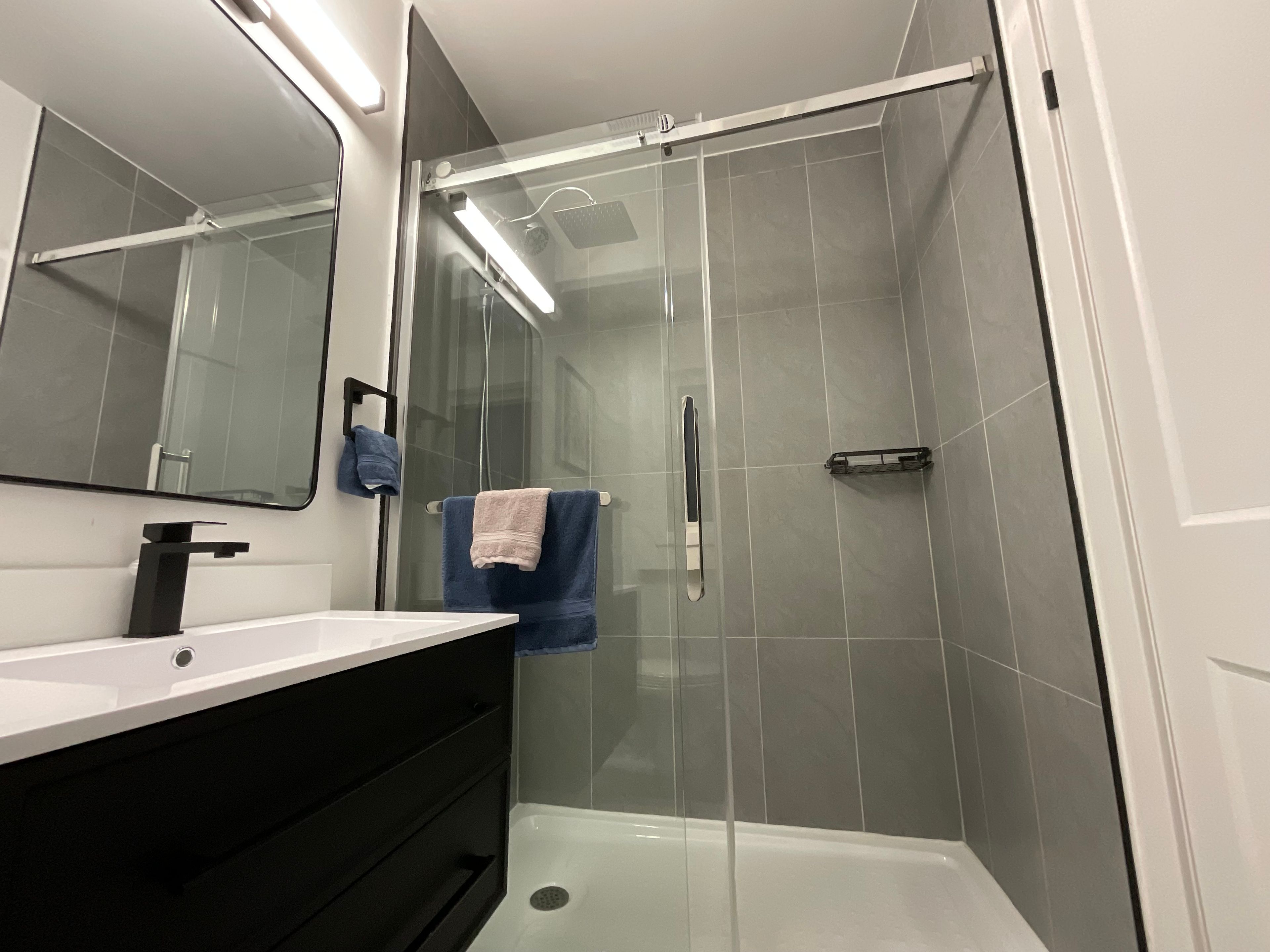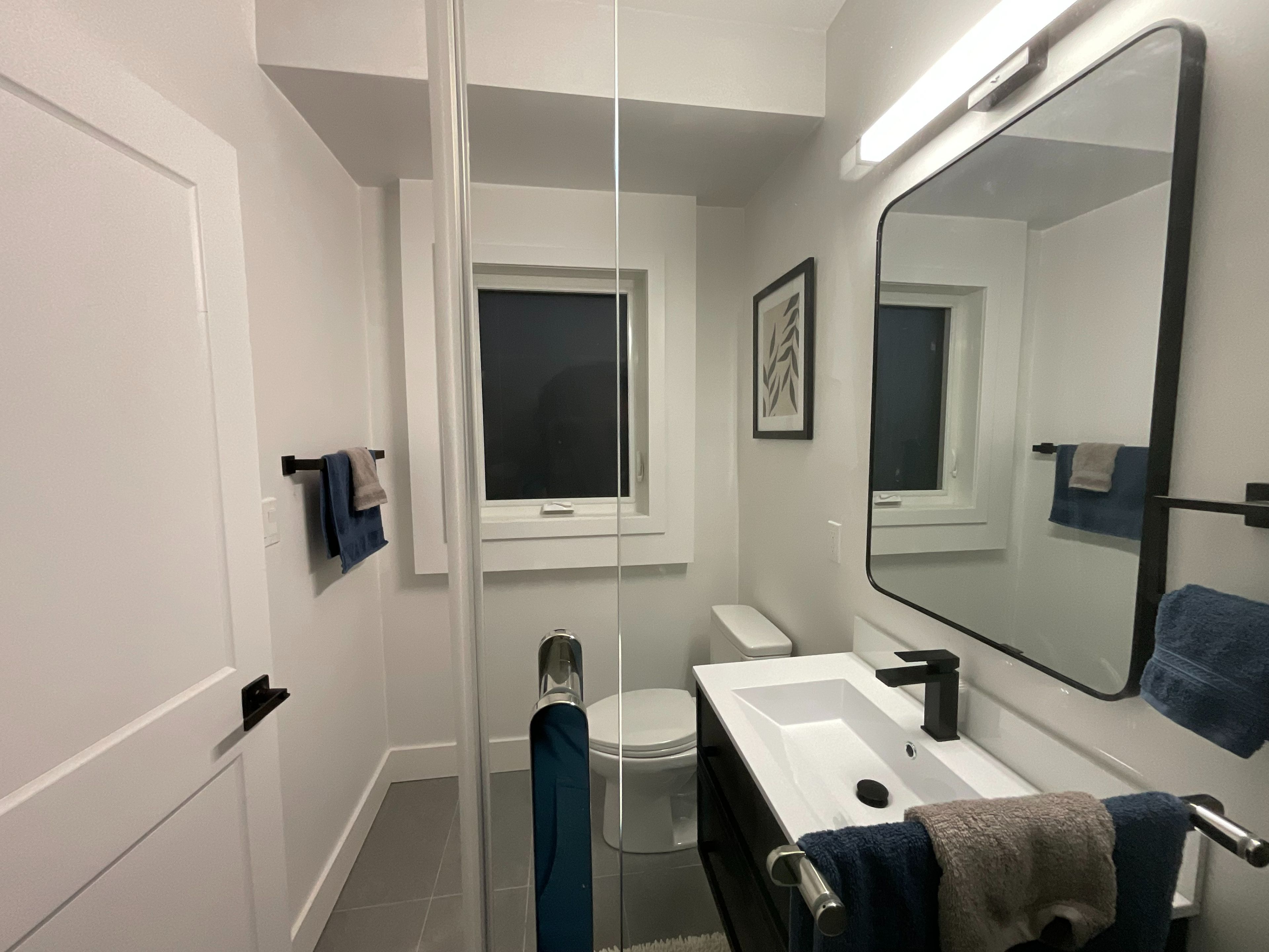• Private entrance with modern amenities and high ceilings.