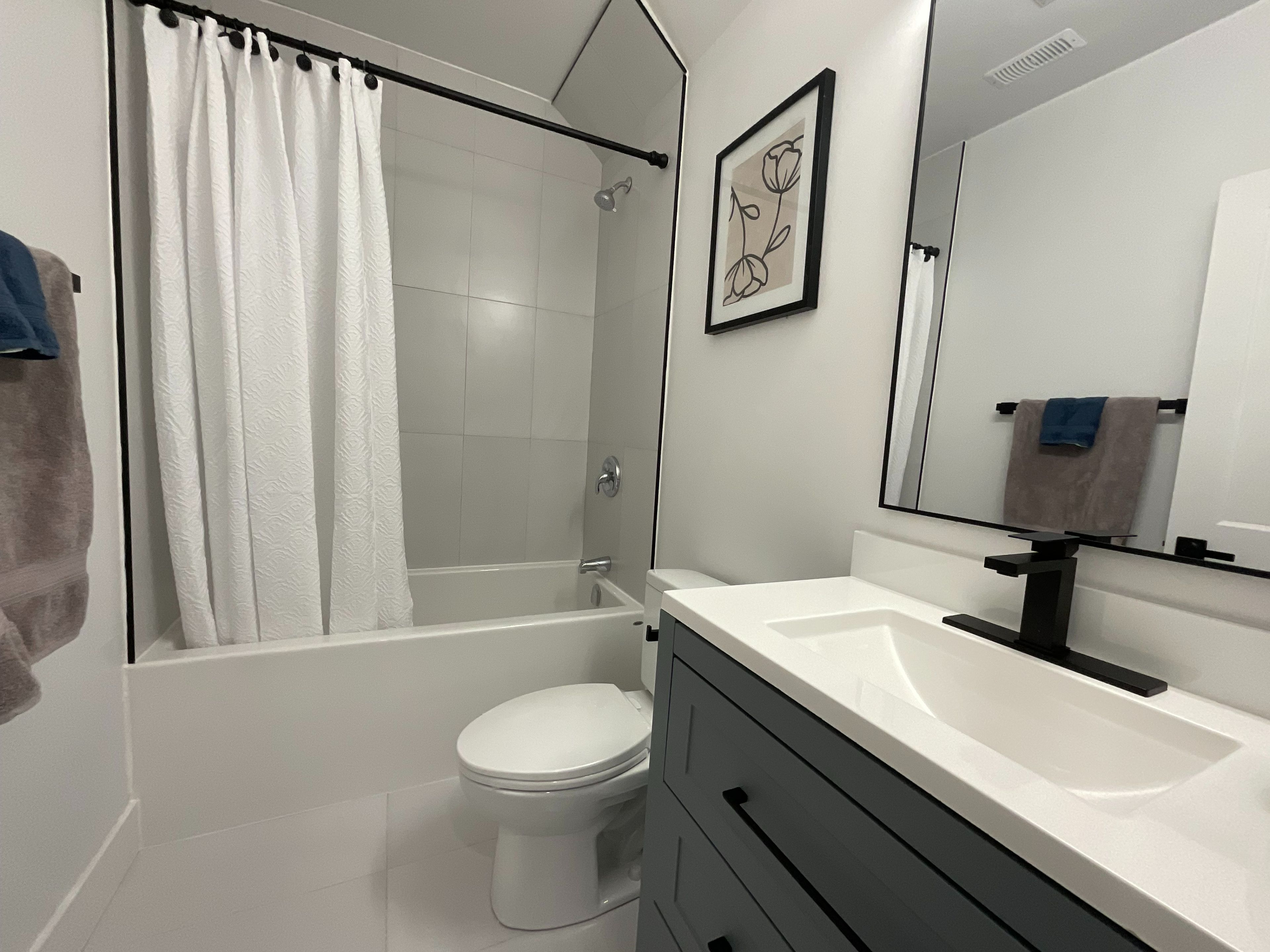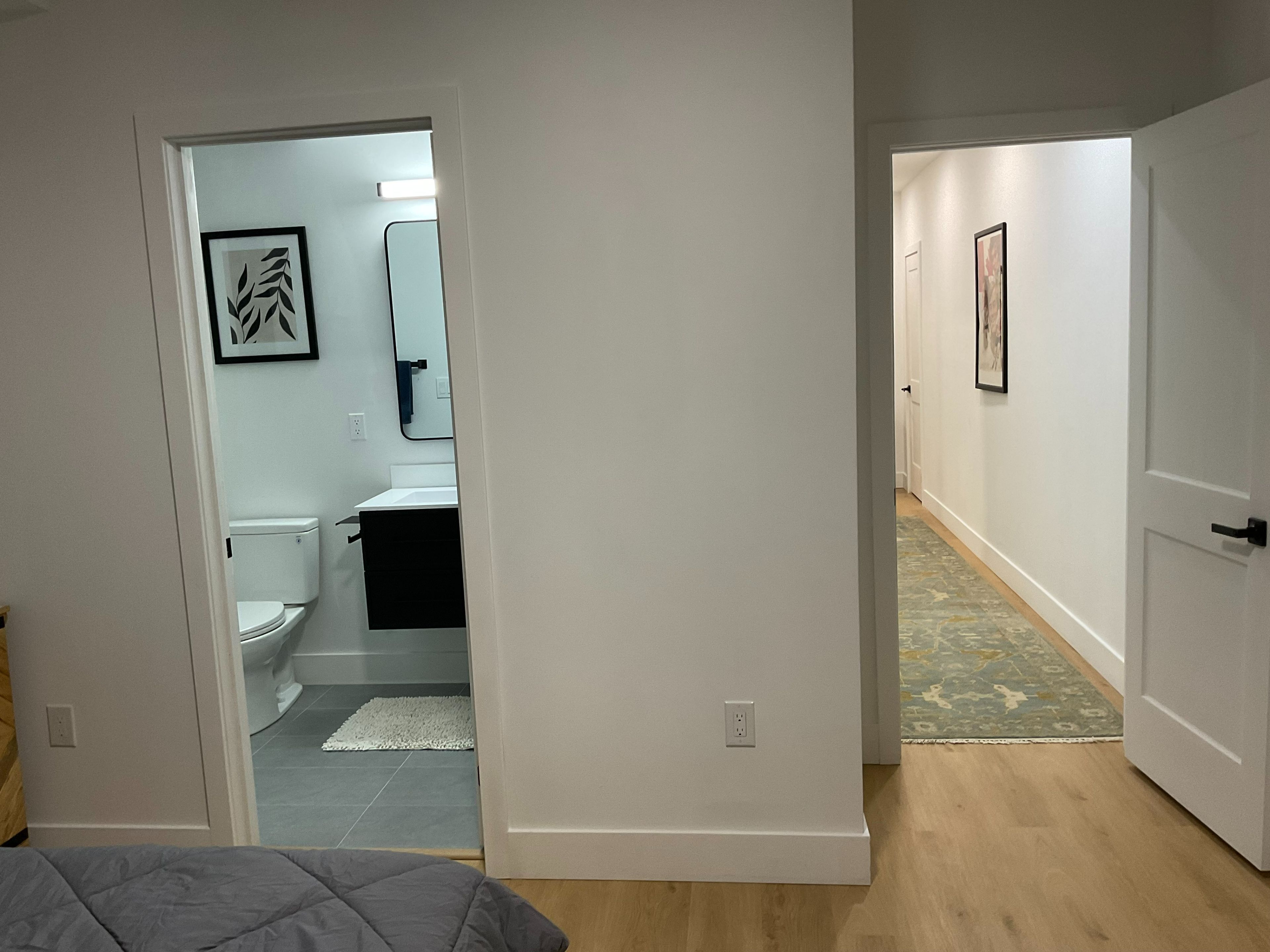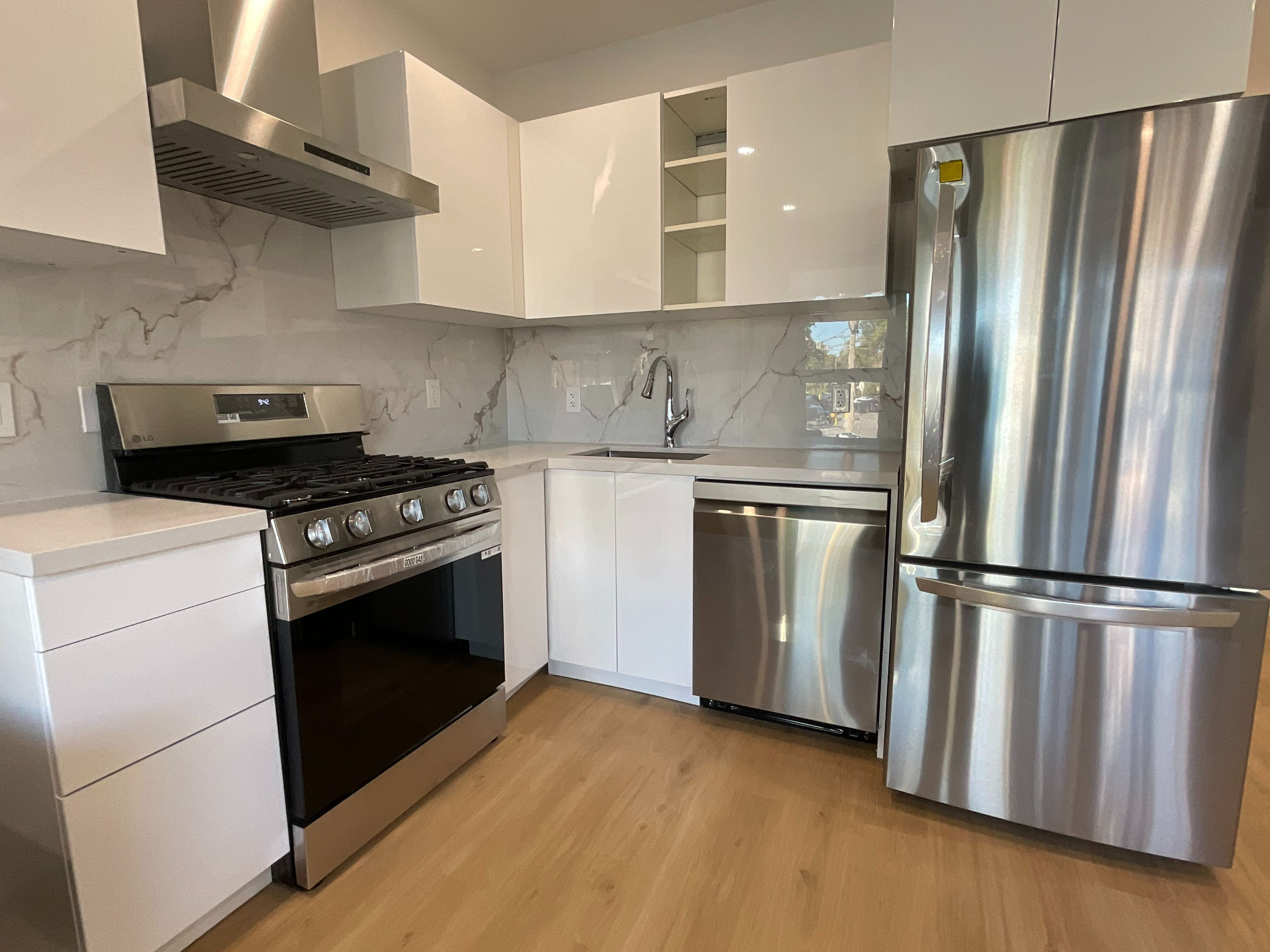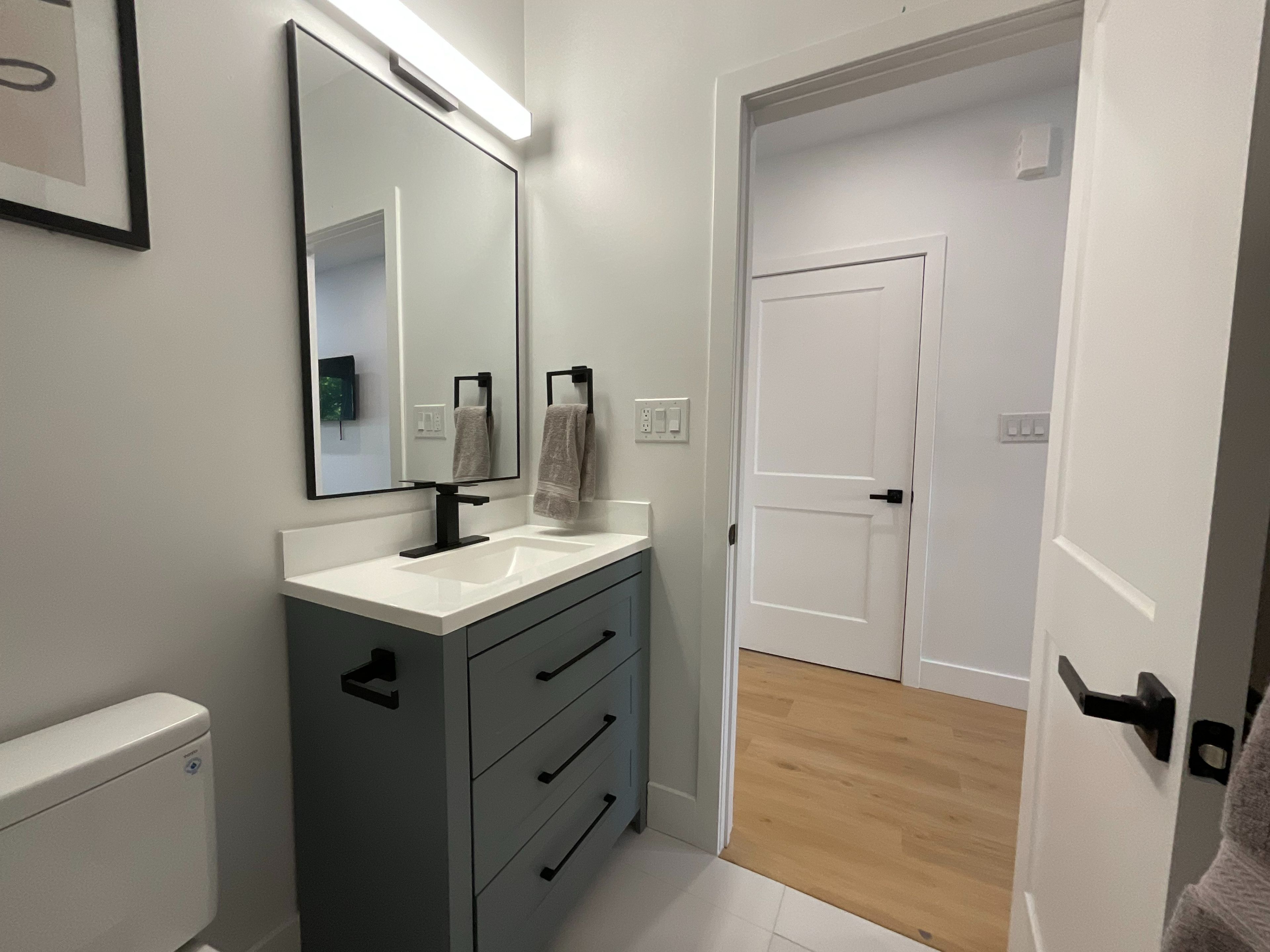 • Private entrance with modern amenities and high ceilings.