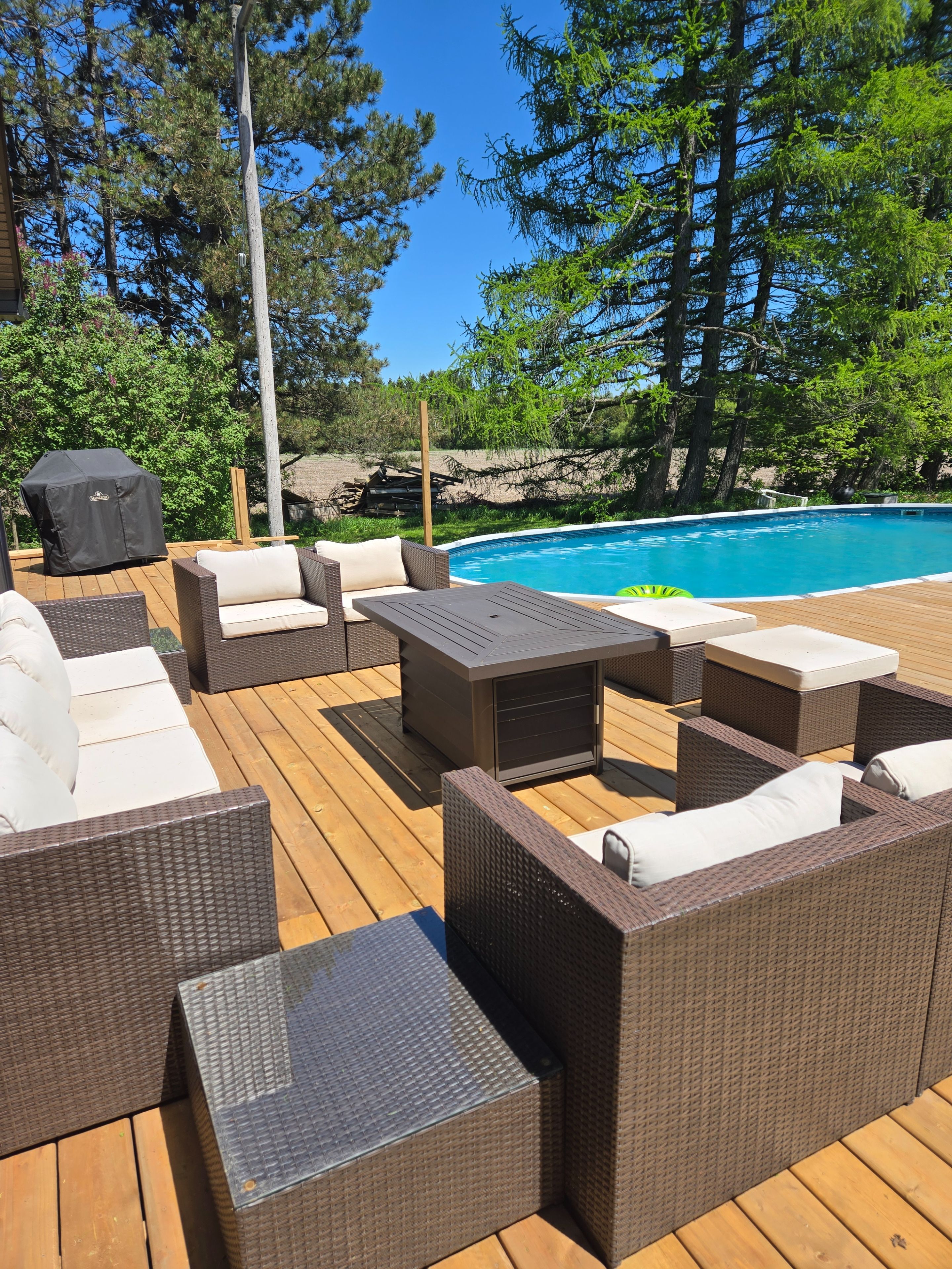 • Stunning views from the new deck overlooking the pool and 62 acres.