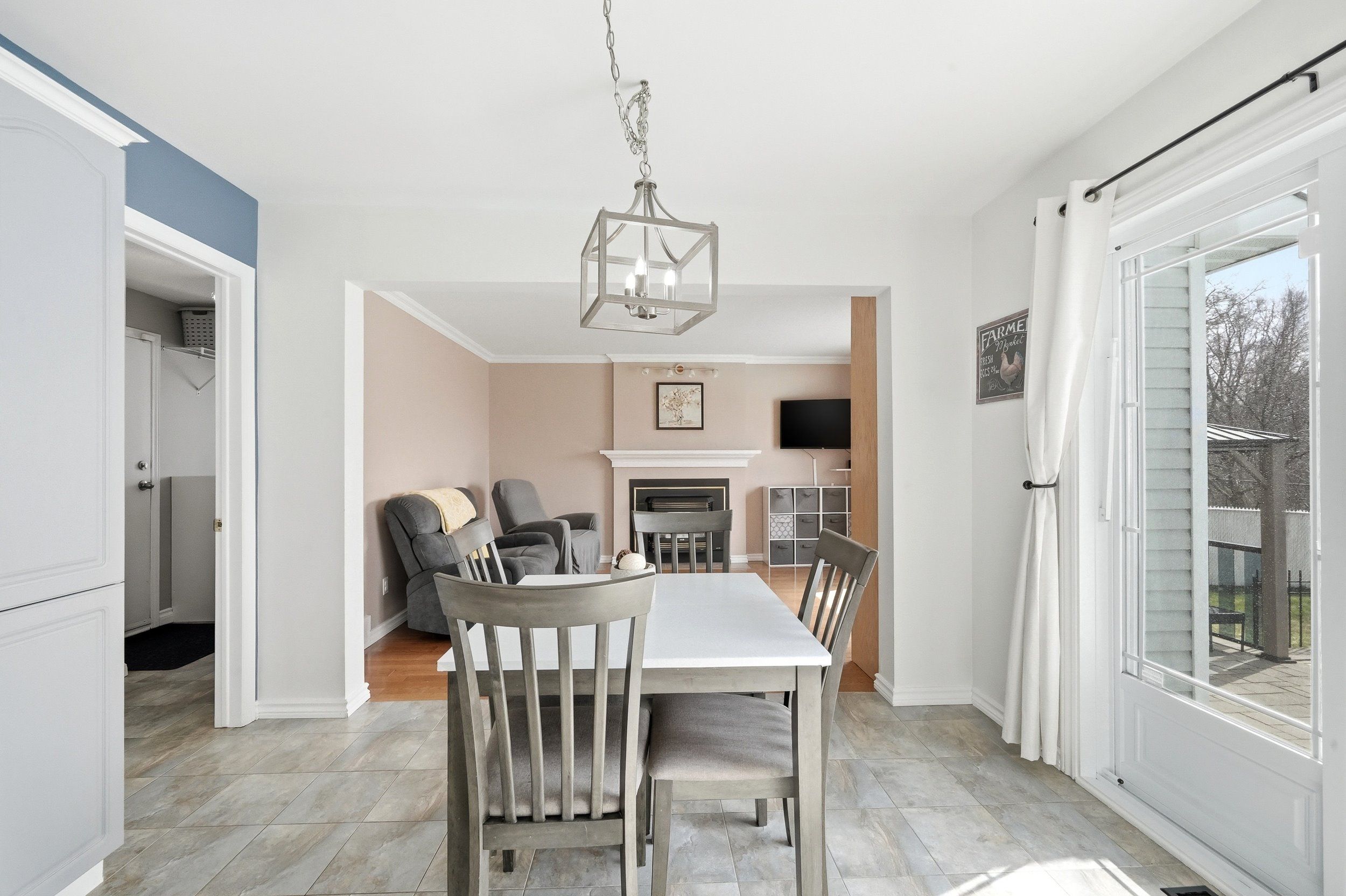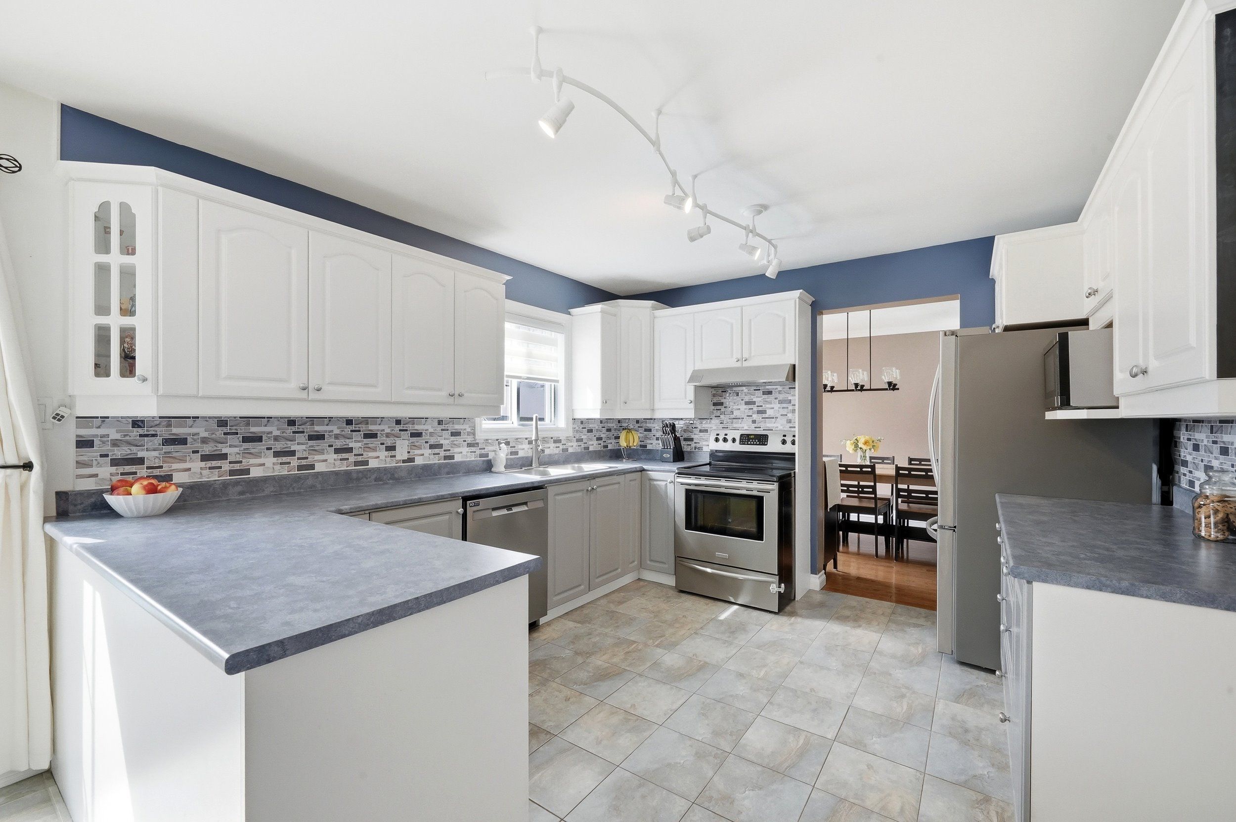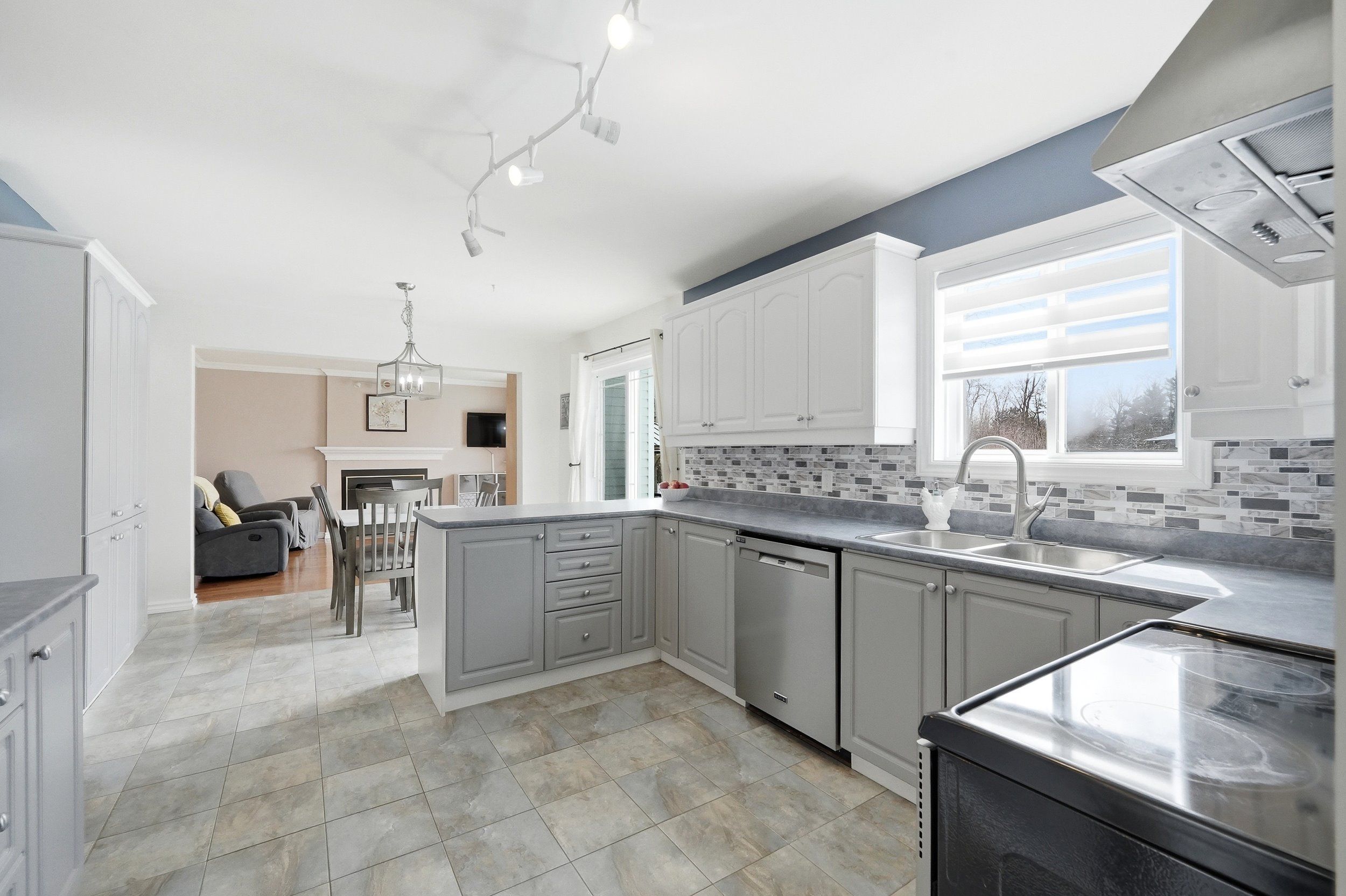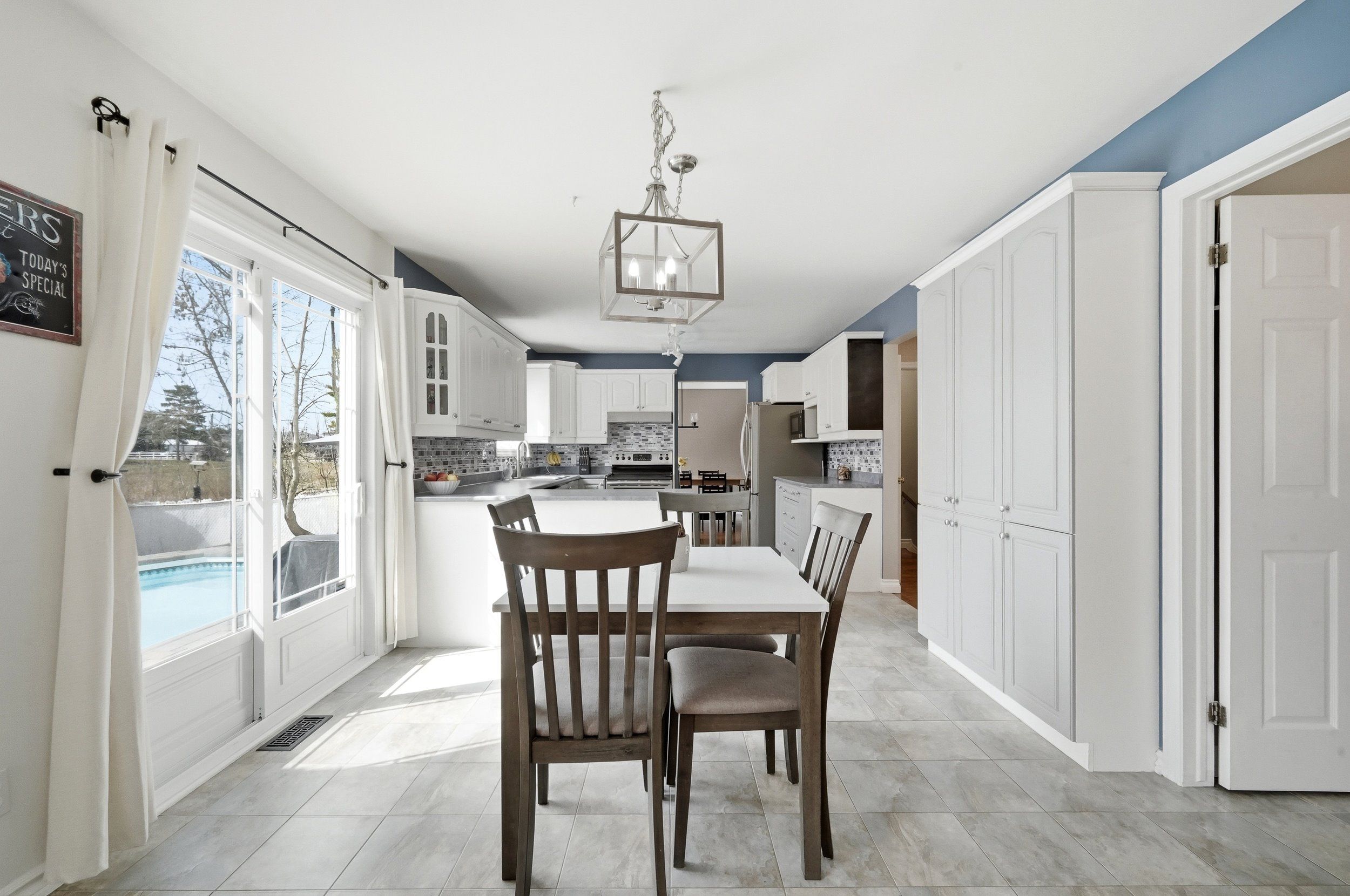 • Eat-in kitchen has stainless steel appliances and patio doors to the backyard.