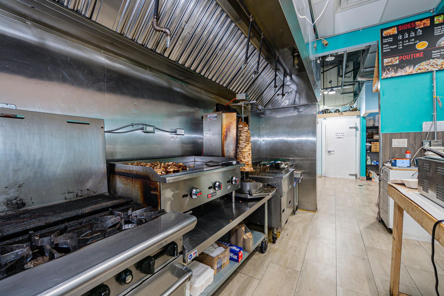 Profitable shawarma restaurant for sale turnkey operation in prime hamilton location no franchise/ no royalty fee. An exceptional opportunity to own a thriving, fully equipped shawarma restaurant located in a high-traffic retail plaza in hamilton. The restaurant is situated in a busy no frills anchored plaza alongside a major pharmacy, dental office, and other well-established businesses, generating consistent foot traffic throughout the day, especially during lunch hours and after school. It is within walking distance of two high schools with over 3,000 students and is surrounded by residential neighborhoods and local businesses, contributing to a steady stream of regular customers. The 1,258 sq. Ft. Space offers seating for over 30 guests and features a 15-foot commercial hood, walk-in cooler, full kitchen, storage rooms, and washroom. The business handles a high volume of walk-in traffic, online orders, and regular large catering contracts from nearby schools and car dealerships. Sales see a noticeable boost on school game nights and weekends. The current lease runs until march 2029, with two additional 5-year extension options, providing long-term stability.