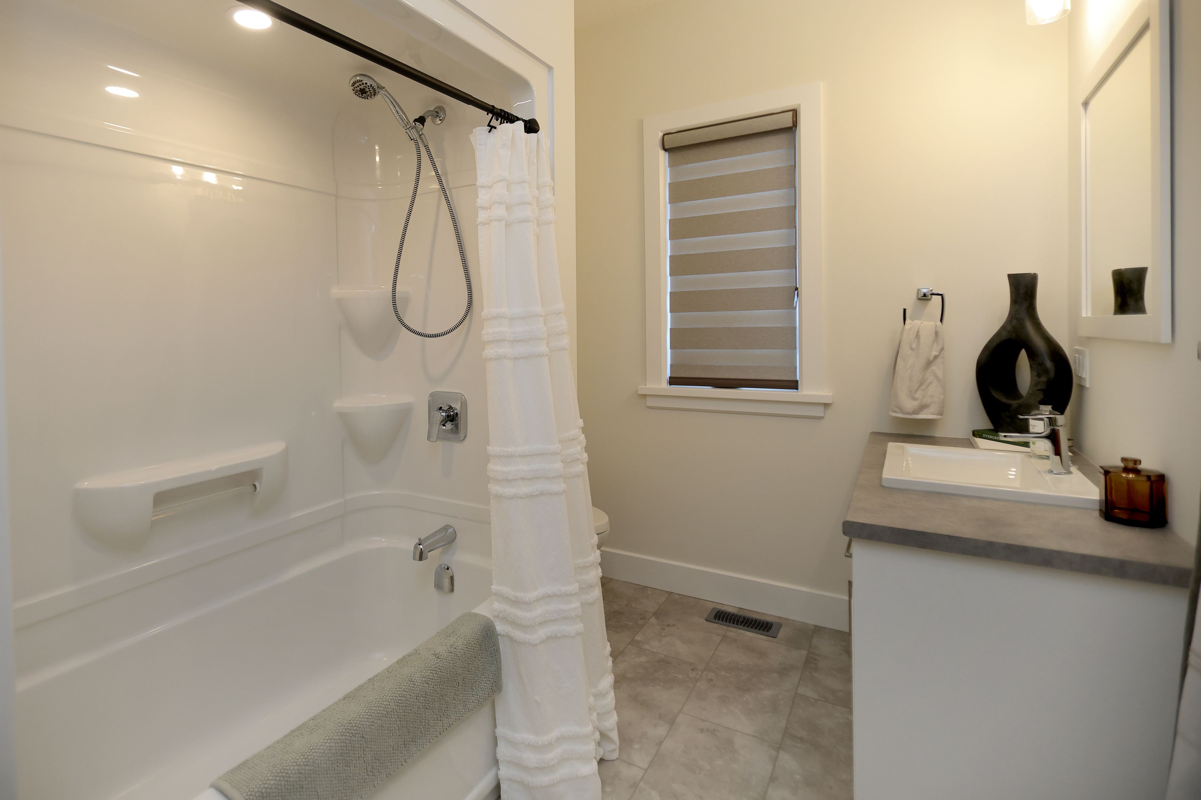 • Upgraded kitchen with solid-surface countertops for easy cleaning.