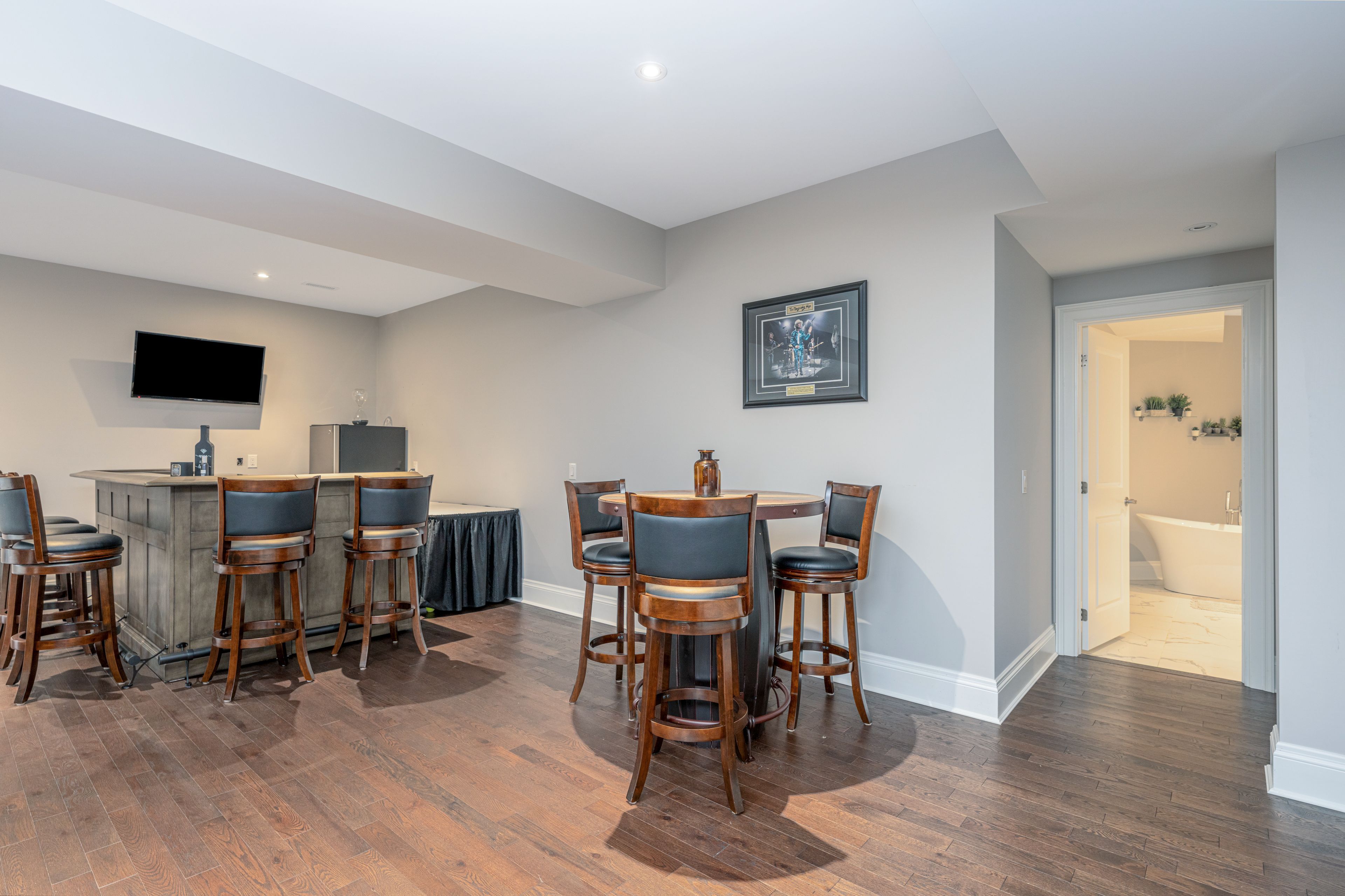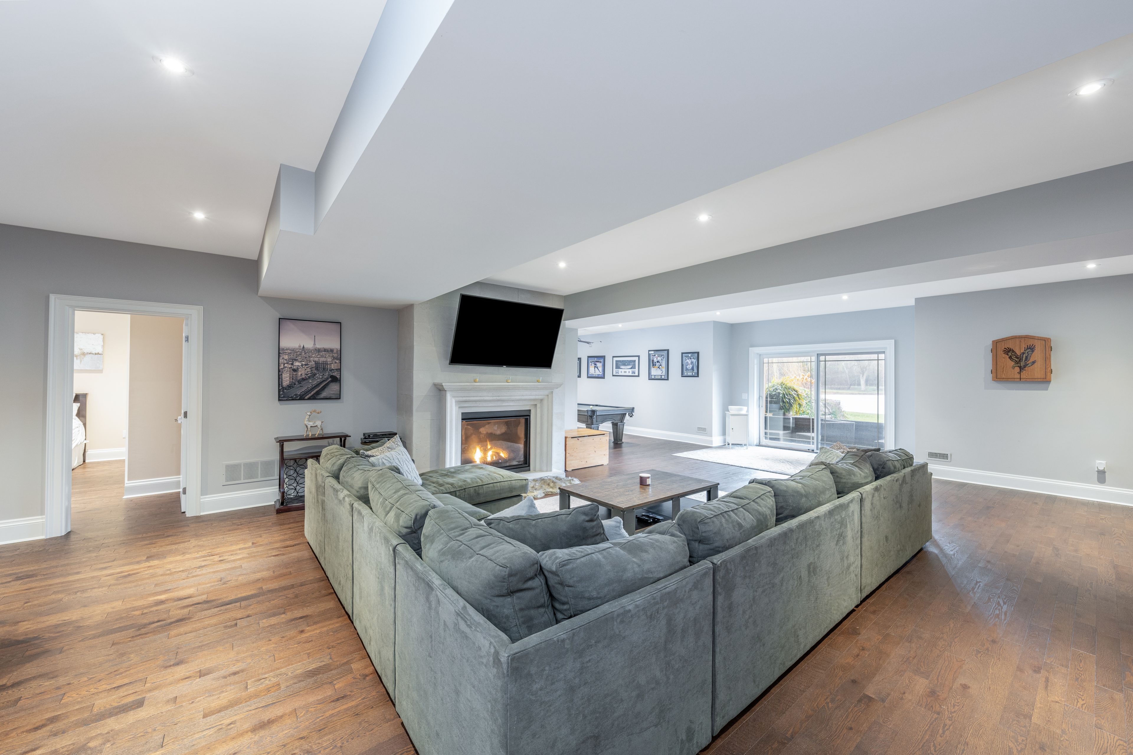 • Lower level features a large recreation room and custom bar.