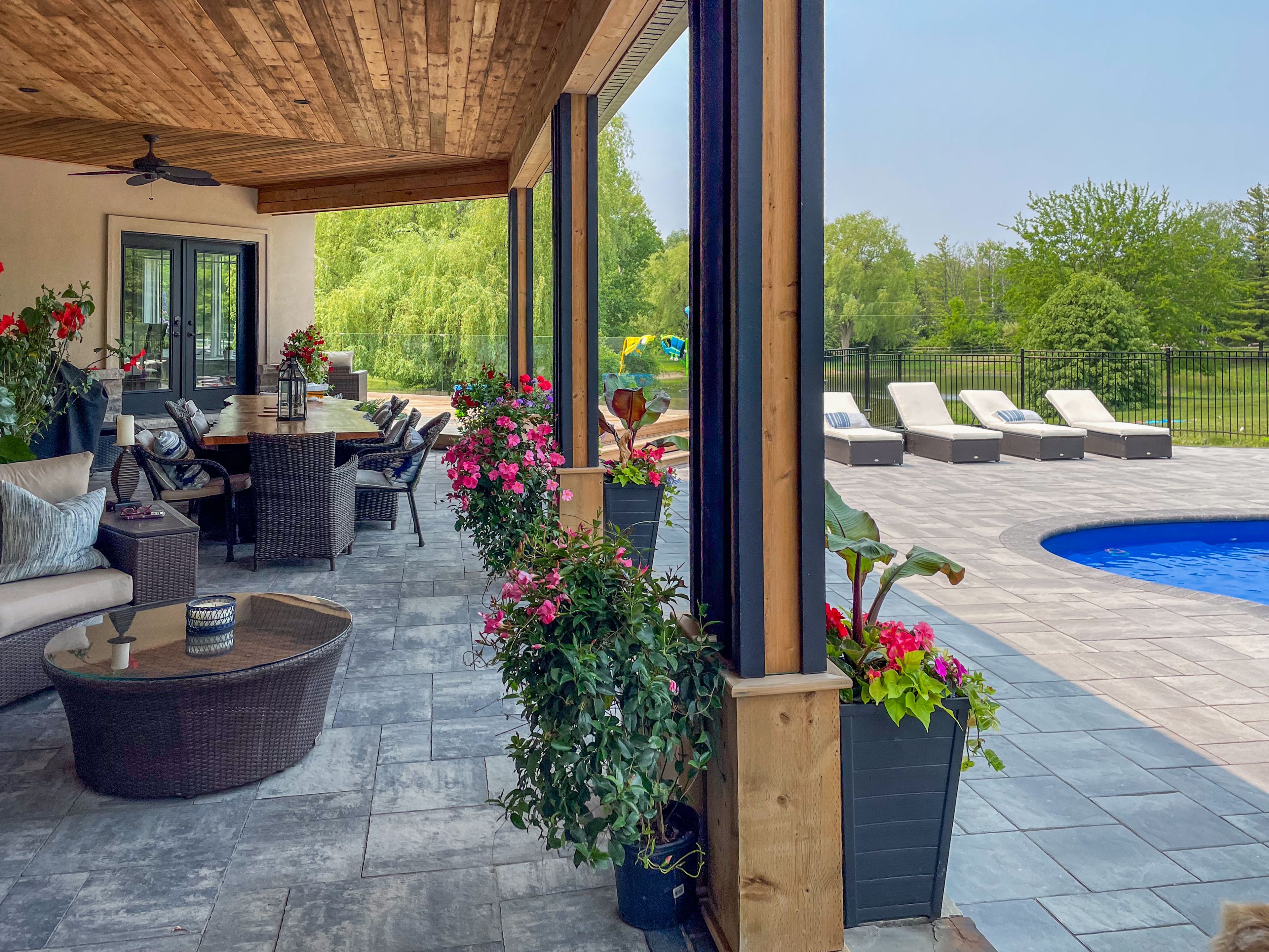 • Large covered patio perfect for dining and relaxing outdoors.