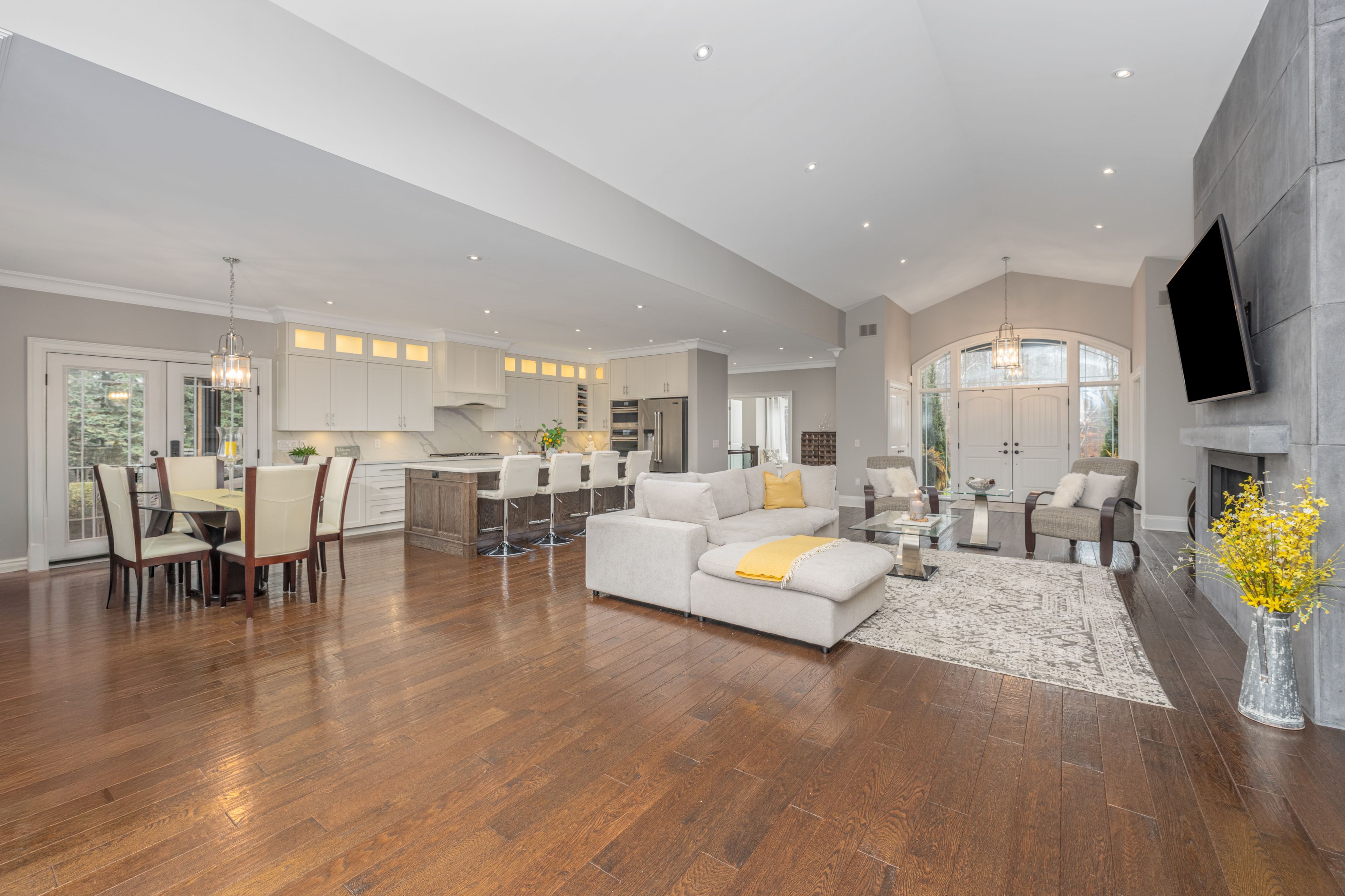• Four spacious bedrooms with bright, open-concept layout and high ceilings.
