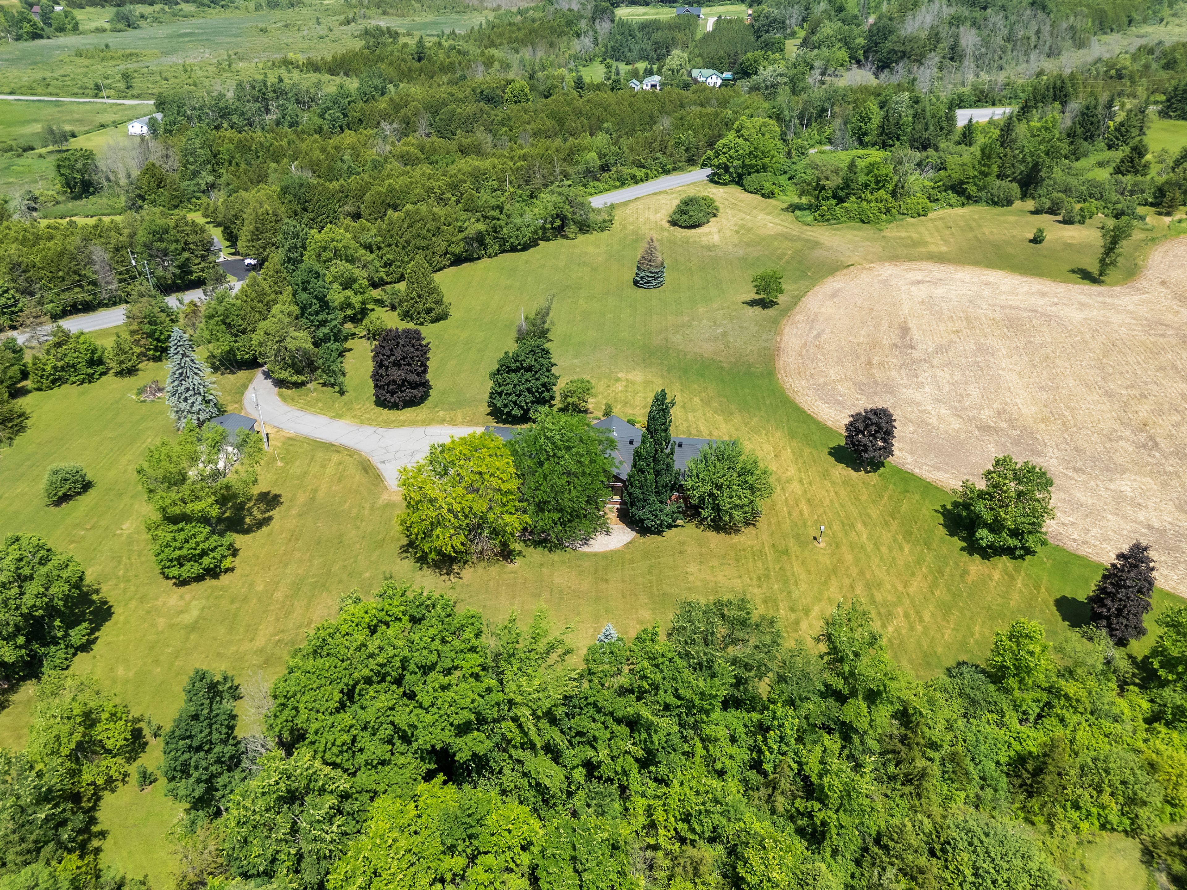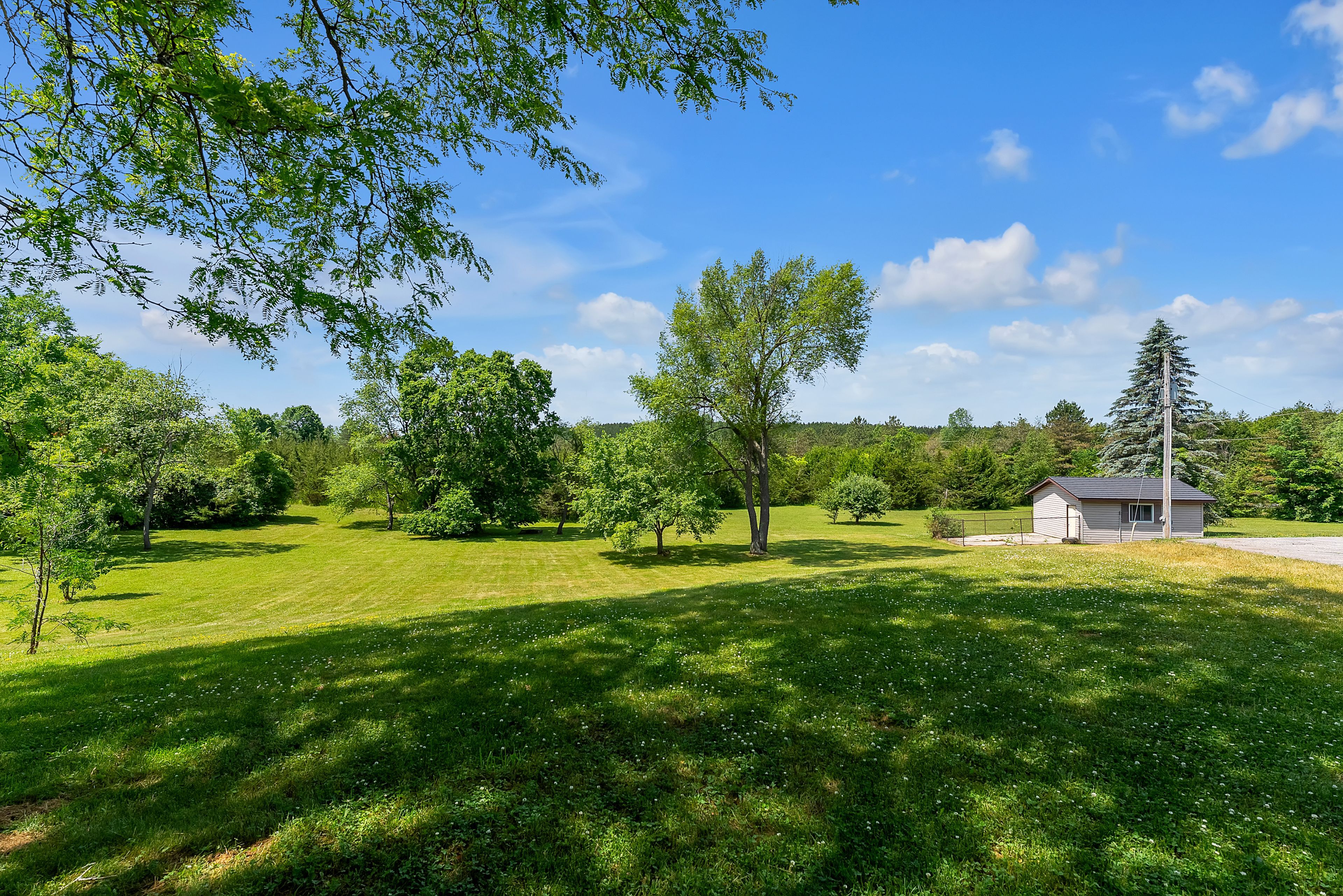 A gently curving paved driveway leads you to 676 foxton road, where this meticulously renovated all-brick bungalow is situated on approximately 32 acres of idyllic landscape. The 2700 sq. Foot open-concept living space includes 4 bedrooms and 3 full baths. With an abundance of storage in the 2 car attached garage and an additional detached workshop. Inside youll find vaulted ceilings, custom millwork, panoramic windows, and a stunning central fireplace. No detail was spared in the design of the chef's kitchen boasting built-in miele appliances for a seamless and functional design accented with an eye-catching waterfall granite countertop and backsplash. The tasteful primary suite welcomes you with large windows overlooking rolling fields, a fireplace, walk-in closet and spa-like ensuite including radiant floors and heated shower bench; the perfect place to unwind at the end of your day! Made for entertaining, on the lower level of the home you'll find a 10 person dry sauna next to the gym, a large bedroom with walk-in closet, full bathroom, and a cozy movie theatre complete with a fireplace, wet bar rough-in and heated flooring throughout for your utmost comfort. Whether your preference for recreation is hiking, biking, cross country skiing (or all of the above!) the 15 acres of wooded trails will be a great place for you to spend time exploring or pursuing your hobby farm dreams. Its rare to find a home that so perfectly balances luxury, privacy and nature - book a showing and fall in love for yourself! View the brochure for more specifications and features.