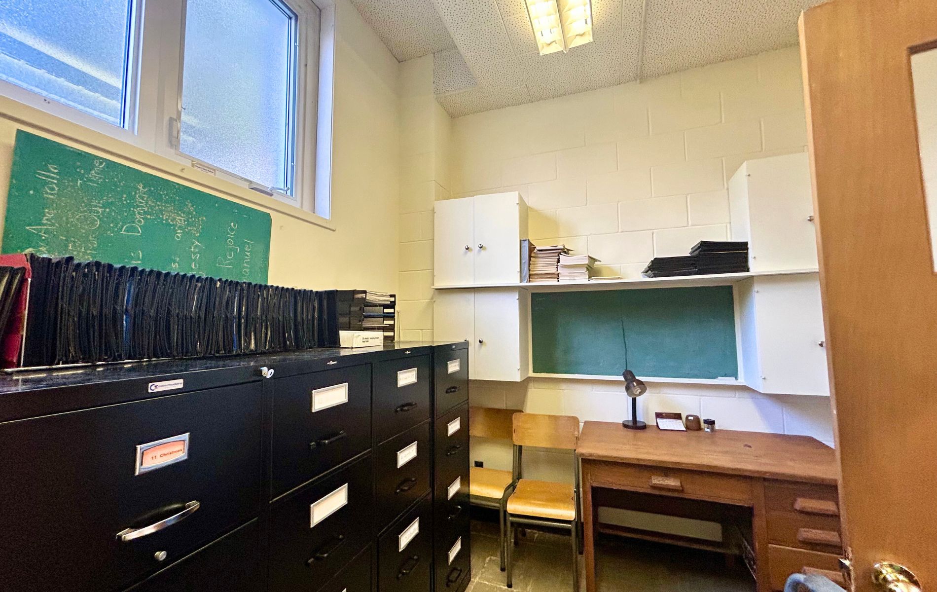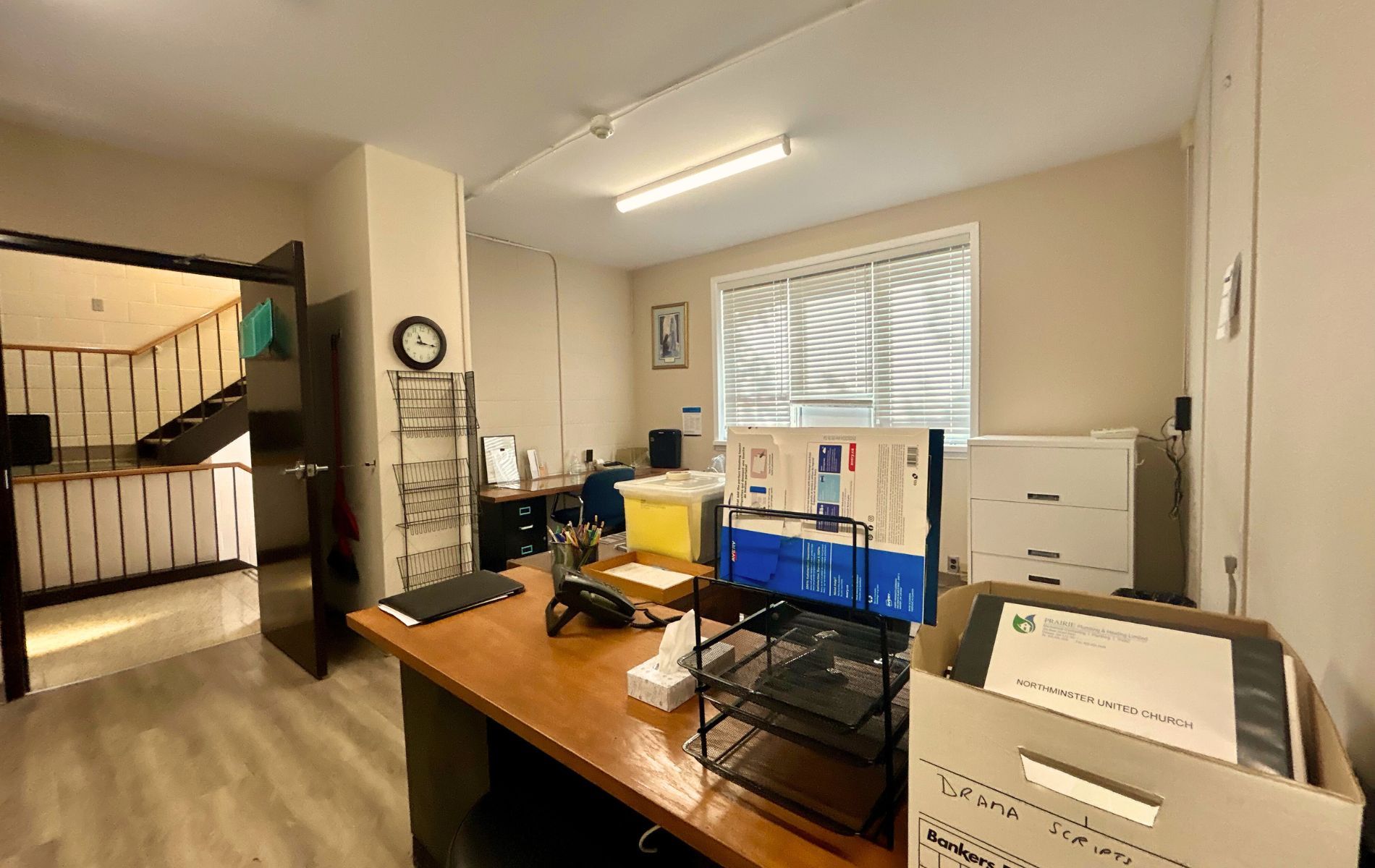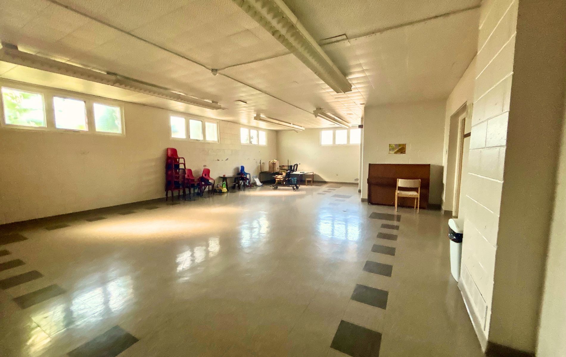 Large, bright and spacious lower level of church for a variety of uses available immediately. An office on the upper floor for tenant's use. Suitable for place of worship, daycare, school, education, & other permitted uses, preferably mon-fri. See list of permitted uses attached. Shared spacious kitchen and washrooms (shared with church). Portion of outdoor space to be allocated for a playground if used for a daycare at tenant's expense. Lower level with two large open spaces and 10 private rooms, multiple large, egress windows throughout. Upper main office area with washroom. An elevator to the lower level. Rest of church is used for church activities. Great exposure on rossland road & simcoe n, close to schools and trails. Tenant and tenant's agent to verify and be satisfied with tenant's permitted use. Area for rent is highlighted in diagram is attached. Rent + operational expense.