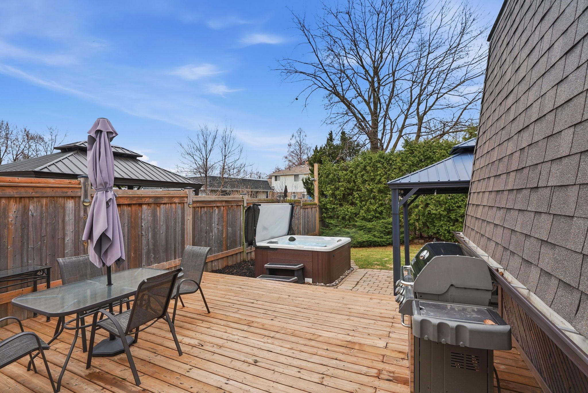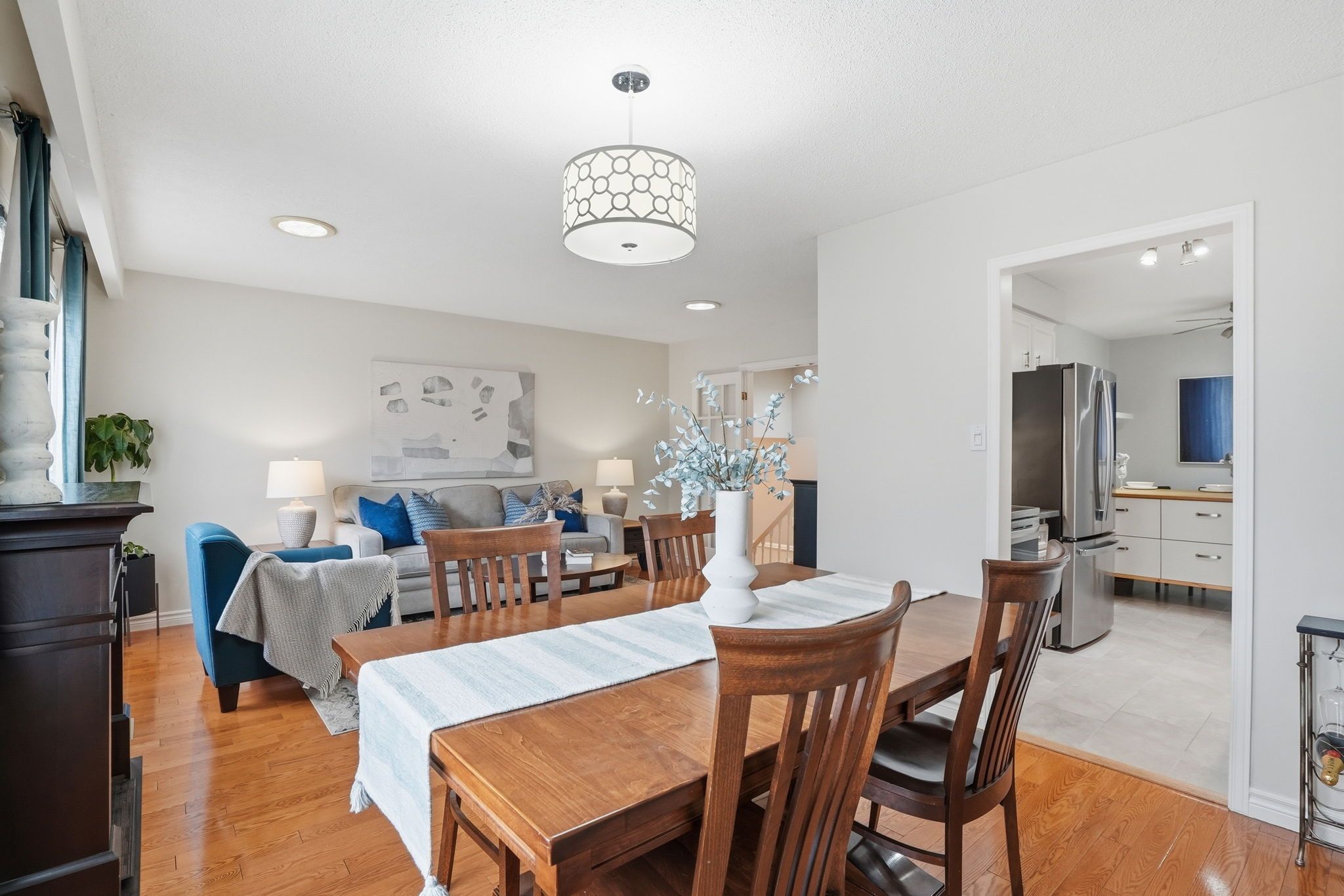 Nearly 2,000 sq ft of finished living space in the heart of burlington's dynes neighbourhood-this 4-bedroom, 2-bath raised bungalow offers the perfect blend of functionality, updates, and walkable convenience just steps groceries, shops, restaurants, and a 5 minute walk to the top-tier makwendam elementary public school. The main level offers a bright, functional layout with well-proportioned principal rooms and thoughtful updates, including a renovated main floor bathroom (2020) and new skylight (2020) that enhances natural light throughout the home. The kitchen and front entry have been refreshed with new tile flooring (2024) and all new appliances (2024), creating a clean, modern space ready for everyday living and entertaining. The finished lower level adds valuable additional living space-with a 4th bedroom, family room and full bathroom-providing flexibility for a variety of lifestyles. Exterior improvements enhance curb appeal with a new front garage door (2024) and new driveway (2023), while major mechanical updates include a high-efficiency furnace (2020), roof (2015), windows (2010), and eavestroughs (2023). Enjoy a private backyard retreat complete with a hot tub (2016)-perfect for relaxing or entertaining. A beautifully-maintained, move-in ready home offering exceptional value, space, and location.