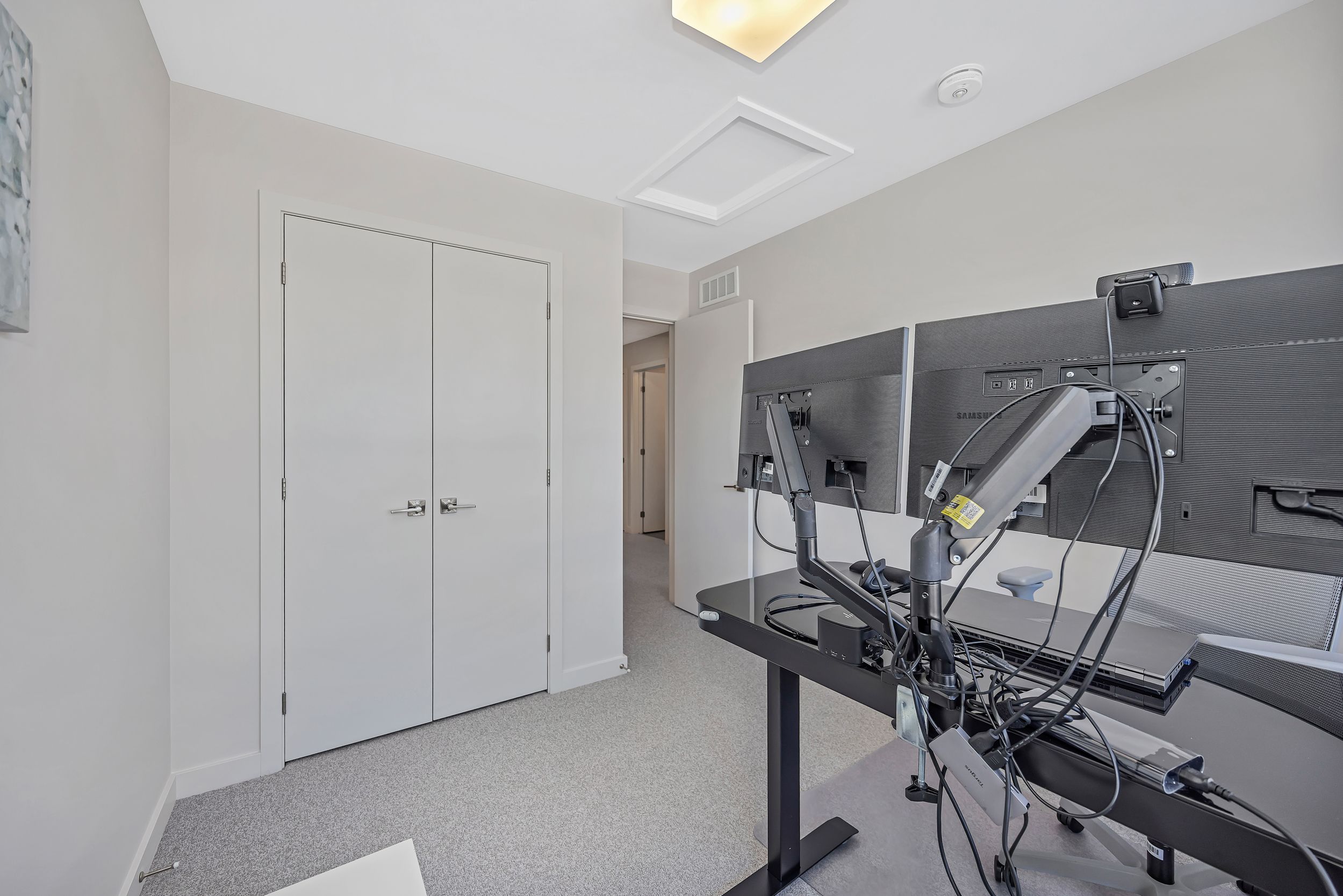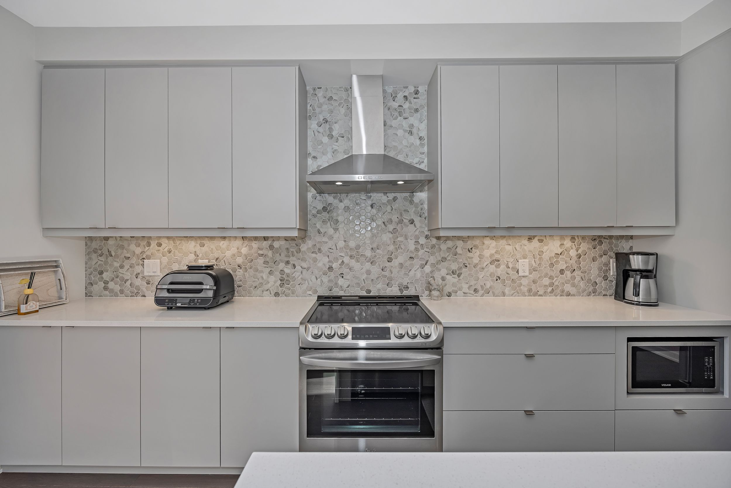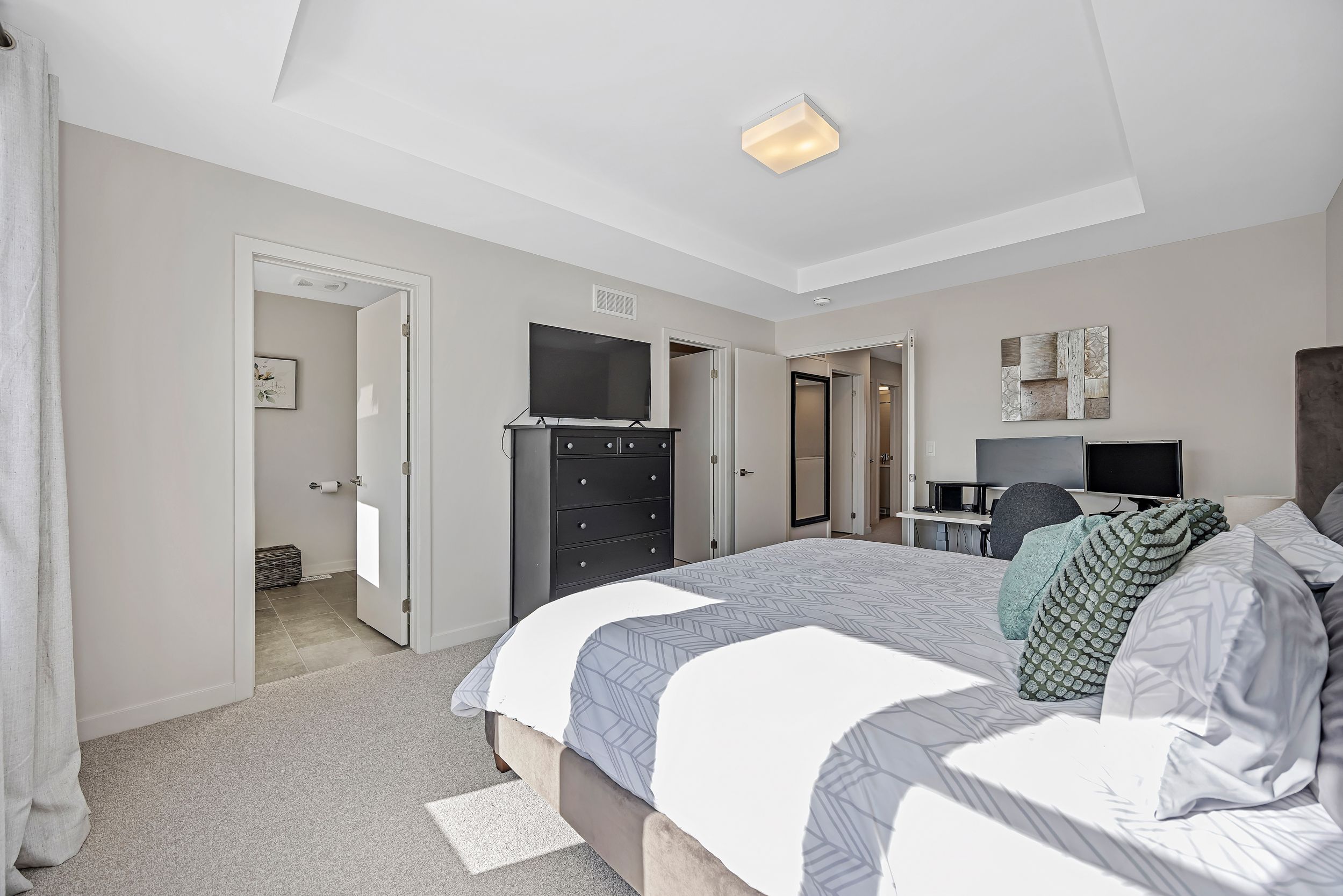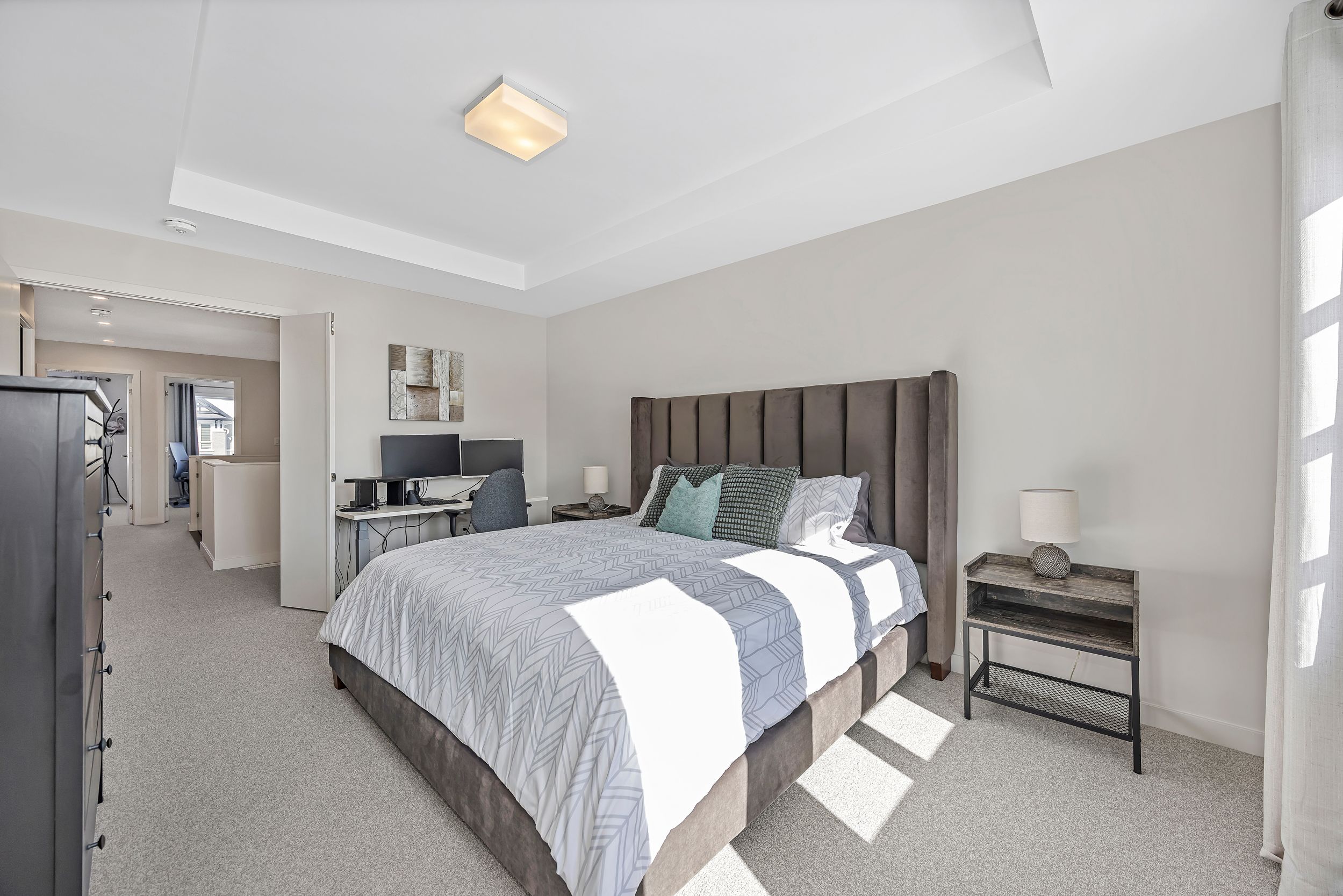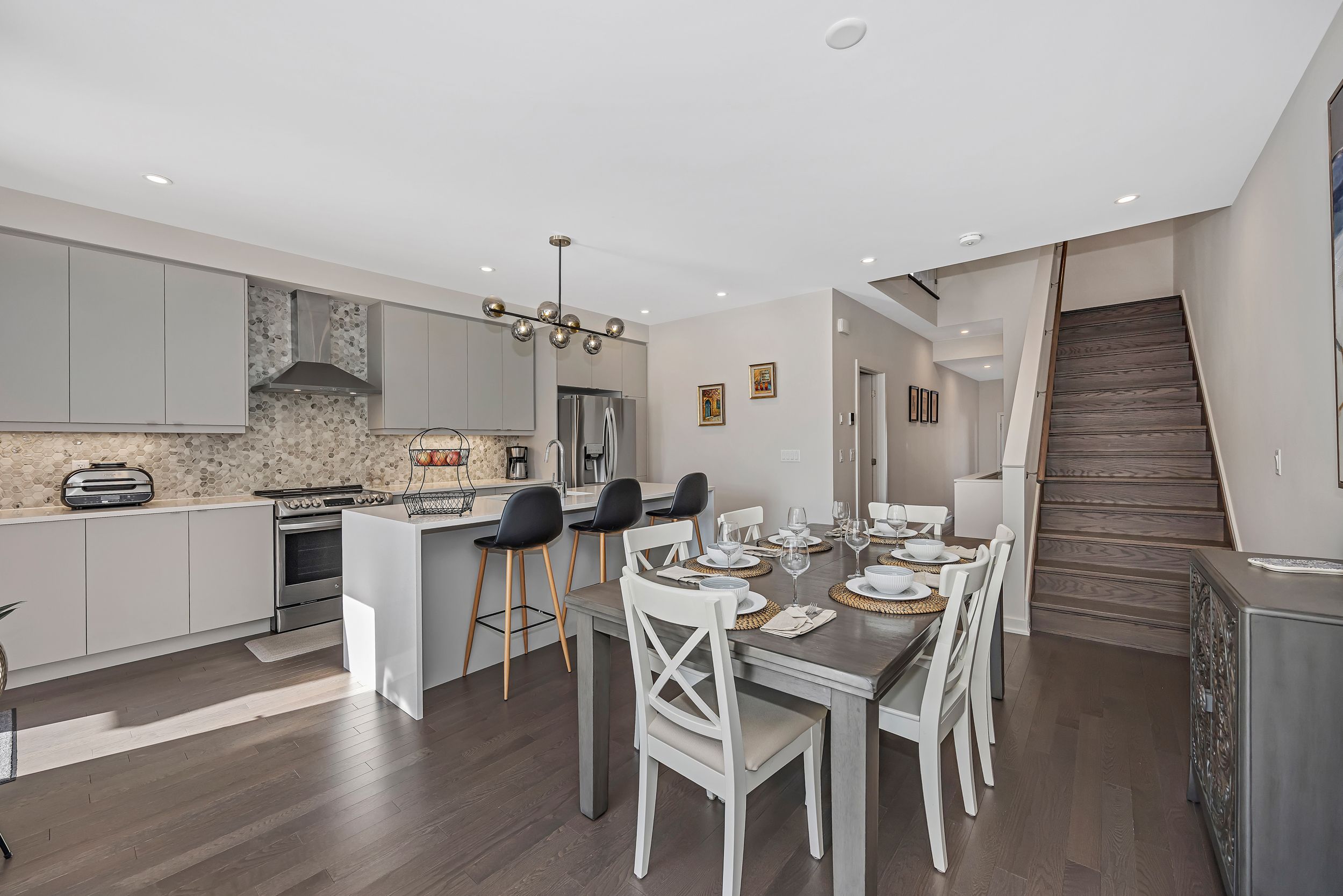 Quality built by award-winning hn homes and sun-filled in riverside south, this superior weston executive townhome offers 2,112 sq ft of interior living space (as per builder) with an elegant, contemporary layout. A rare opportunity to own a near-new home in pristine condition, enhanced with premium upgrades & smart extras. The open-concept main level is awash in natural light, with oversized windows creating a bright, upscale ambiance throughout. Rich hardwood floors, 9'+ ceilings, steel & glass railings, & cozy gas fireplace add warmth and sophistication. The gourmet kitchen shines with ultra-resistant, eco-friendly pet (polyethylene terephthalate) cabinetry to the ceiling w/ soft-close doors/drawers, pantry, breakfast bar, stainless steel appliances, upgraded backsplash & oversized quartz counters with striking waterfall edge. Gas lines for the stove and bbq plus water line for the fridge are in place, pet cabinetry continues in both bathrooms and the laundry room for a cohesive, modern look. Up the extra-wide hardwood staircase to three generous bedrooms, two full baths, an upgraded laundry room, and a versatile loft-ideal for a home office, lounge, or reading retreat. The primary suite is a sanctuary with coffered ceiling, large walk-in closet, and spa-like ensuite with double vanity and glass corner shower. The finished lower level expands the living space with a large family room, egress window, abundant storage, and rough-in for a future 3-piece bath. Enjoy southern rear exposure and a completed sodded yard. Outside, solid brick and luxury hardy board siding adds lasting curb appeal, while the insulated garage keeps seasons comfortable. Additional highlights include whisper-quiet central a/c, eavestroughs with gutter guards, wi-fi thermostat, large mudroom, pre-rough in for ev charger, pre-wire for upstairs wi-fi extender and future solar panels, plus electrical/cable for wall-mounted tvs on all floors. Move-in ready . 24 hours irrevocable on all offers.