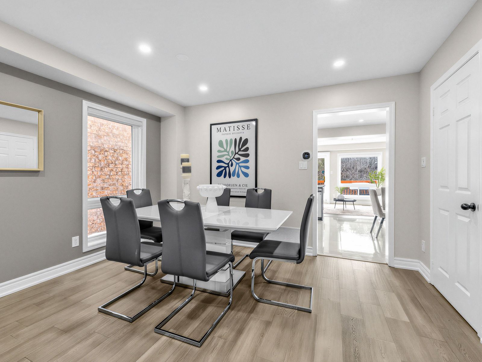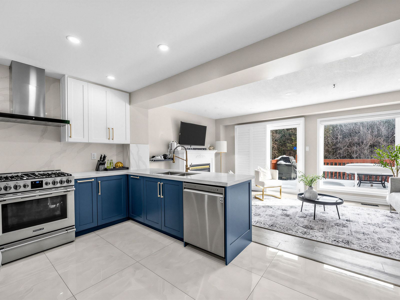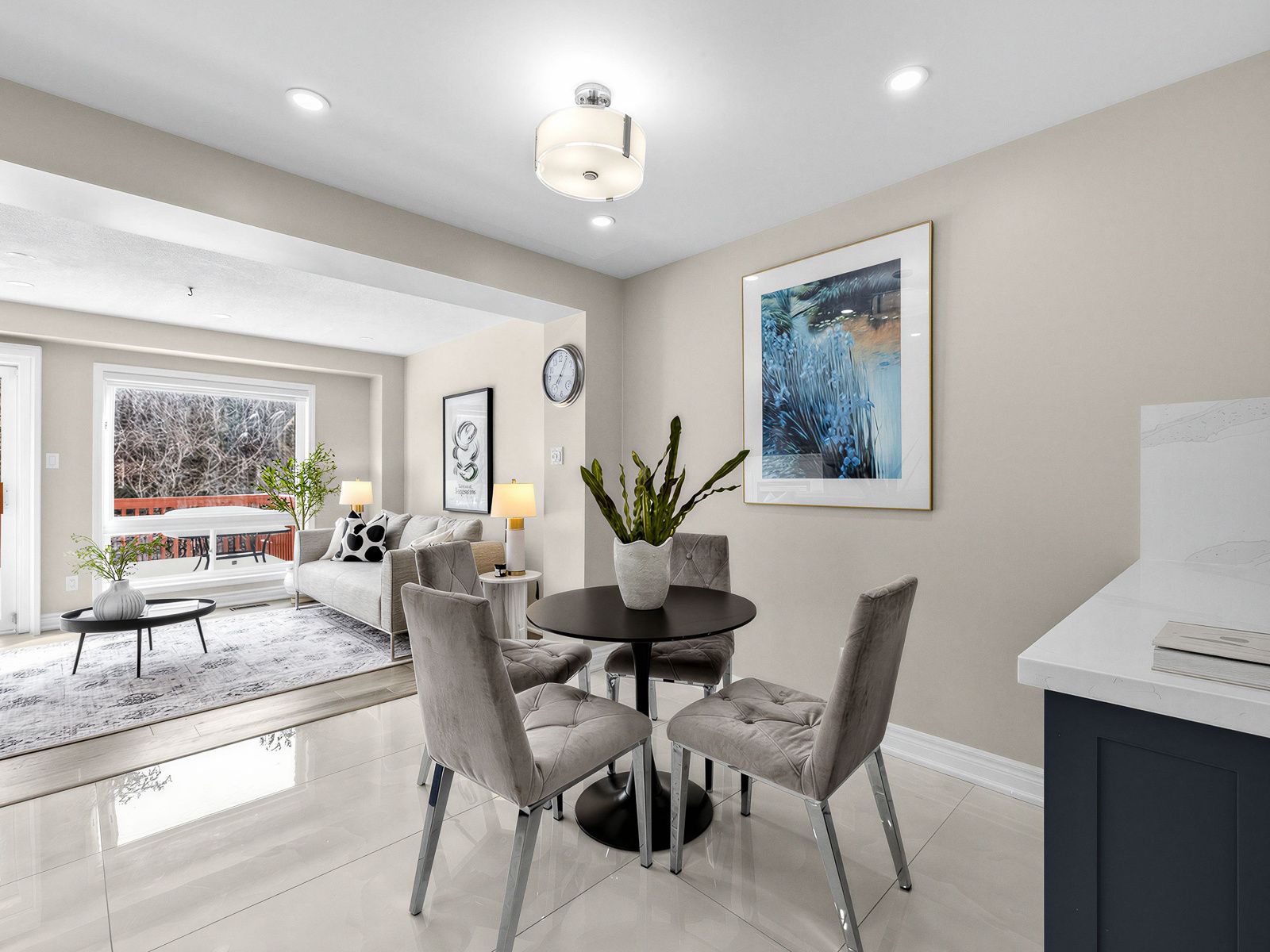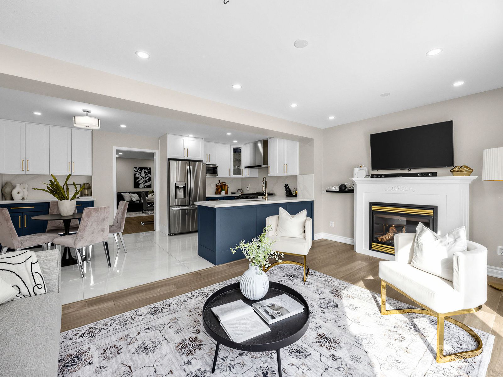 • Open living and dining area flows into a modern kitchen and breakfast nook.
