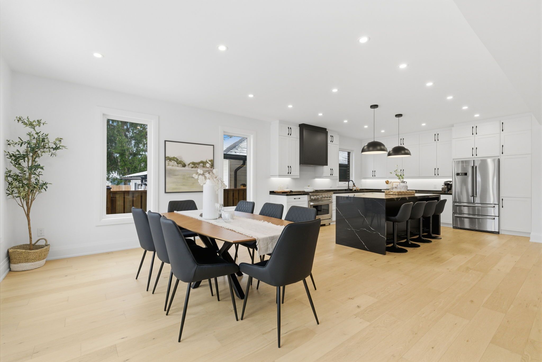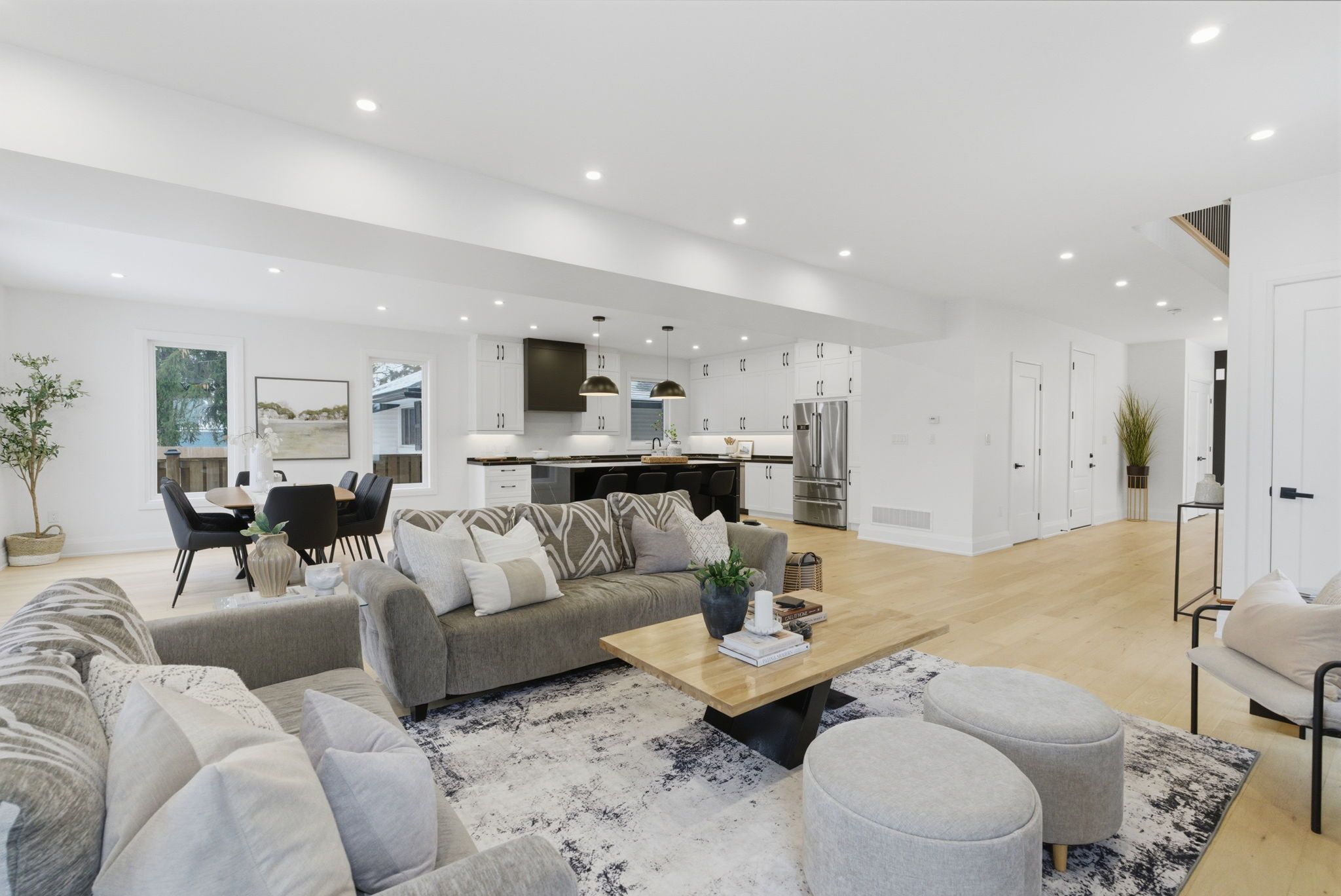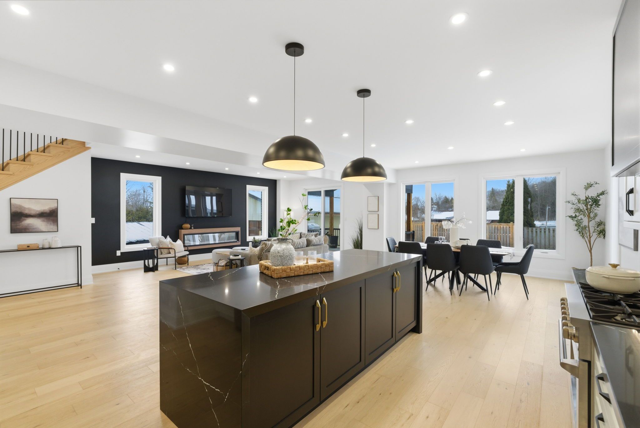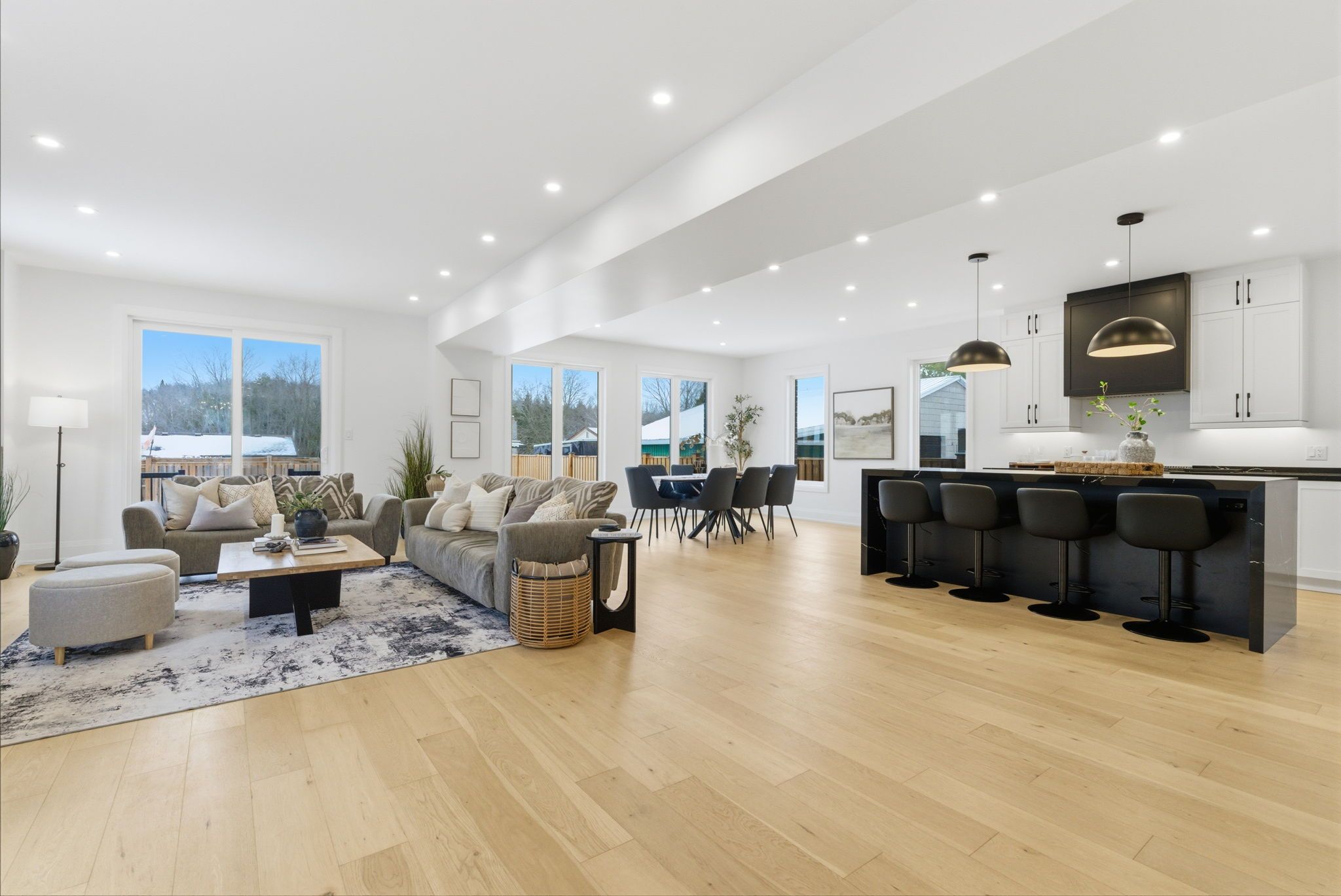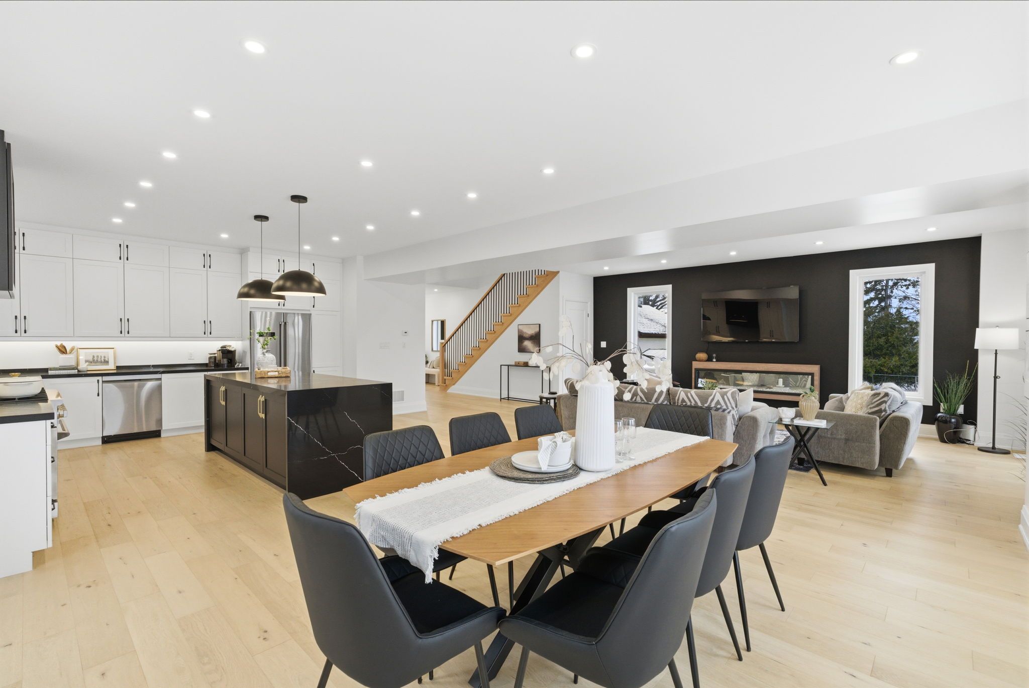 • Bright open concept layout with 9ft ceilings and wide-plank hardwood floors.
