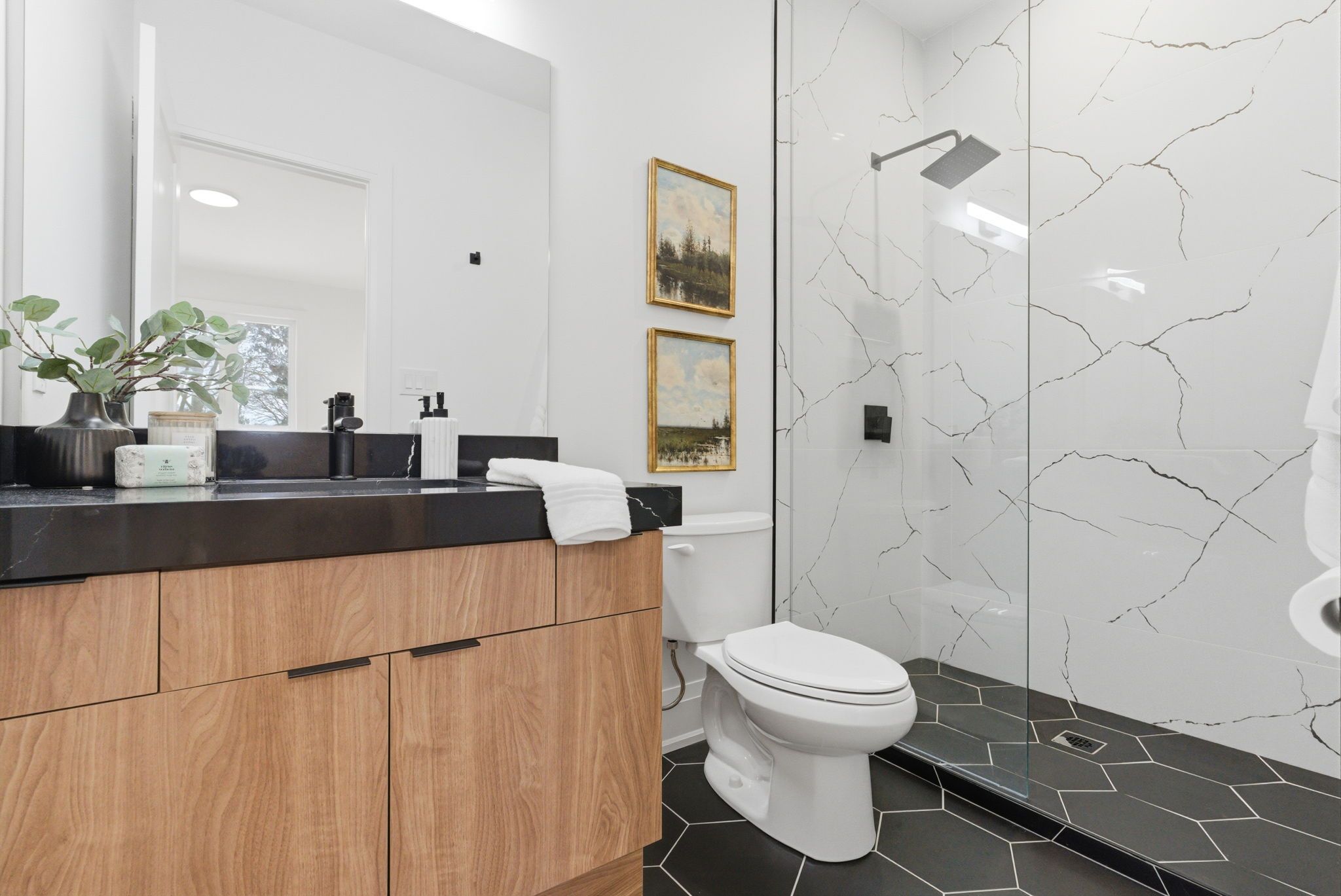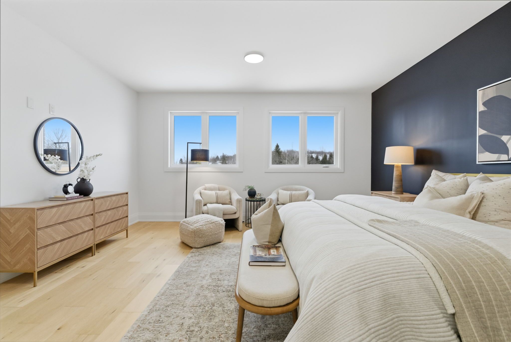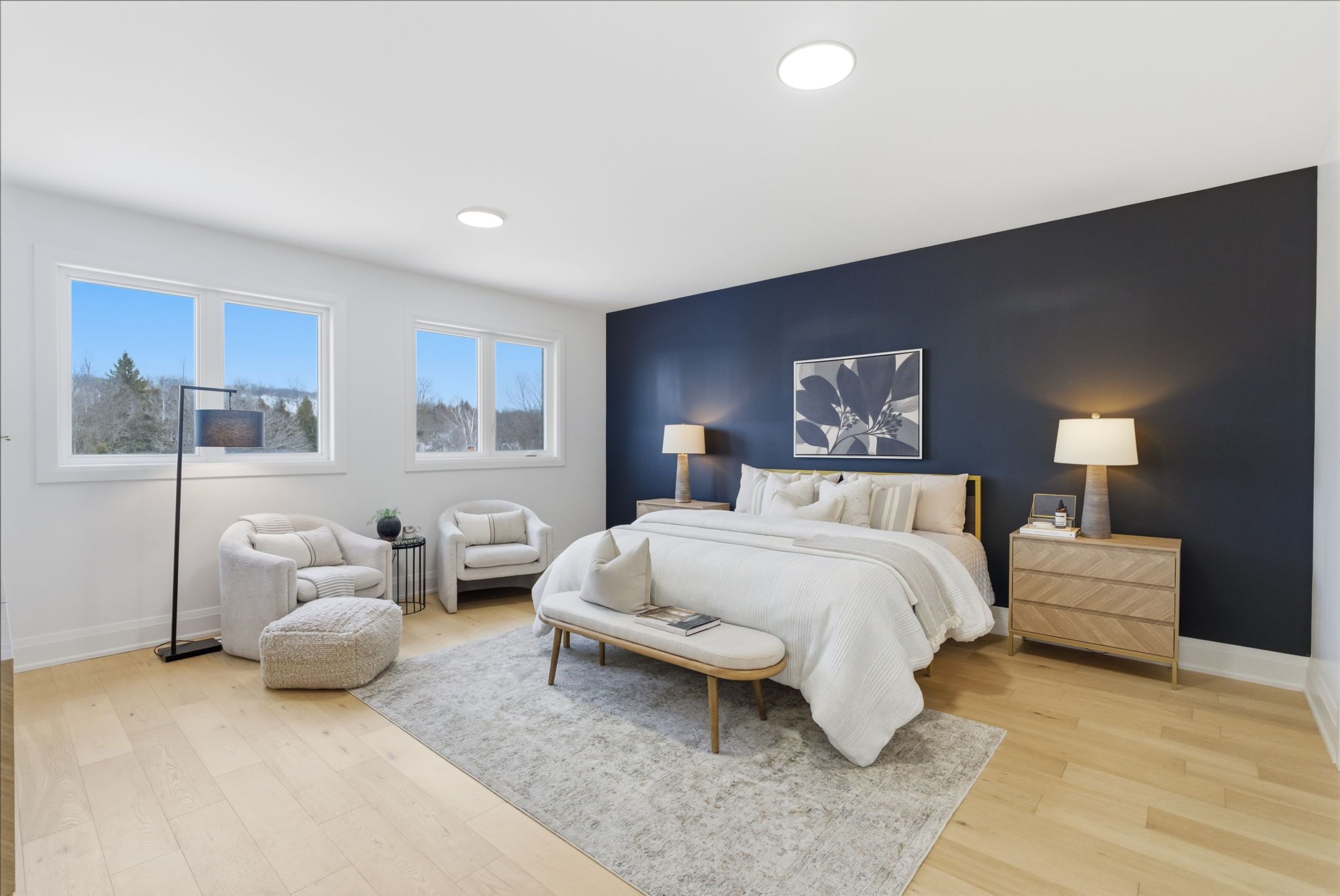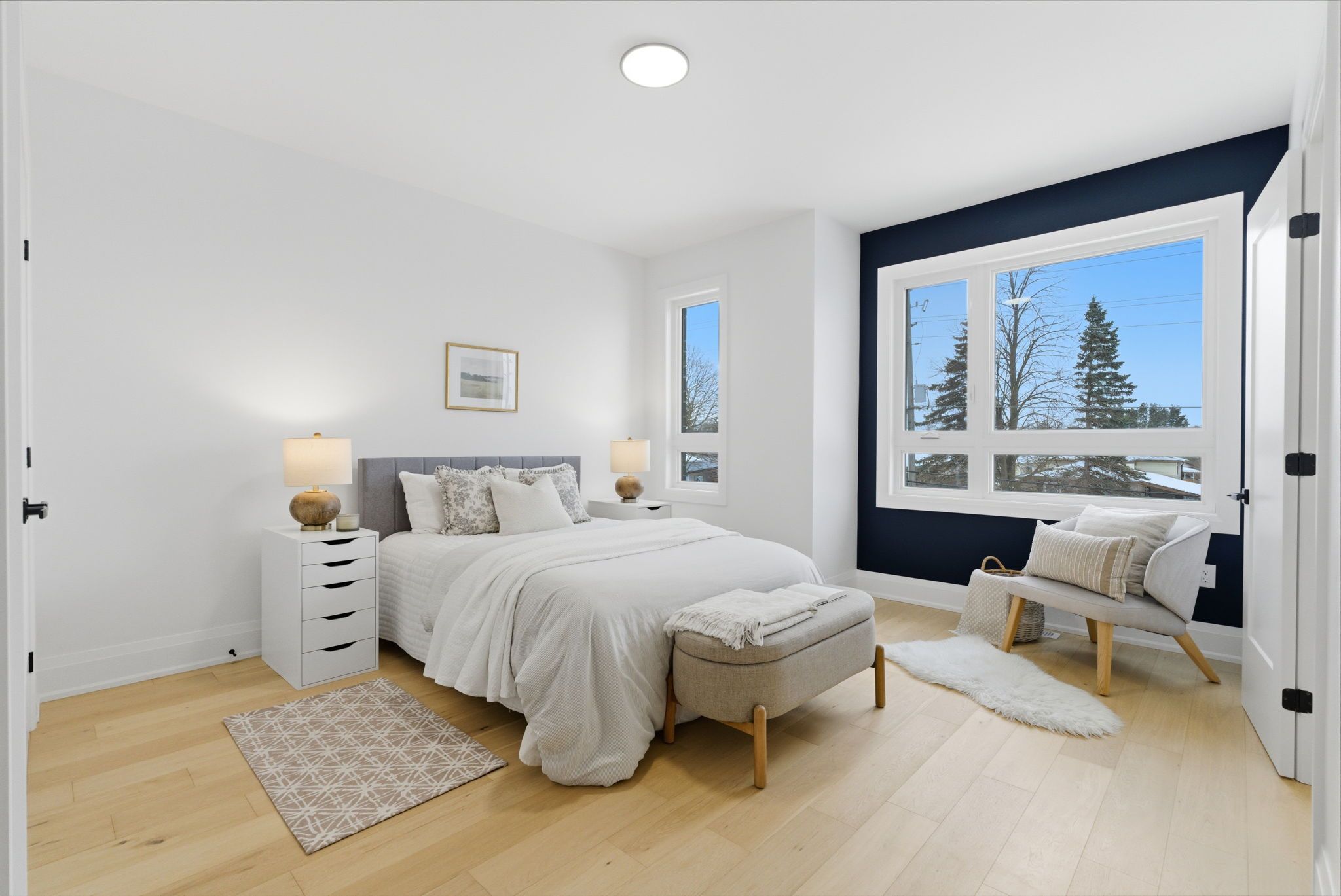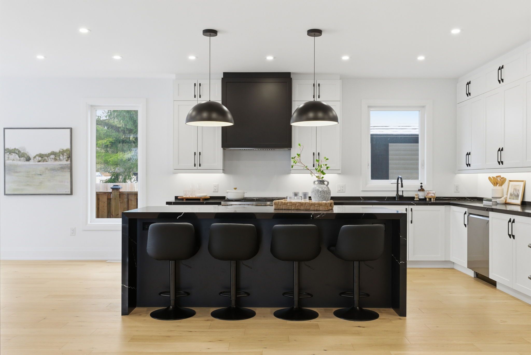 • Bright open concept layout with 9ft ceilings and wide-plank hardwood floors.