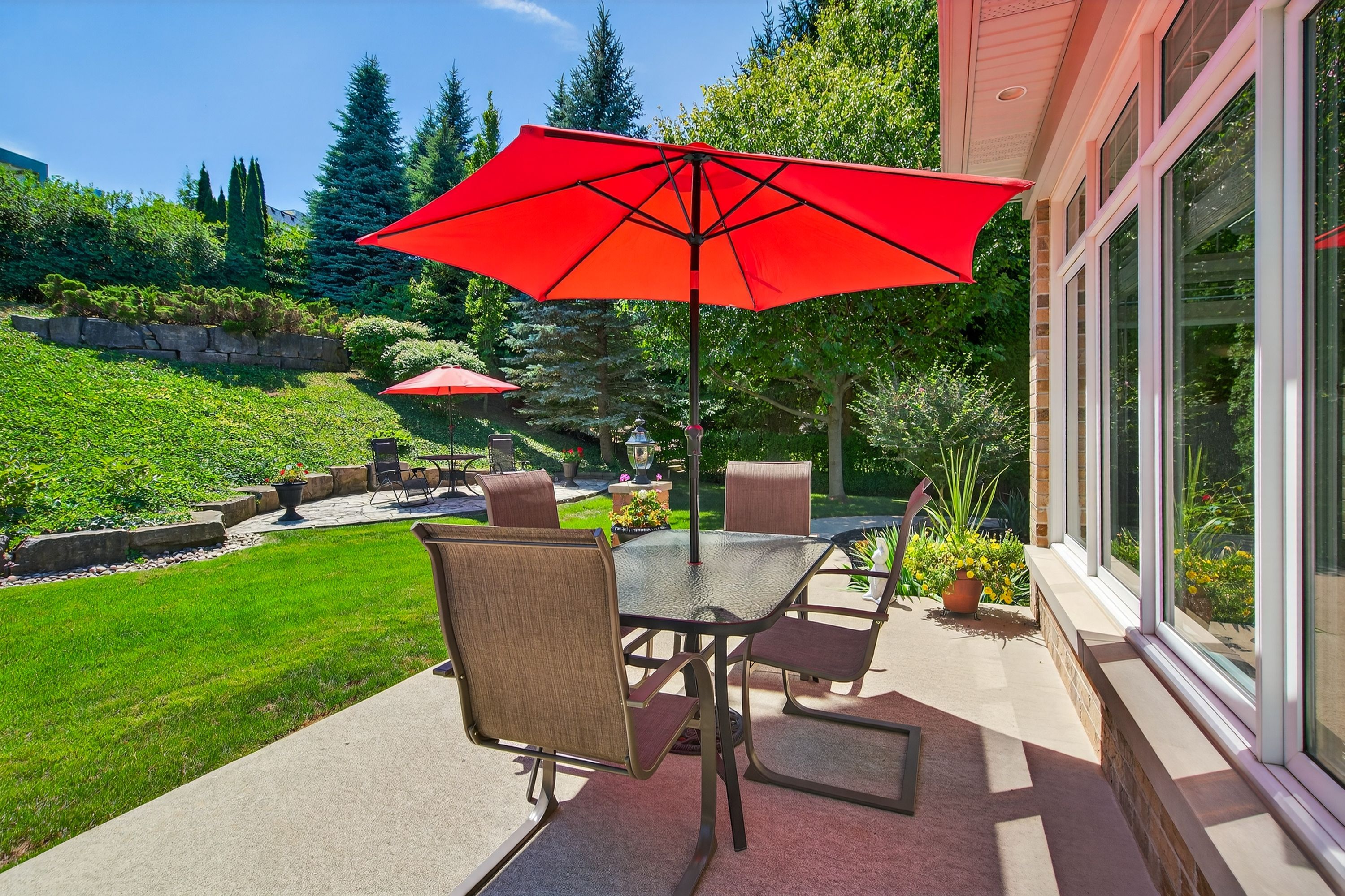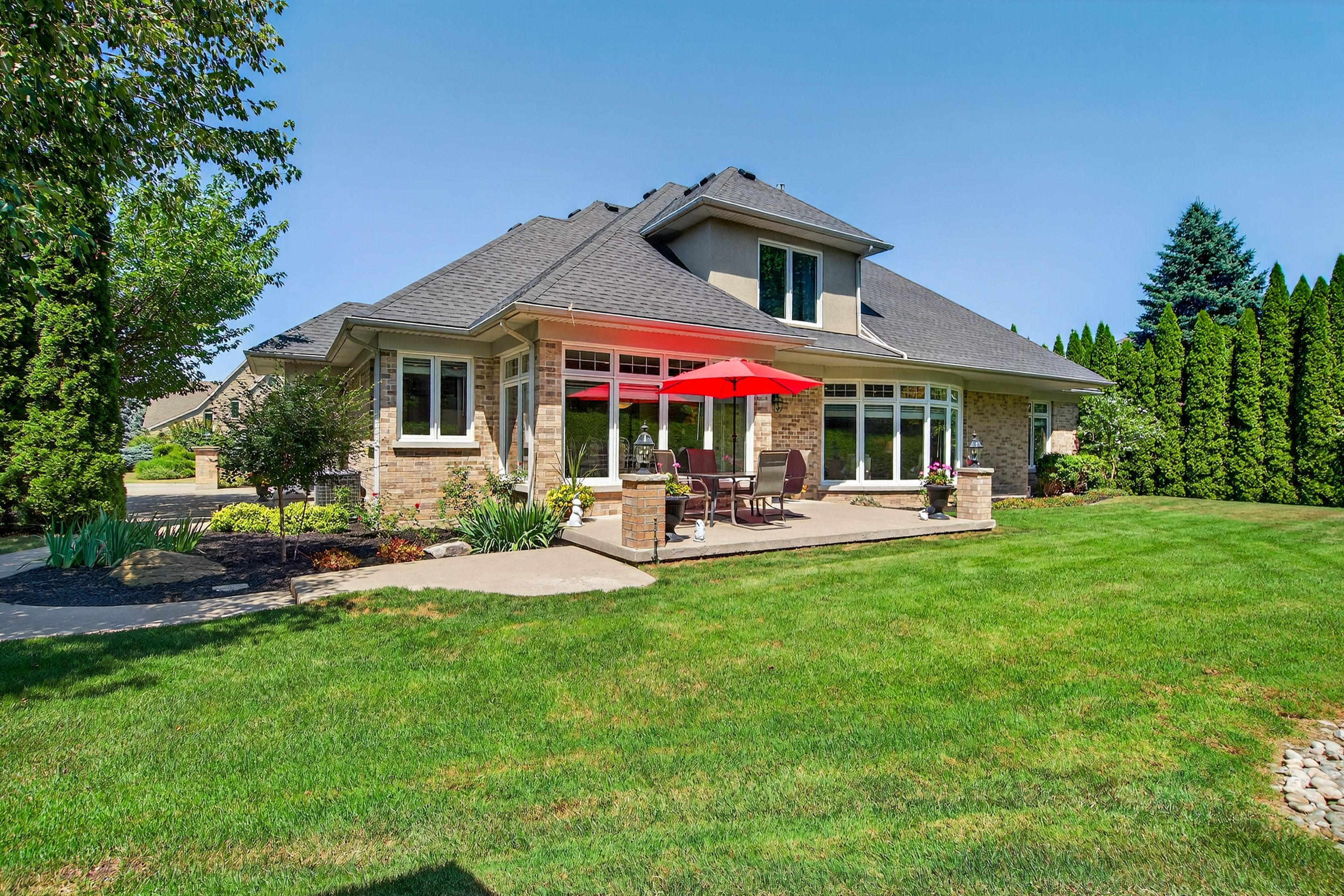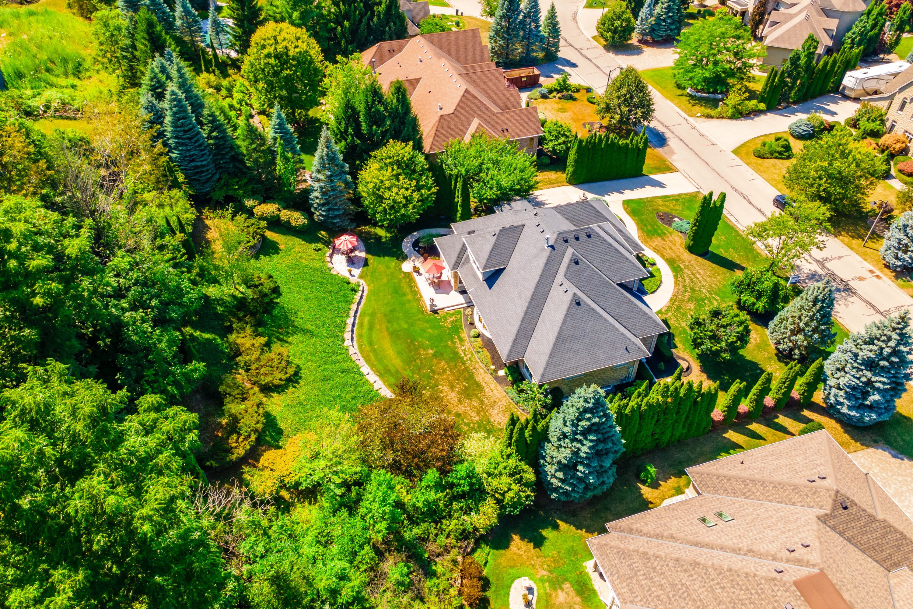 • Beautifully landscaped backyard oasis backing onto a wooded area for privacy.