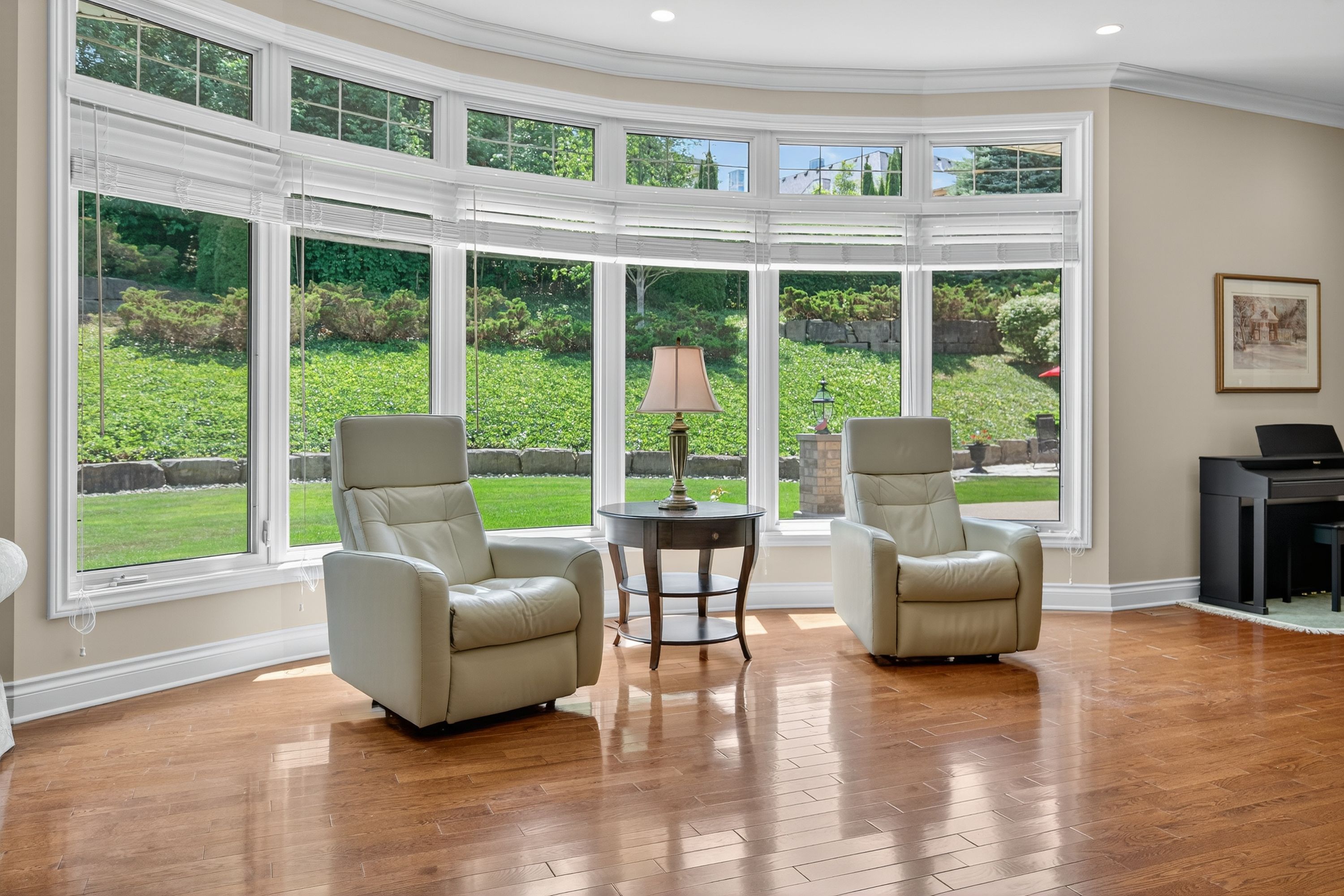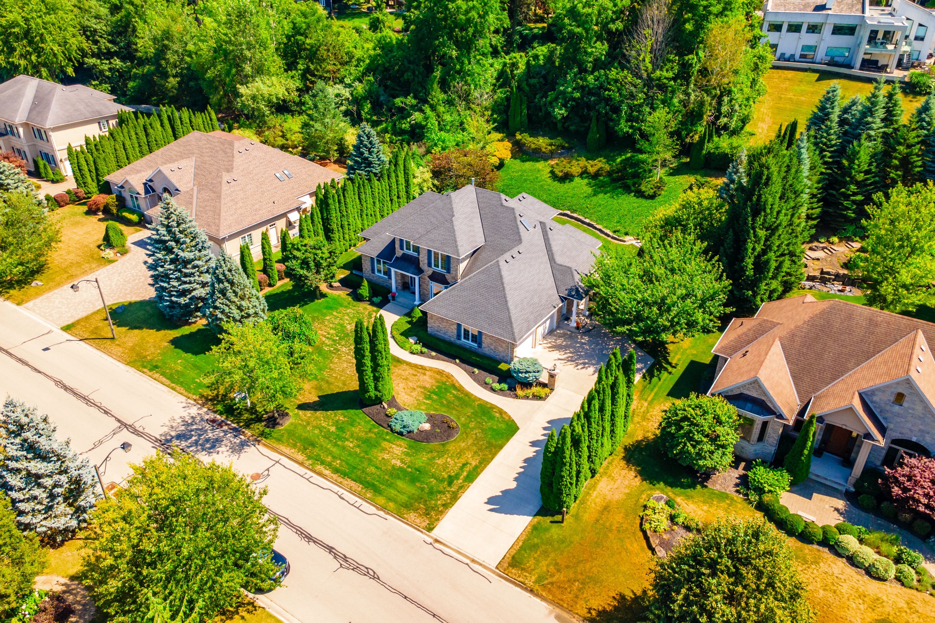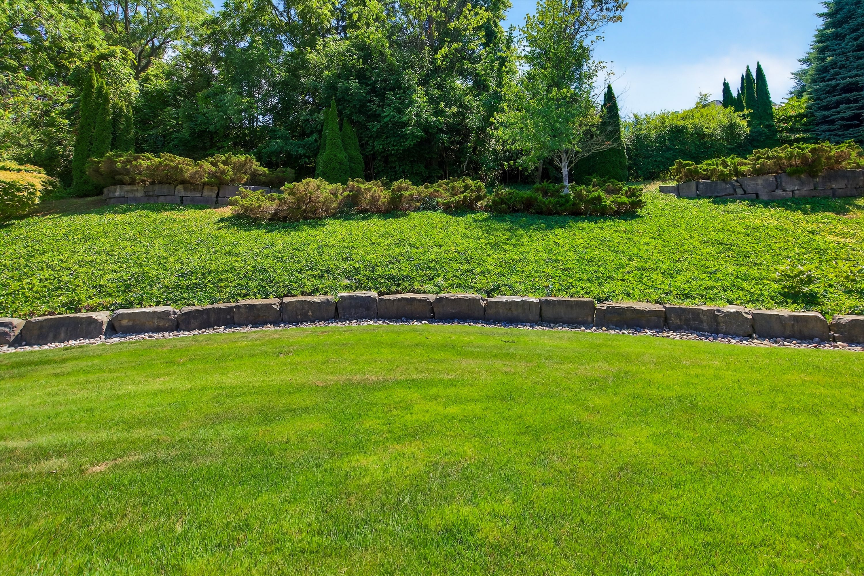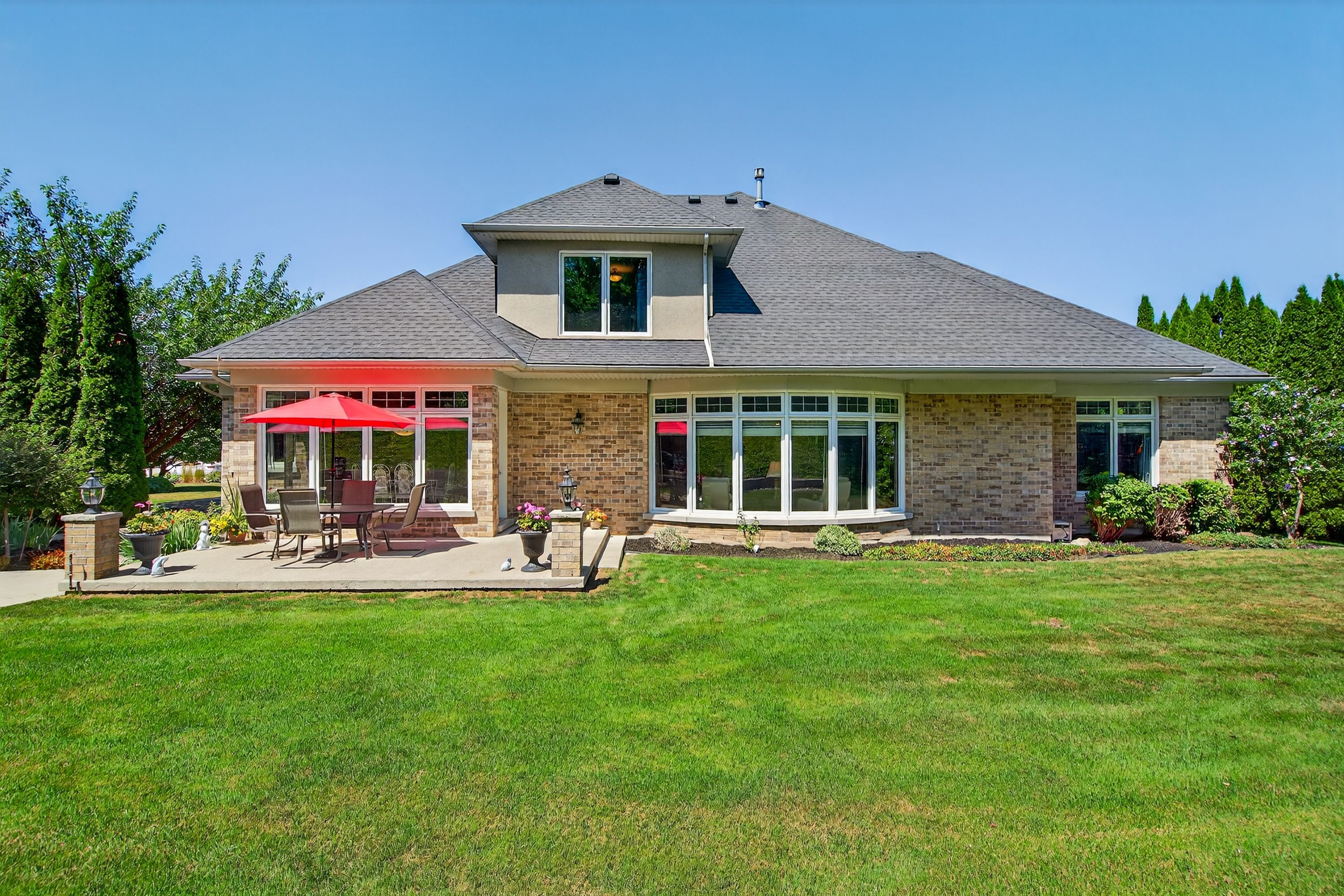 • Beautifully landscaped backyard oasis backing onto a wooded area for privacy.