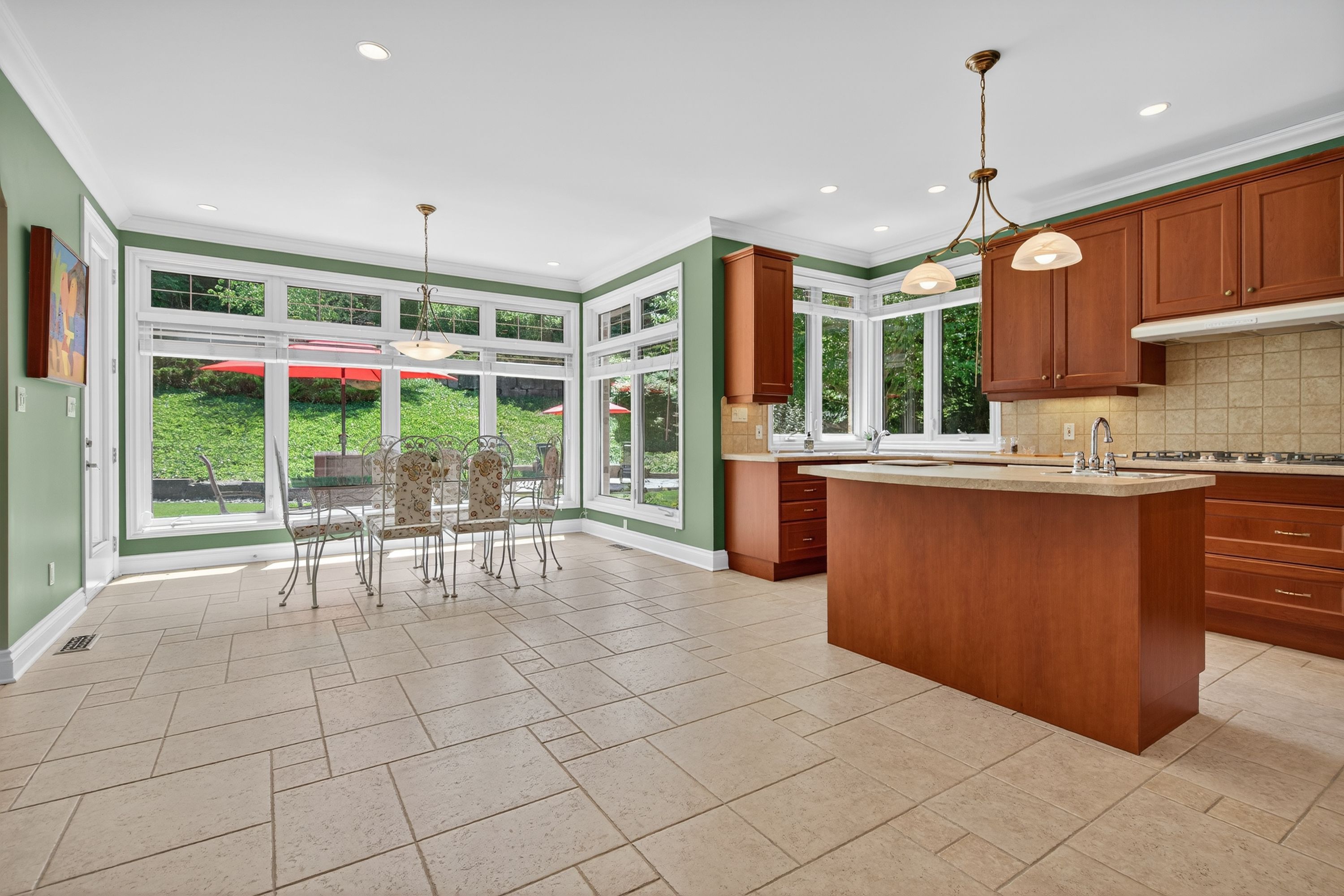 • Spacious kitchen with generous cabinetry and breakfast nook overlooking the yard.