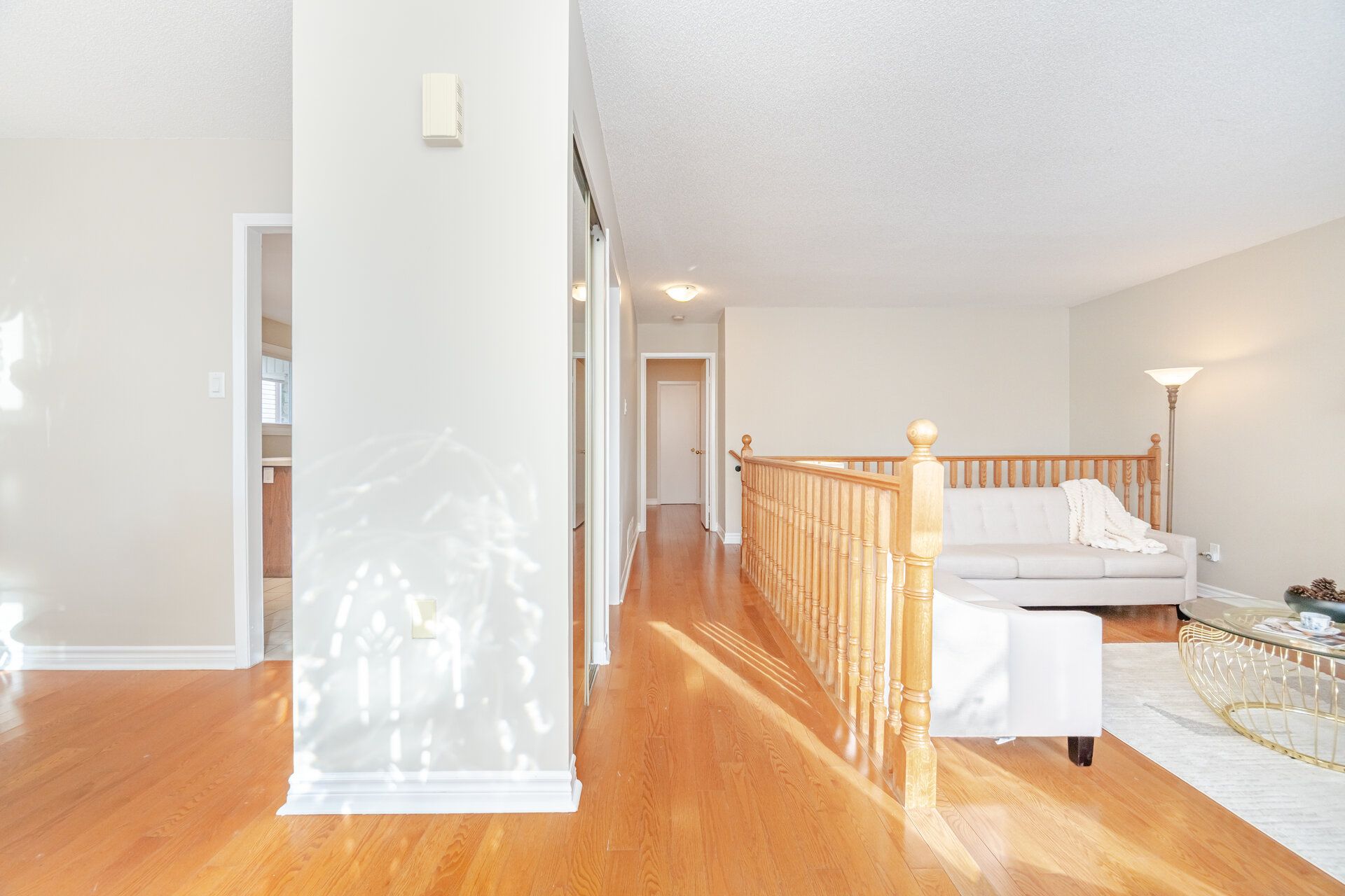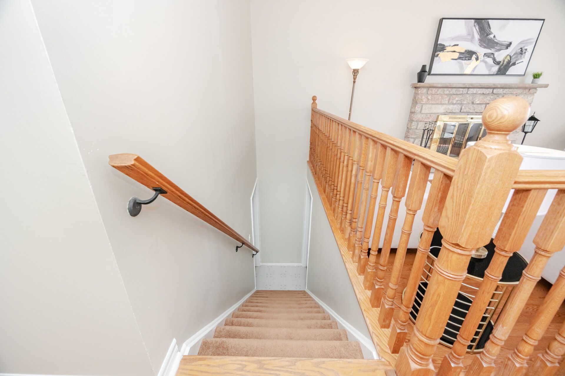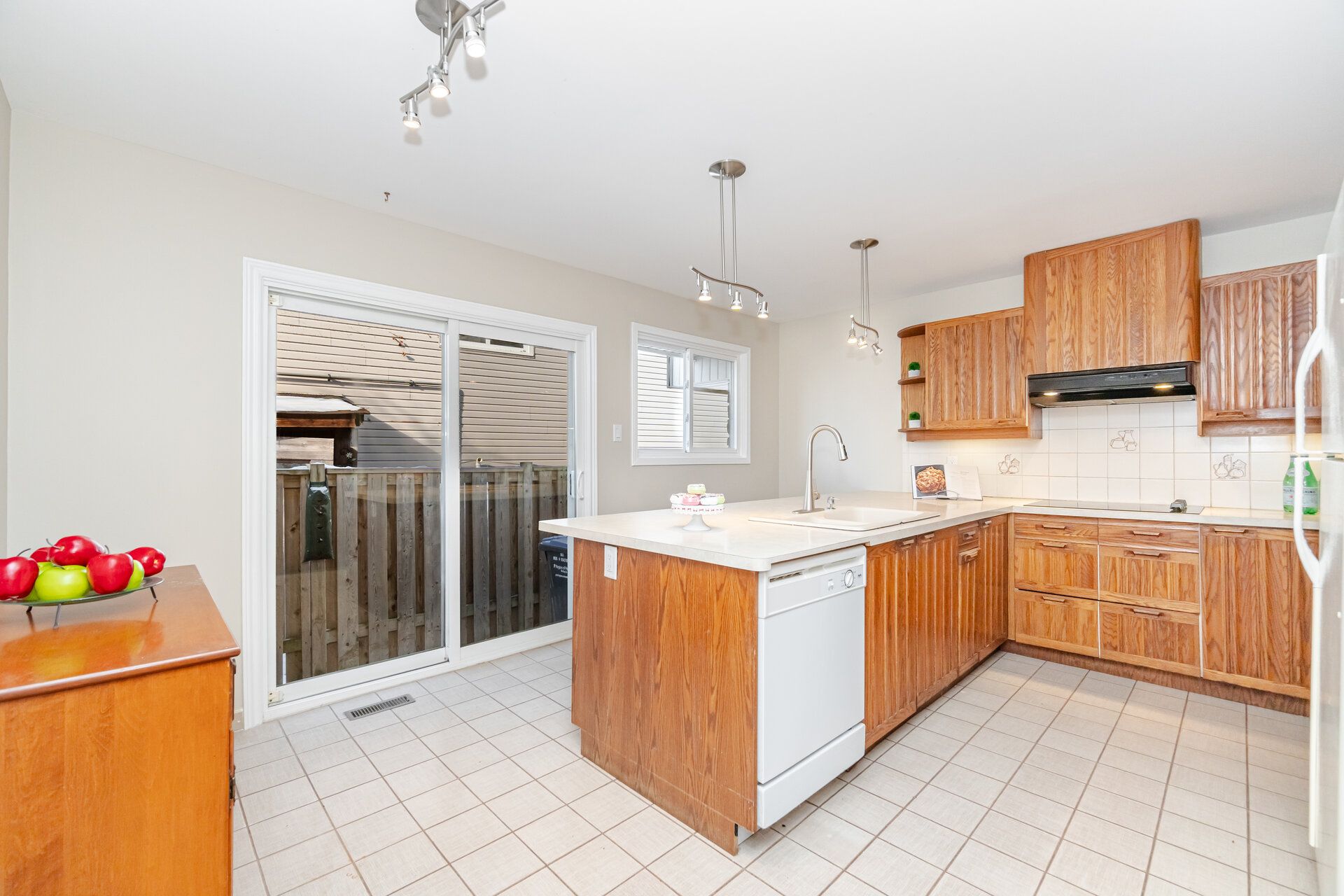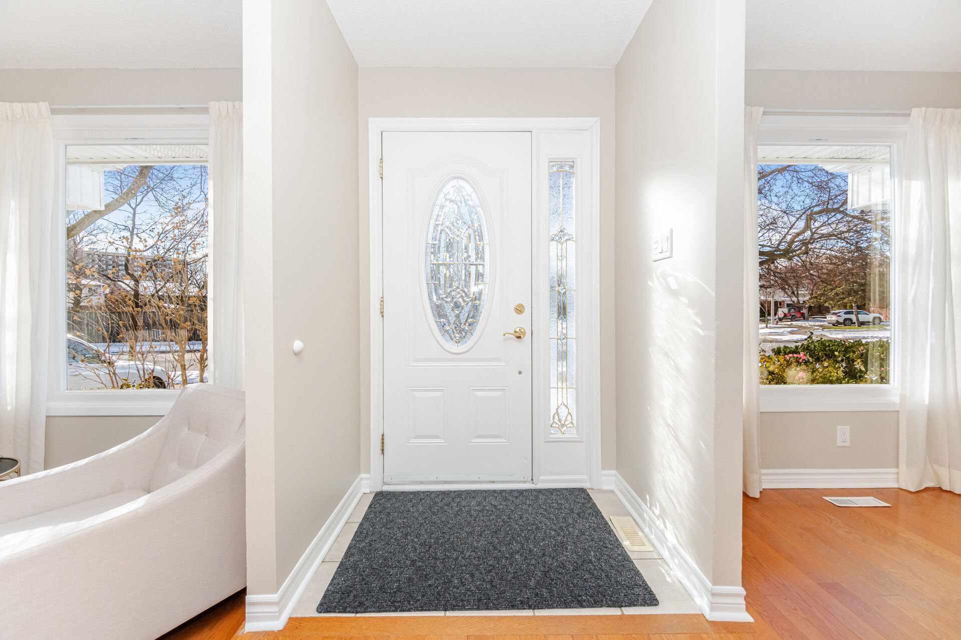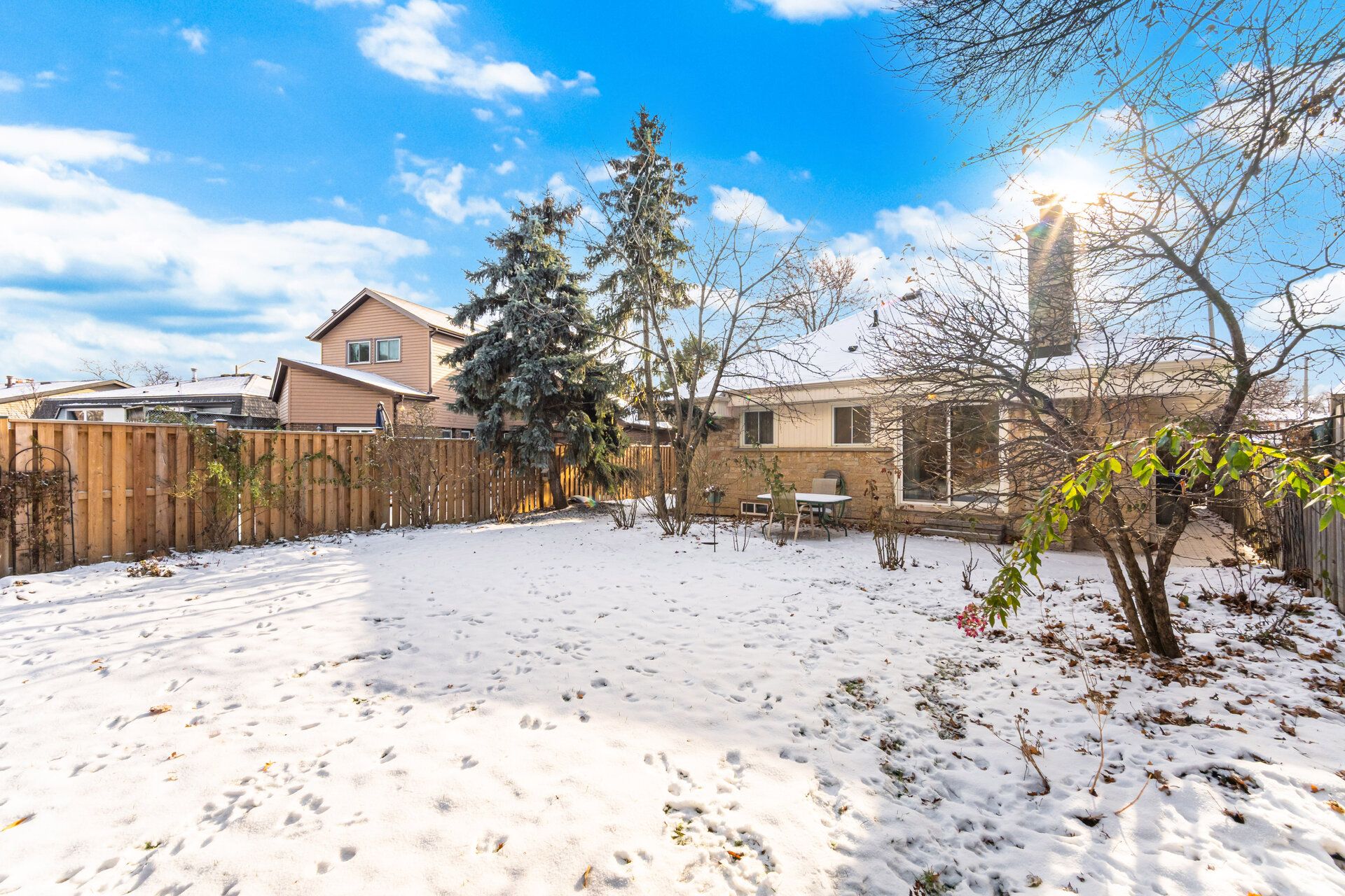 This meadowvale bungalow offers seamless single-level living with convenient access to shopping, public transit, and major transportation routes, presenting an excellent opportunity for buyers prioritizing location, style, and comfort with excellent walk scores. The residence features a distinguished stone brick exterior and extensive interlocking pathways, leading from the driveway along both sides of the property and rear patio area. The front entry with stone steps opens to a spacious foyer, where high-quality solid hardwood flooring extends throughout the main hallway, dining area, living room, and all bedrooms. The sunken living room is accentuated by a large window and a classic brick fireplace, creating an inviting ambiance. A separate formal dining room provides an ideal setting for family gatherings. The generously sized eat-in kitchen is equipped with ample cabinetry and counter space for efficient meal preparation and includes a sliding door walkout to facilitate outdoor grilling. All three bedrooms feature hardwood flooring, with the primary bedroom offering two large closets and direct access via a sliding walkout to the private, landscaped rear patio. The oversized attached garage adds further utility with a second roll-up door at the rear, allowing direct entry to the backyard. The finished lower level includes a spacious 38' open-concept recreational room with a wall-to-wall fireplace, a 3-piece bathroom, dedicated laundry area, a versatile utility or workshop measuring approximately 17'x16', and a walk-in closet suitable for seasonal storage. Recent enhancements to the property comprise comprehensive updates to the interlocking driveway, walkway, and rear patio, as well as improvements to the roof, eaves, soffit, fascia, windows (including two sliding walkouts), installation of a steel insulated garage door, and a central vacuum system. Both fireplaces have not been recently used.