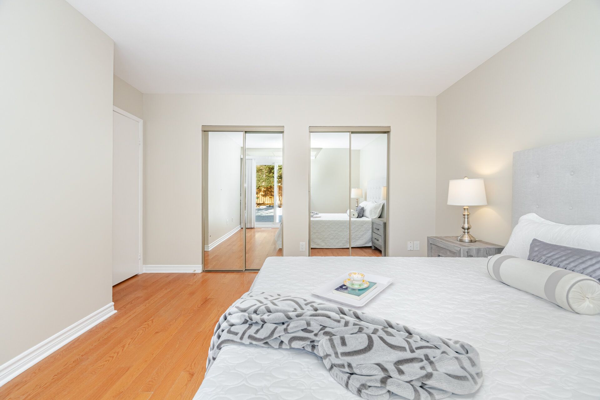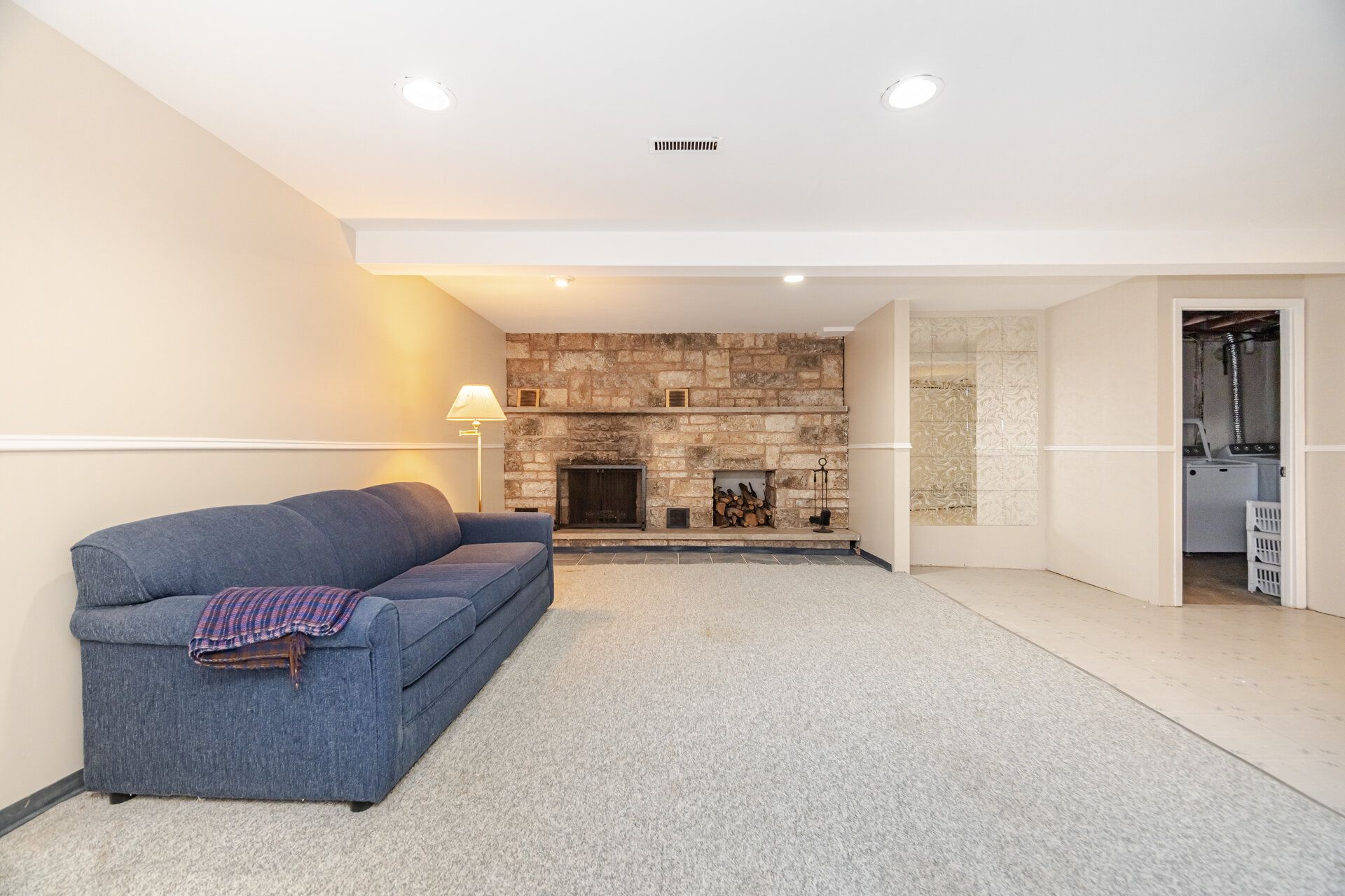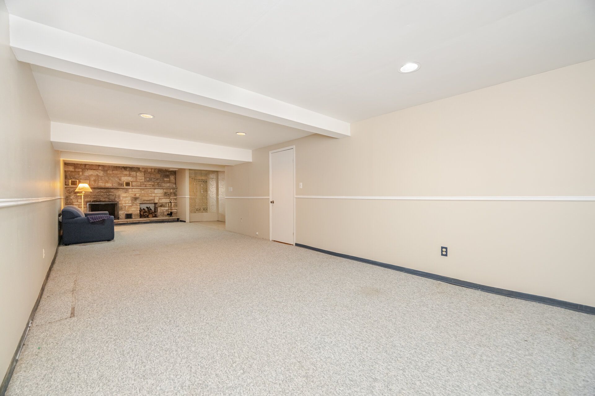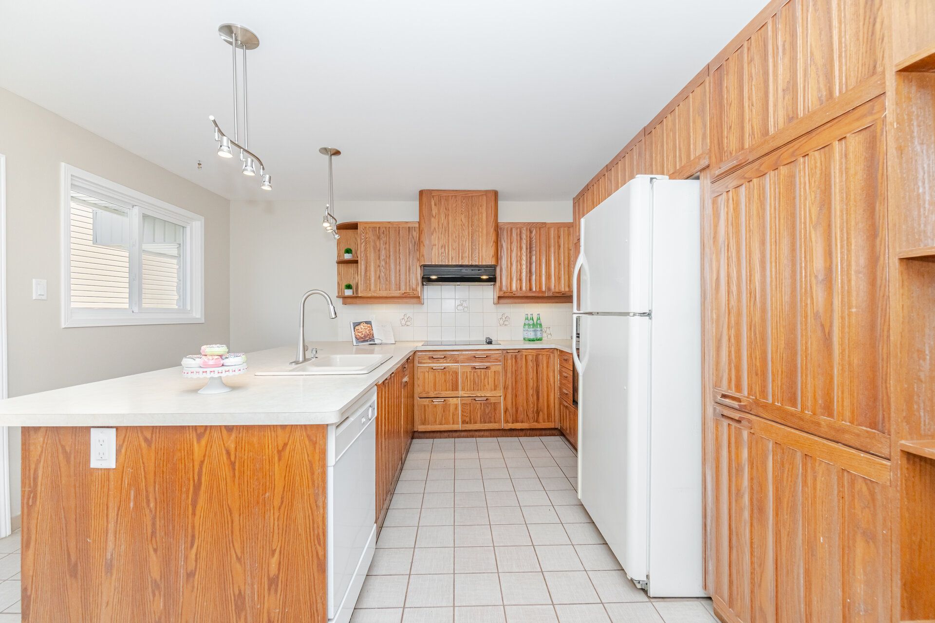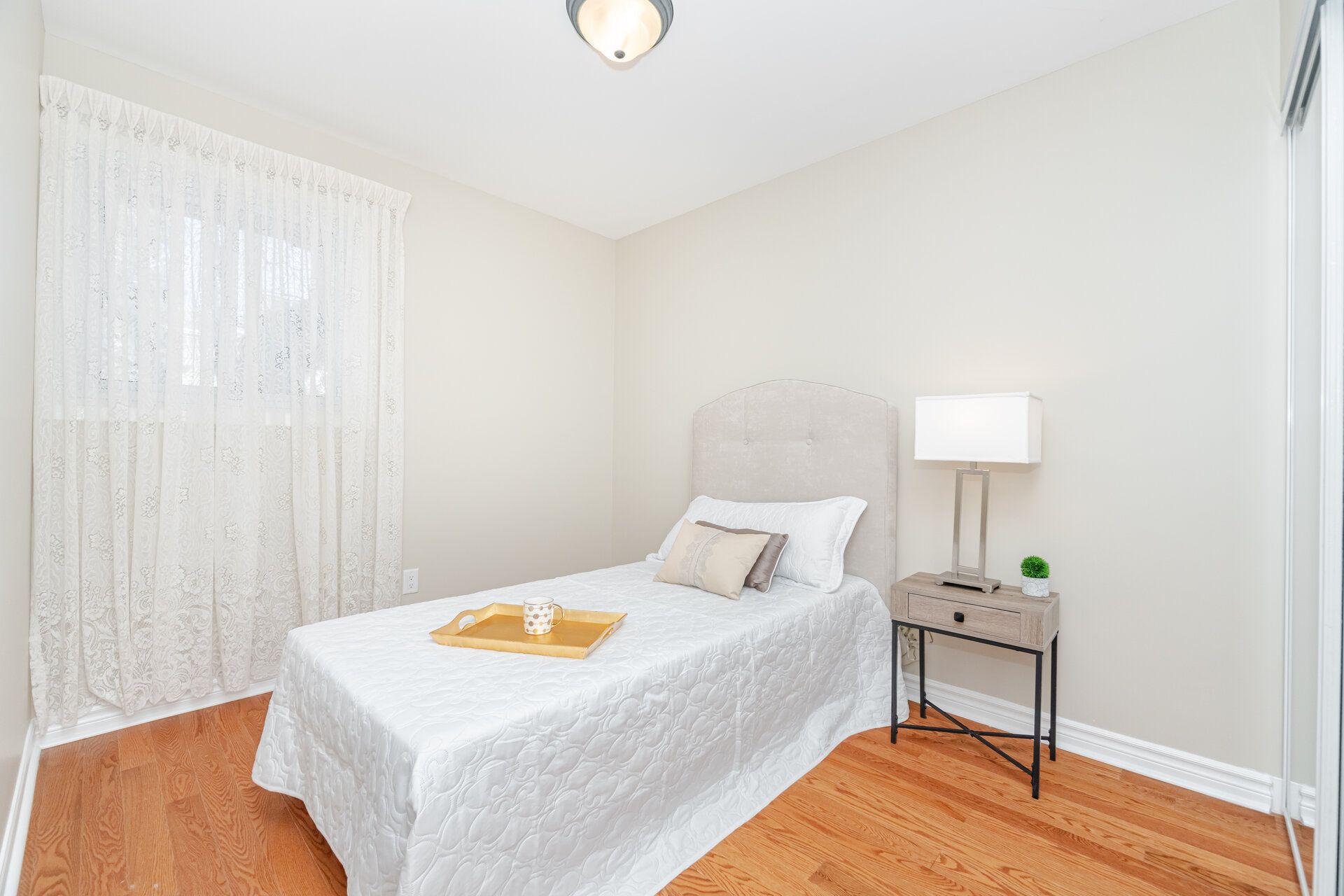 This meadowvale bungalow offers seamless single-level living with convenient access to shopping, public transit, and major transportation routes, presenting an excellent opportunity for buyers prioritizing location, style, and comfort with excellent walk scores. The residence features a distinguished stone brick exterior and extensive interlocking pathways, leading from the driveway along both sides of the property and rear patio area. The front entry with stone steps opens to a spacious foyer, where high-quality solid hardwood flooring extends throughout the main hallway, dining area, living room, and all bedrooms. The sunken living room is accentuated by a large window and a classic brick fireplace, creating an inviting ambiance. A separate formal dining room provides an ideal setting for family gatherings. The generously sized eat-in kitchen is equipped with ample cabinetry and counter space for efficient meal preparation and includes a sliding door walkout to facilitate outdoor grilling. All three bedrooms feature hardwood flooring, with the primary bedroom offering two large closets and direct access via a sliding walkout to the private, landscaped rear patio. The oversized attached garage adds further utility with a second roll-up door at the rear, allowing direct entry to the backyard. The finished lower level includes a spacious 38' open-concept recreational room with a wall-to-wall fireplace, a 3-piece bathroom, dedicated laundry area, a versatile utility or workshop measuring approximately 17'x16', and a walk-in closet suitable for seasonal storage. Recent enhancements to the property comprise comprehensive updates to the interlocking driveway, walkway, and rear patio, as well as improvements to the roof, eaves, soffit, fascia, windows (including two sliding walkouts), installation of a steel insulated garage door, and a central vacuum system. Both fireplaces have not been recently used.