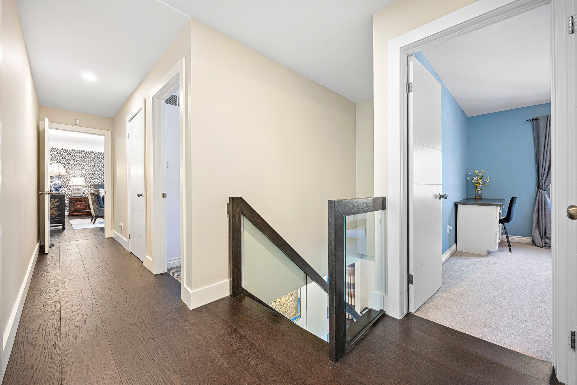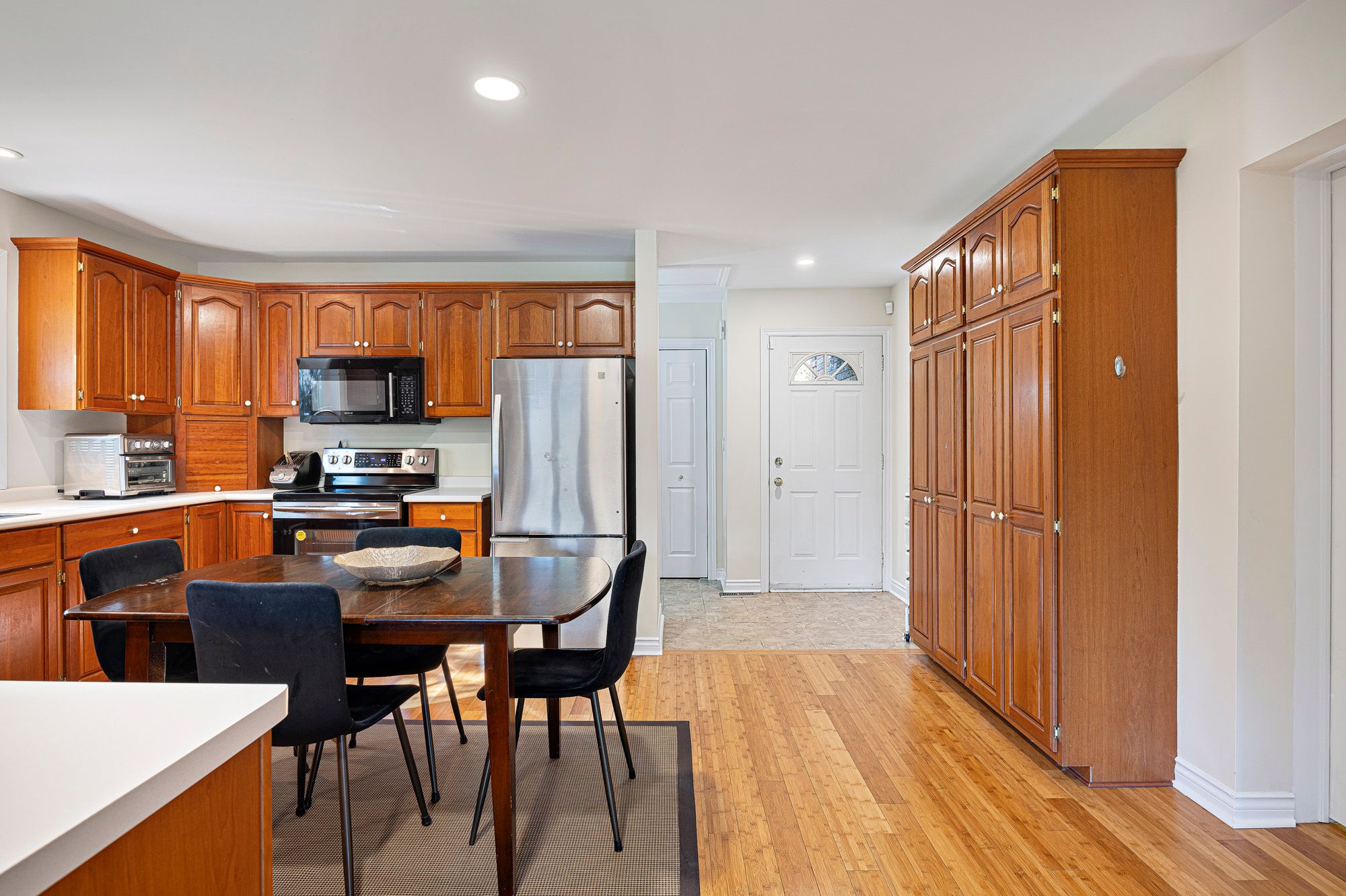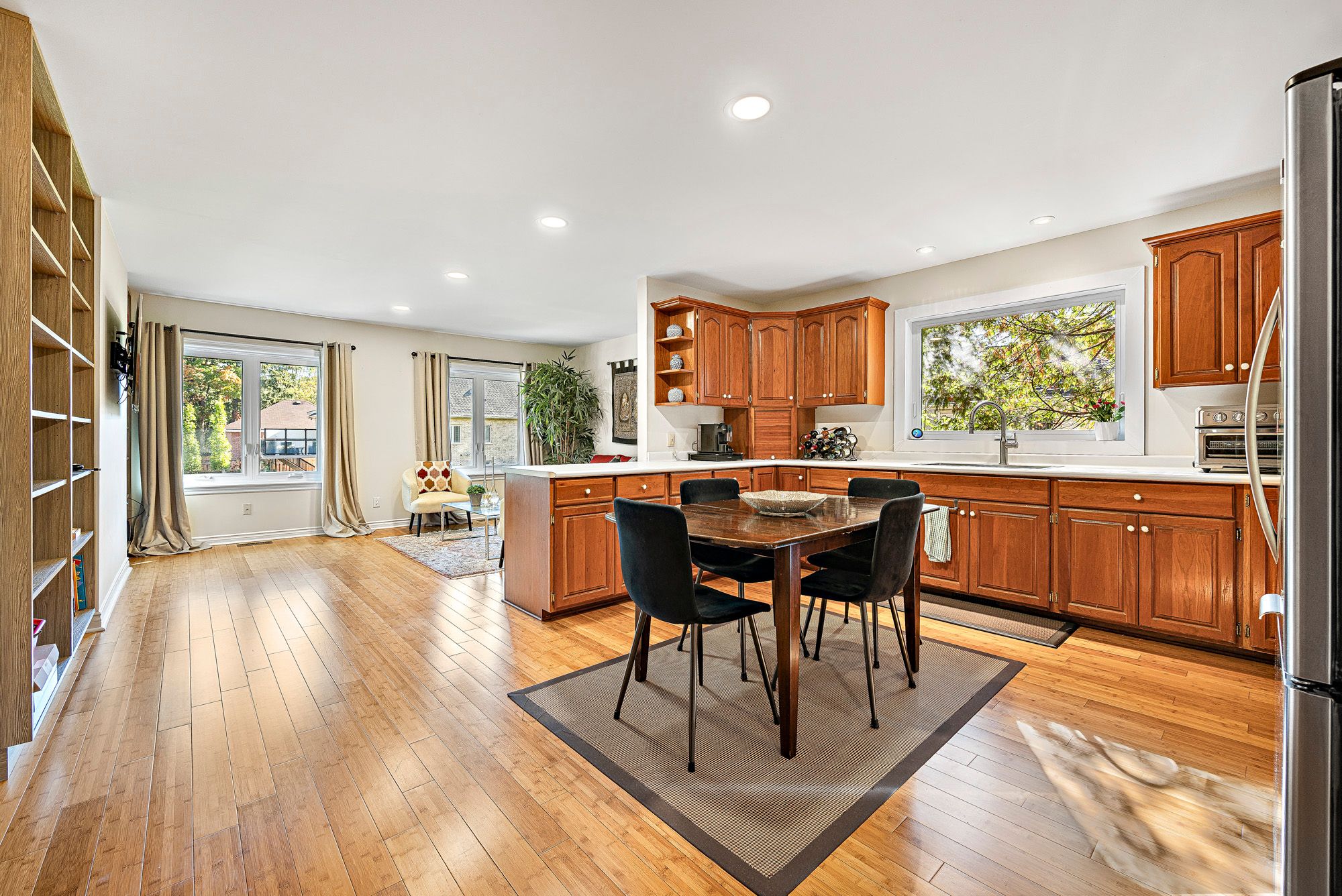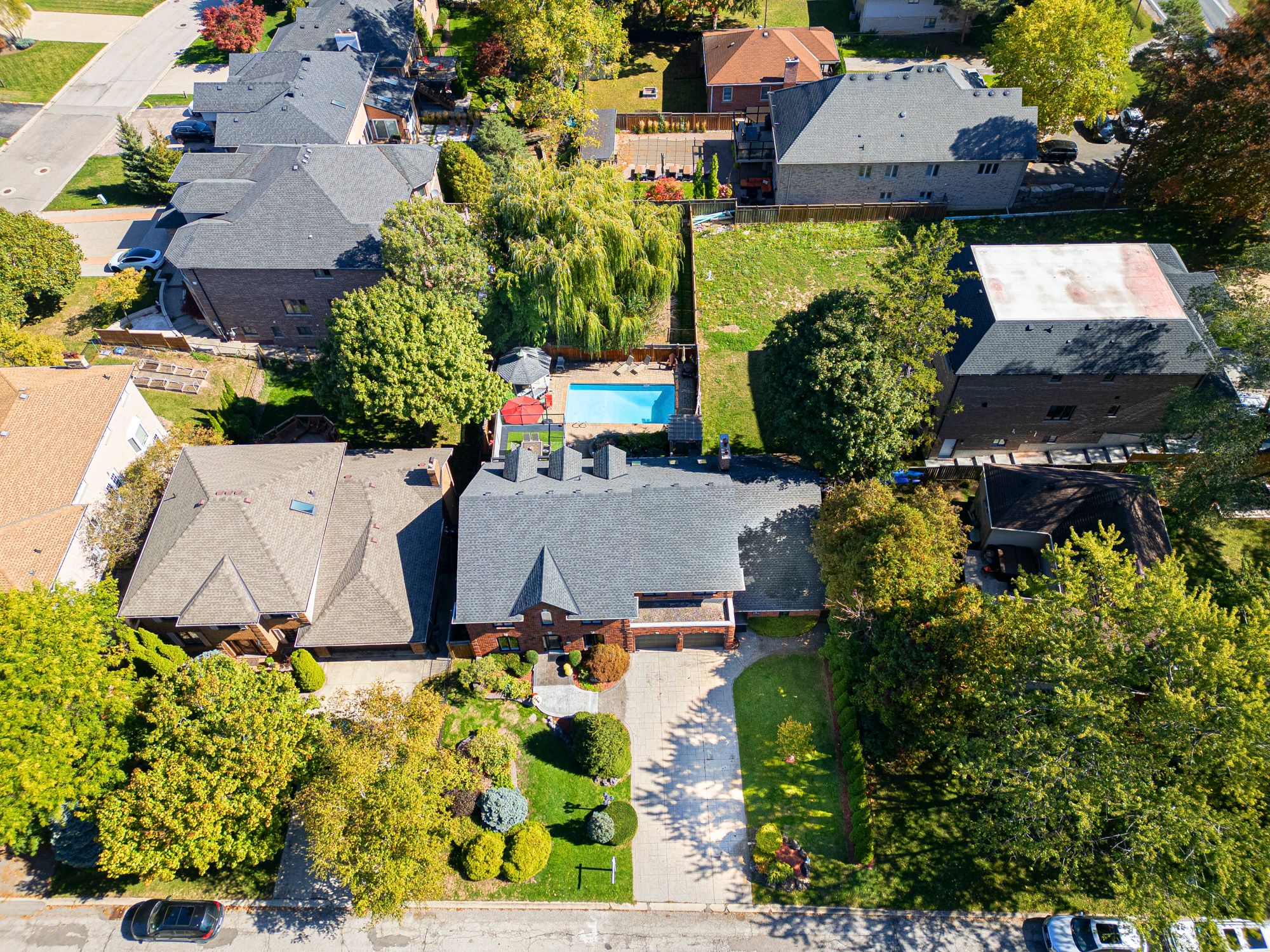 Professionally renovated executive home offering over 5,000 sq. Ft. Of finished living space in one of ancaster's most sought-after neighbourhoods. This impressive property features 4 + 1 bedrooms, 5 bathrooms, and 3,689 sq. Ft. Above grade, with an additional 2,048 sq. Ft. Finished walkout lower level providing exceptional living space and storage. A standout and rare feature of this property is the separate self-contained in-law suite with private front and rear entrances. This thoughtfully designed space includes a full kitchen, living room, bedroom, and bathroom, offering an ideal setup for multigenerational living, live-in caregivers, guests, or potential income opportunities while maintaining privacy and independence. The main level showcases dark hardwood flooring, upgraded doors and trim, and thoughtfully curated finishes throughout. The chef-inspired kitchen is the heart of the home, featuring a large quartz island, premium appliances, and ample space for both everyday living and entertaining. Elegant principal rooms include a formal dining area, inviting family room with skylights, formal sitting room, and a dedicated library or home office. Renovated bathrooms throughout the home offer modern fixtures and spacious glass showers. The primary bedroom retreat is truly exceptional, complete with a luxurious 5-piece ensuite and an expansive walk-in closet, creating the perfect private sanctuary. Step outside to a beautiful backyard oasis designed for relaxation and entertaining, featuring a pool, hot tub, gazebo, expansive deck with awning, stone patio, and storage shed-an ideal setting for memorable gatherings with family and friends. A double garage and spacious driveway provide ample parking and convenience. Ideally located close to top-rated schools, parks, golf courses, conservation areas, shopping, and major highway access, turn-key living with outstanding flexibility for large or multi-generational families and income potential.