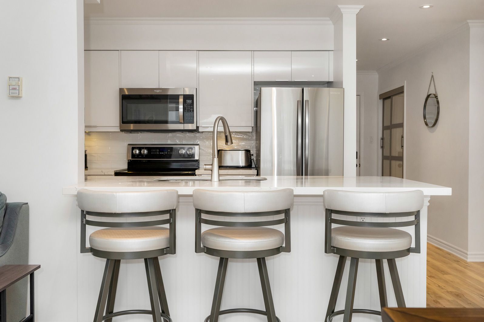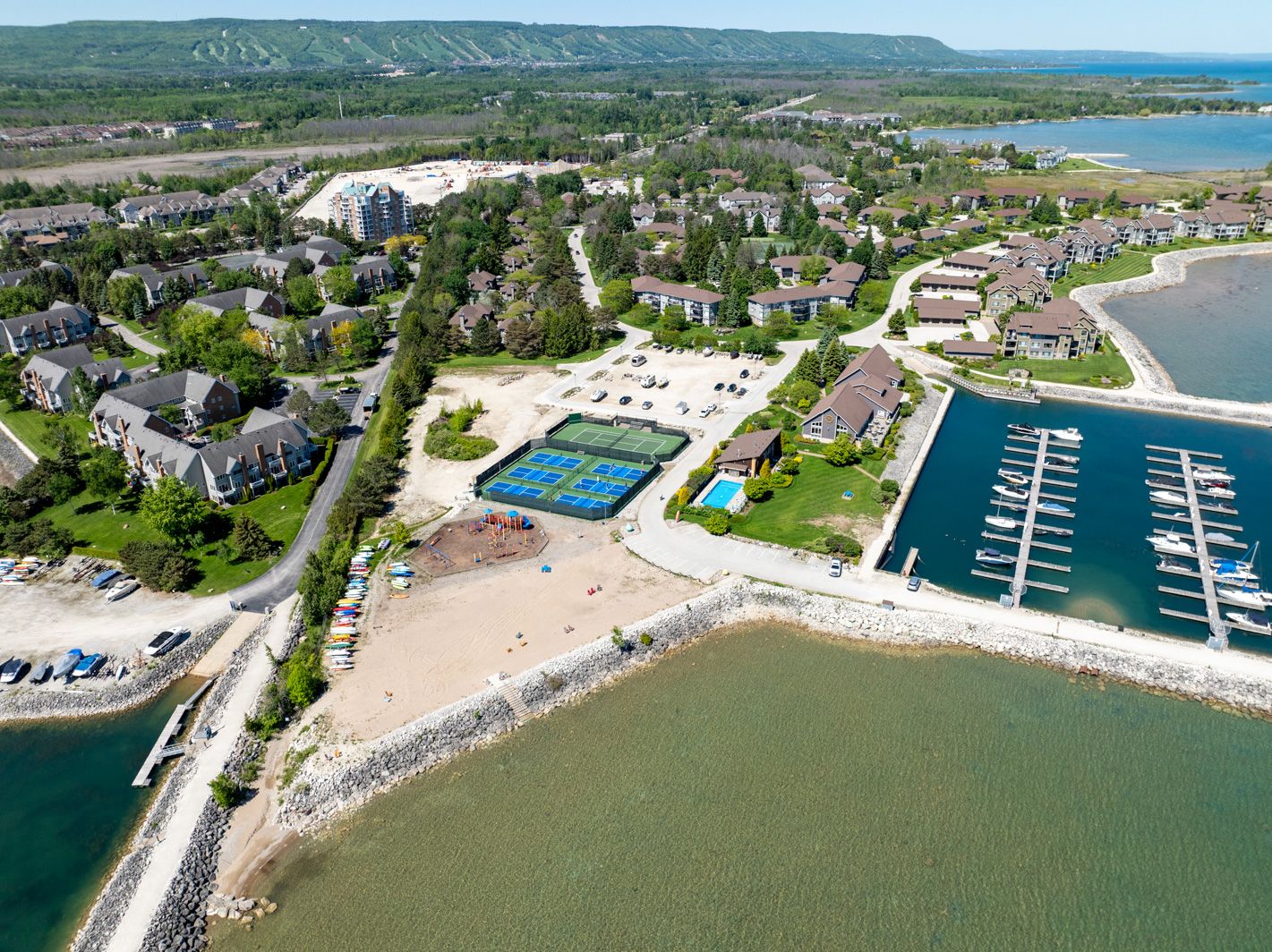 Seasonal winter rental in lighthouse point with flexible dates, minimum 4 month rental term. Bright & spacious updated 3 bedroom 2 bath has been fully renovated, upper level condo offers georgian bay water views. Large dining can be set for 8 people and is open to the living room with thermostat controlled gas fireplace. Primary bedroom with 3 piece ensuite bath & king size bed, 2nd bedroom with double bed, and 3rd bedroom with 2 twin beds. Laundry facilities in suite. Great location, short drive to ski hills, village at blue mountain and downtown collingwood. Located in lighthouse point offering many amenities to enjoy winter off the ski hills, indoor swimming pool, hot tub, sauna, fitness room, games room, and more. Ample parking for guests. No pets and no smoking. Winter season rental plus utilities, cable, internet and final cleaning entirely prepaid.