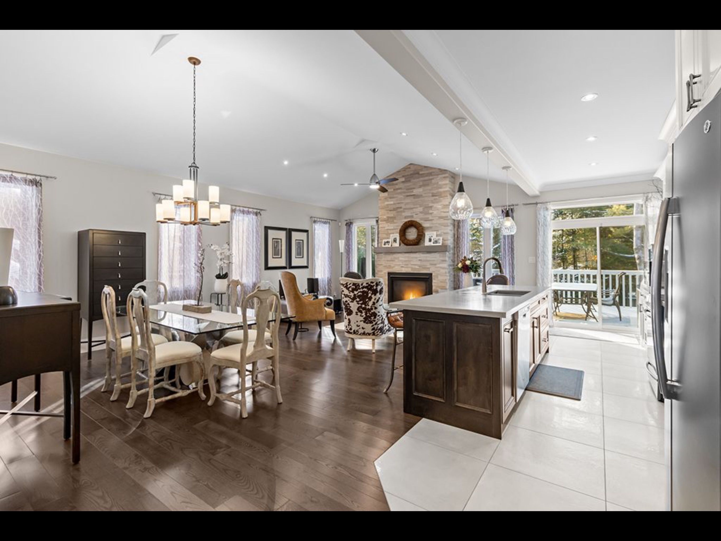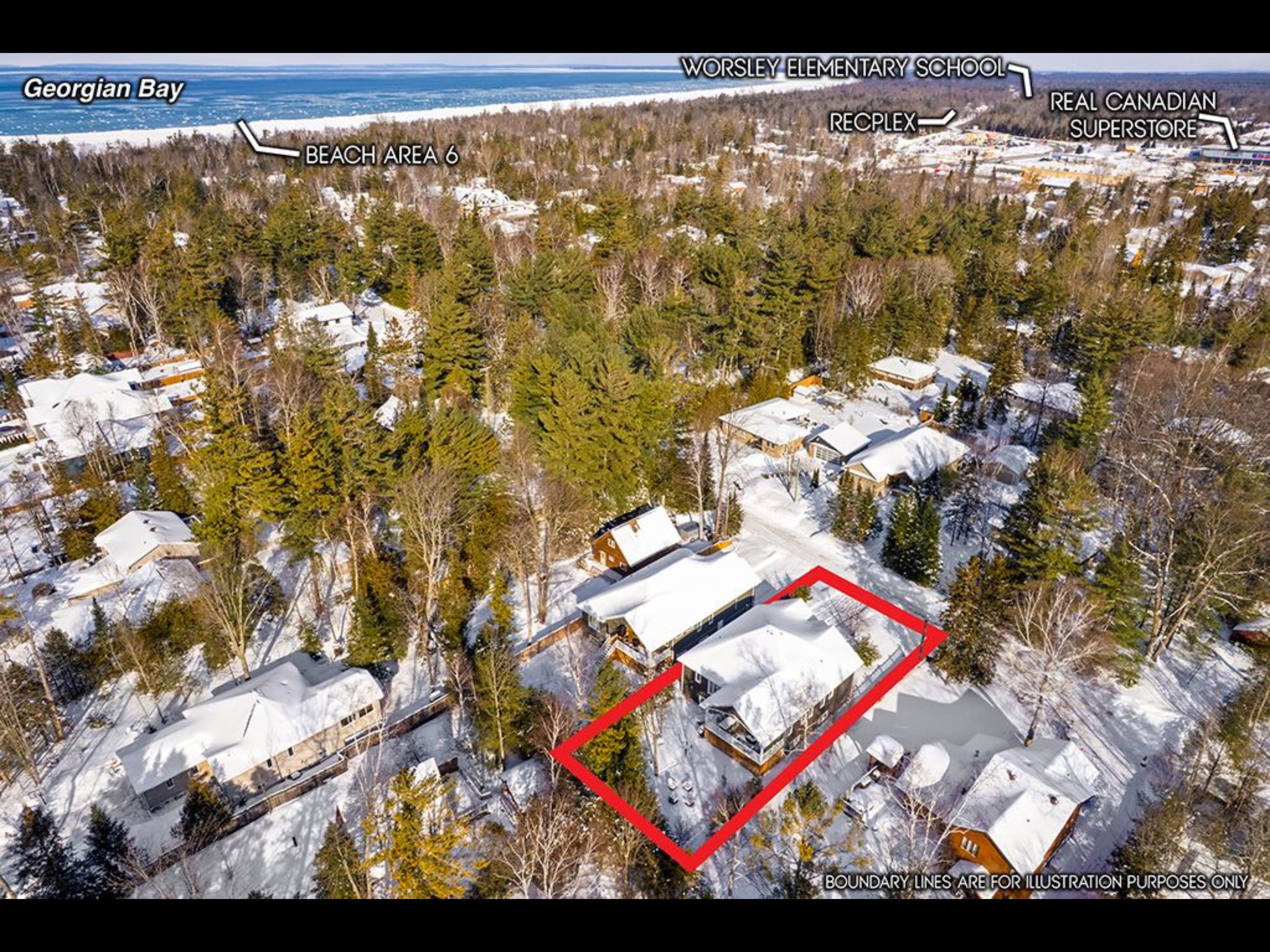 Custom built, spacious bungalow. Open concept kitchen, living and dining. Soaring cathedral ceilings and eye catching stone fireplace. Main level opens onto a huge covered deck, perfect for outdoor entertaining and relaxing. 4 bedrooms + den. Generous size main floor primary bedroom with walk-in closet and ensuite bath. Tastefully completed lower level with 2 bedrooms, modern bathroom, large family room and 2nd gas fireplace. Quality craftsmanship and high end finishes throughout. Fully landscaped lot, partially fenced. Close to shopping, medical offices, restaurants.... With ease of access to collingwood/blue mountain. Just a short walk to a beautiful sandy beach and glorious georgian bay. Come see!
