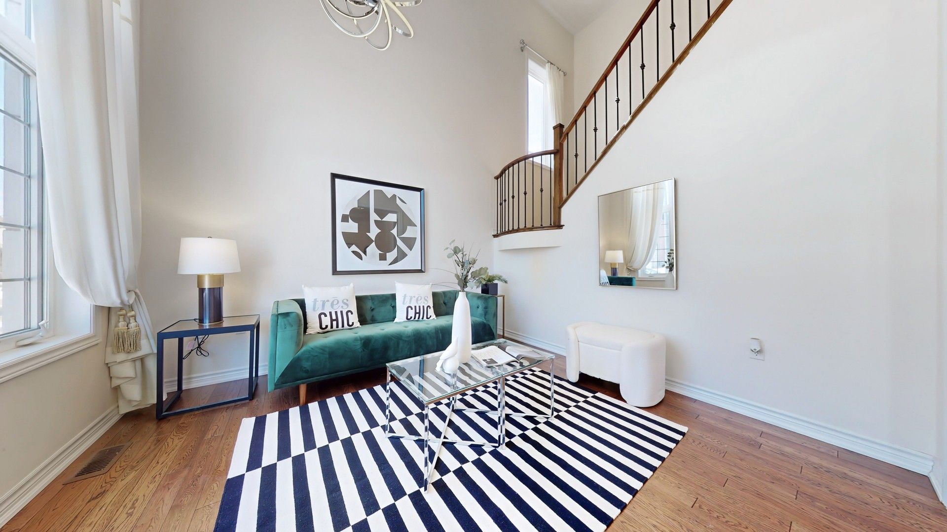 • High ceilings and upgraded hardwood create a welcoming feel.