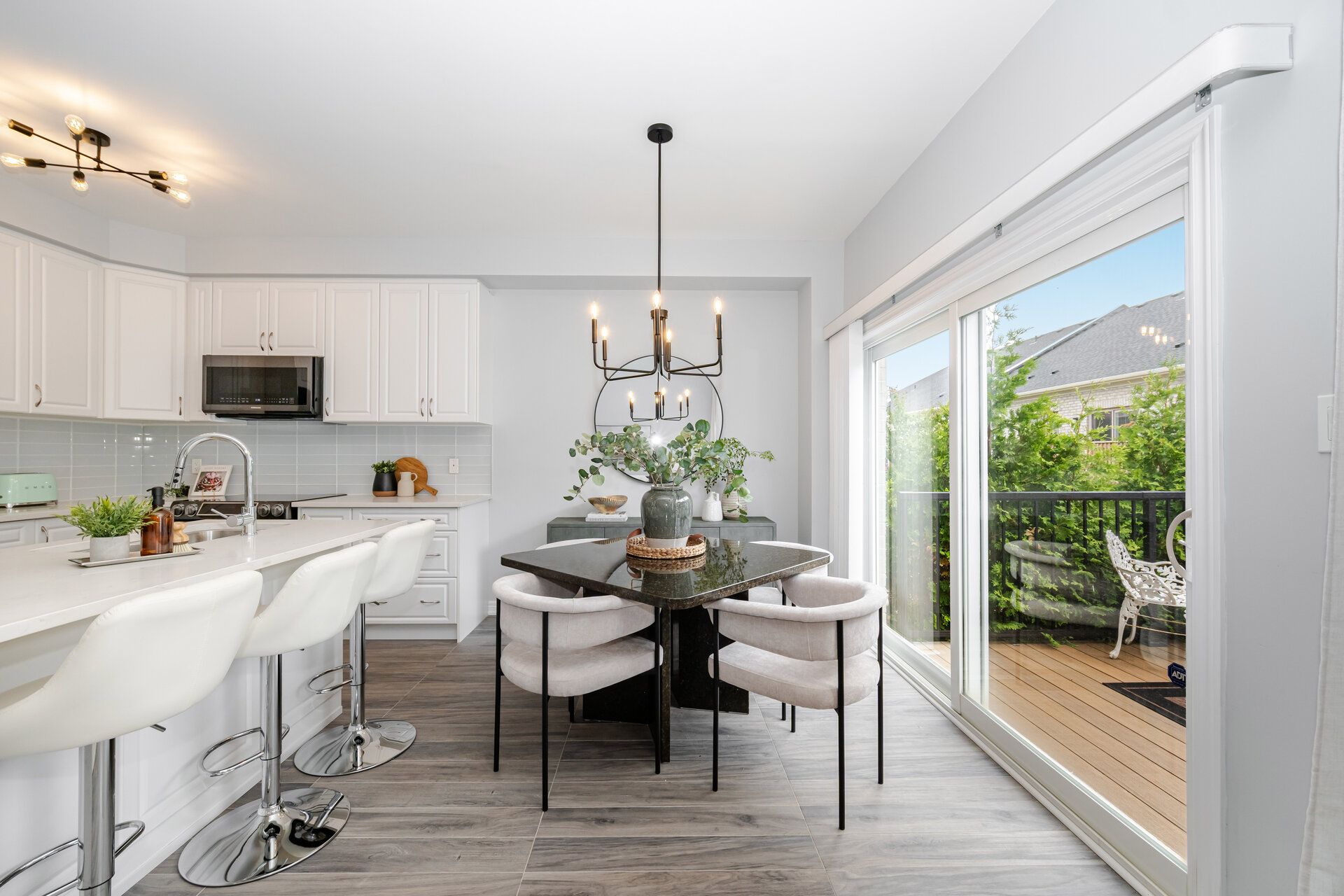 • Open kitchen and dining area leads to a large private deck for outdoor enjoyment.