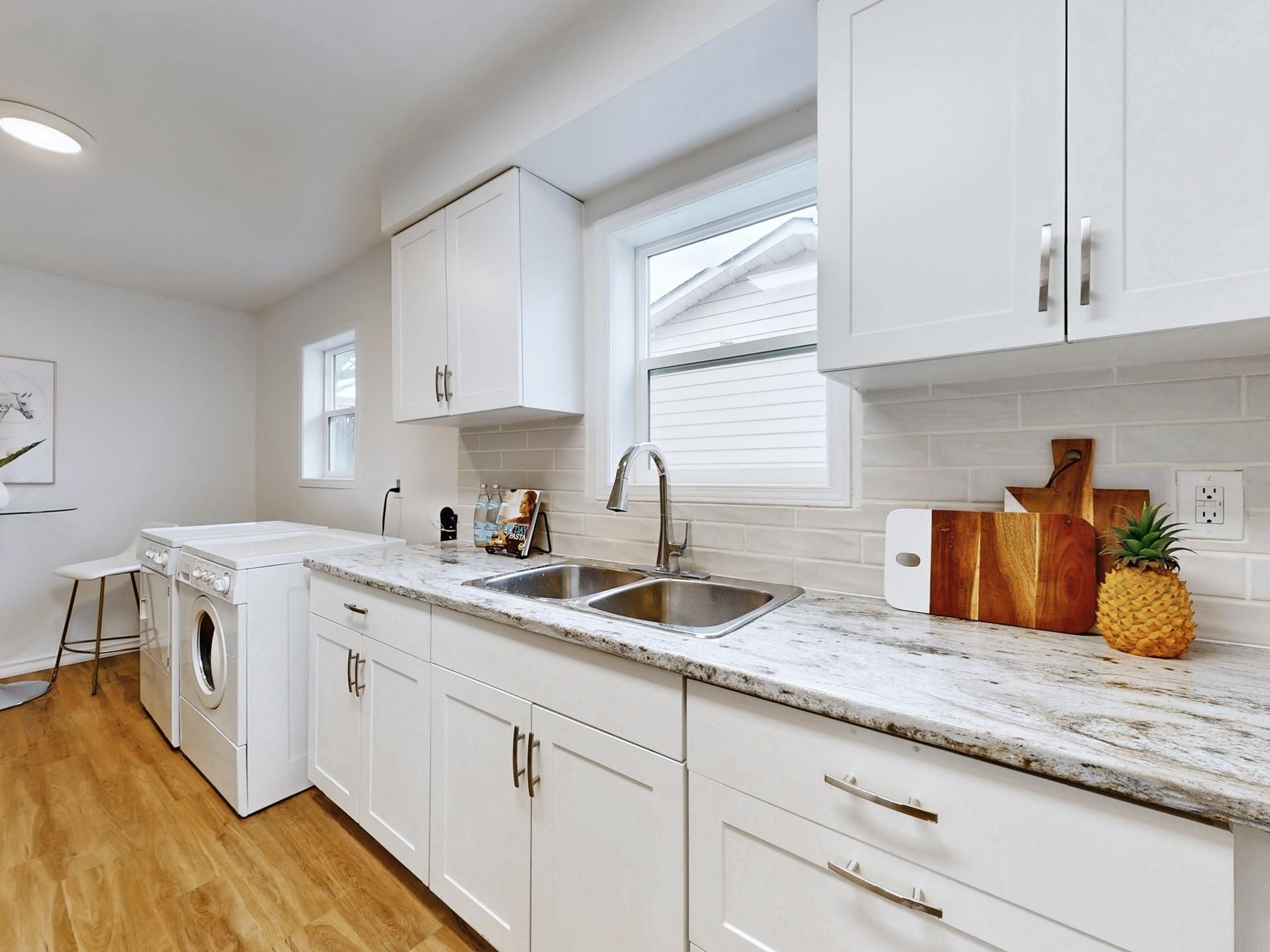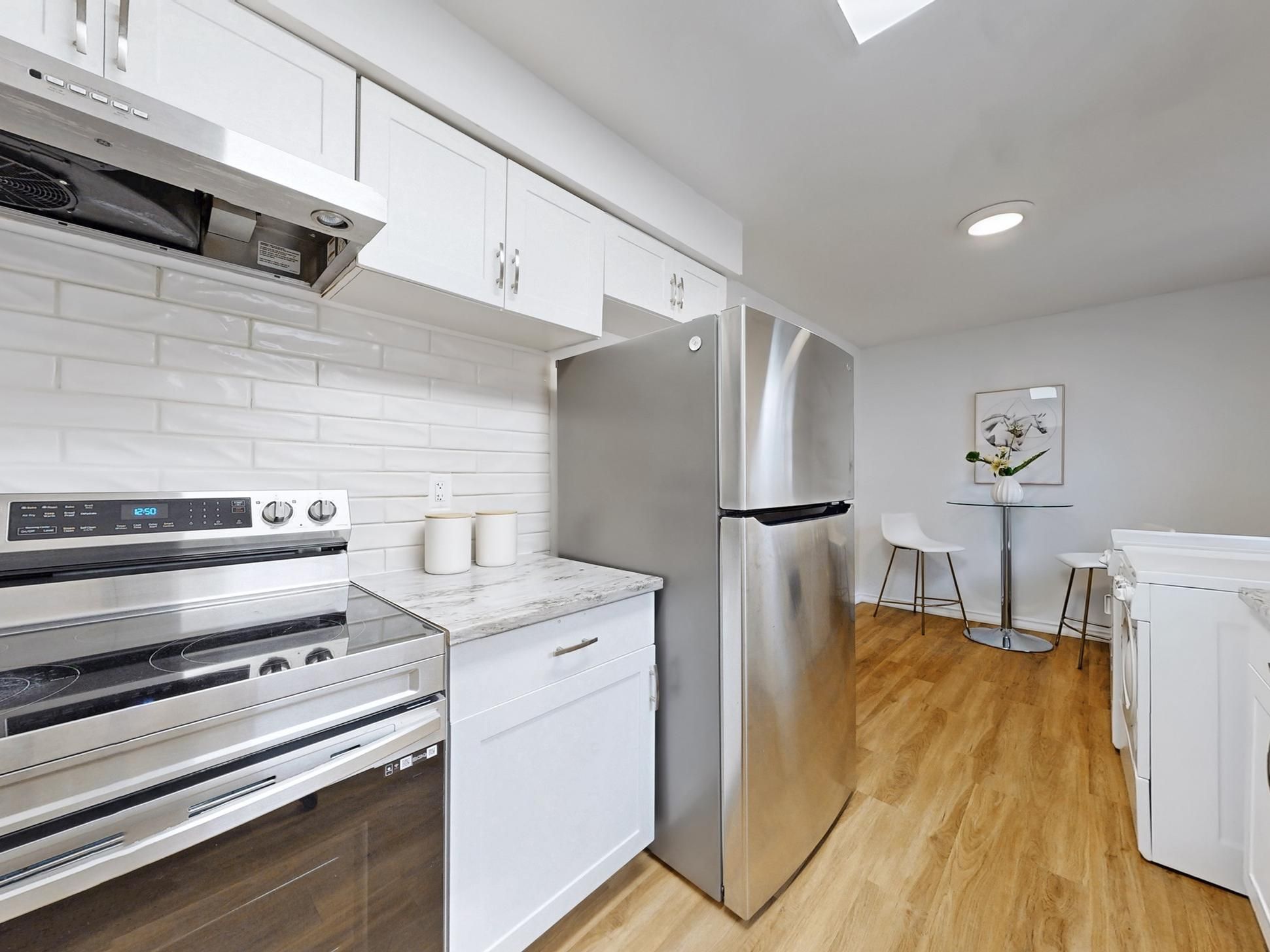 • Updated kitchen with stainless steel appliances and stylish finishes.