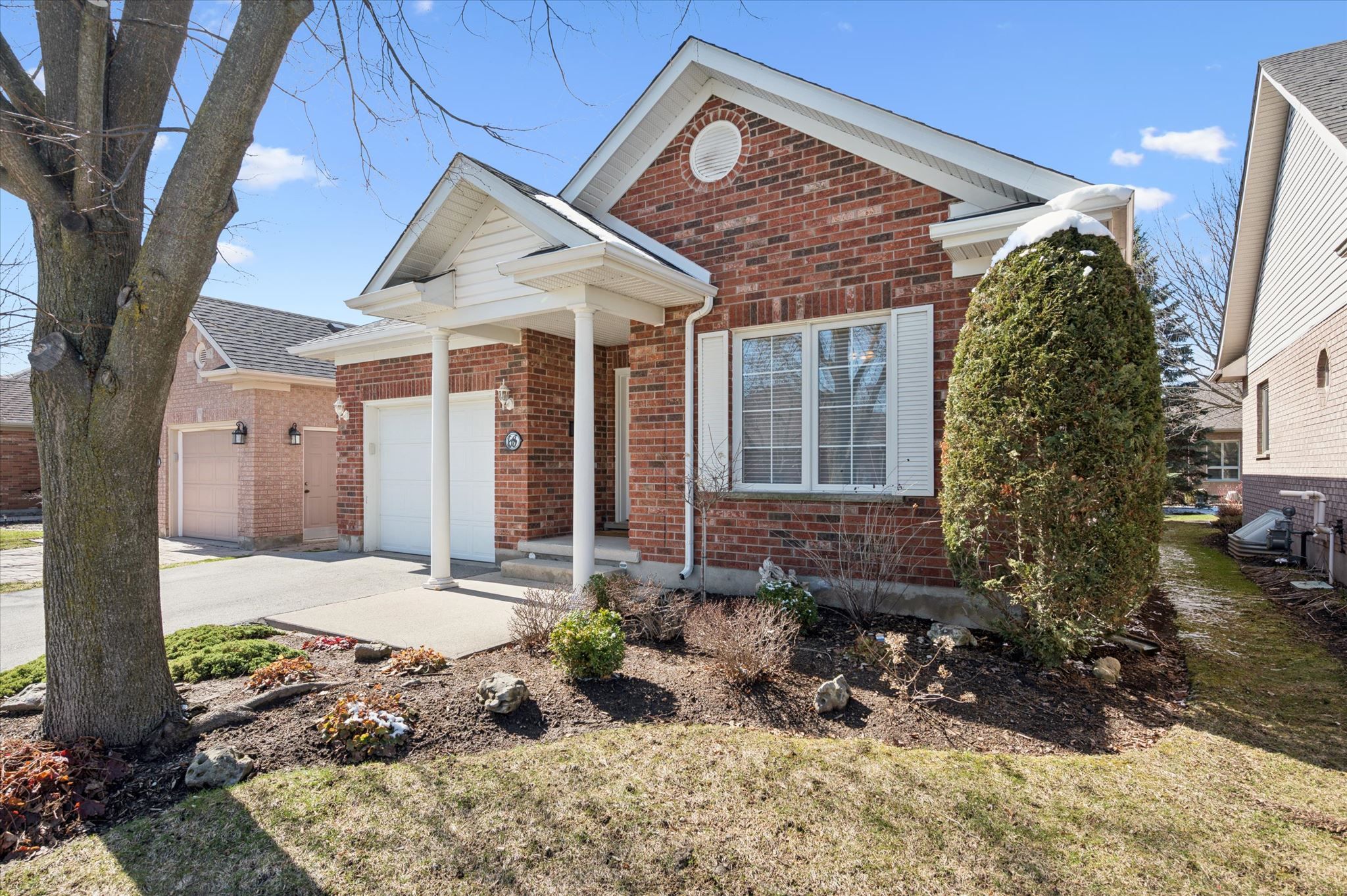 Sunlight, privacy, and zero homework. If you've been looking for a reason to finally retire your lawnmower and your stairs, 68 basswood is ready for you. Located in the heart of the village by the arboretum. Guelph's premier 55+ community, this red brick bungalow offers a lifestyle where your toughest daily decision is whether to hit the indoor pool before or after a round of tennis at the 42,000 square foot amenity centre. The main floor is a masterclass in efficiency and light. The front room, finished with actual hardwood, serves as a sophisticated home office or a guest bedroom for those relatives who will inevitably want to visit once they see your new setup. The open-concept kitchen doesn't just look at the living area; it participates, featuring a raised bar for morning coffee and a newer backsplash that adds a modern touch to a very well-maintained space. The real showstopper here is the "triple-wide" sliding glass door. It's significantly larger than your standard patio door, flooding the living room and its cozy gas fireplace with natural light. It leads out to a massive wood deck and a lower stone patio that feels like a secret garden. Thanks to the strategic greenery, you can enjoy your bbq in total privacy, shielded from the curious eyes of the neighborhood. The primary suite is exactly what you'd expect from a home designed for "right-sizing": spacious, featuring a walk-in closet and an ensuite with updated cabinetry and granite. Downstairs, the heavy lifting is already done with a finished bedroom and a rough-in for a third bathroom, leaving a massive unfinished area for a workshop, a gym, or just a very organized place to keep your holiday decorations. With over 90 social clubs, on-site healthcare, and the university's arboretum trails just minutes away, 68 basswood isn't just a move-it's an upgrade. Stop by and see why "everything is 15 minutes away" is the guelph motto you'll learn to live by.