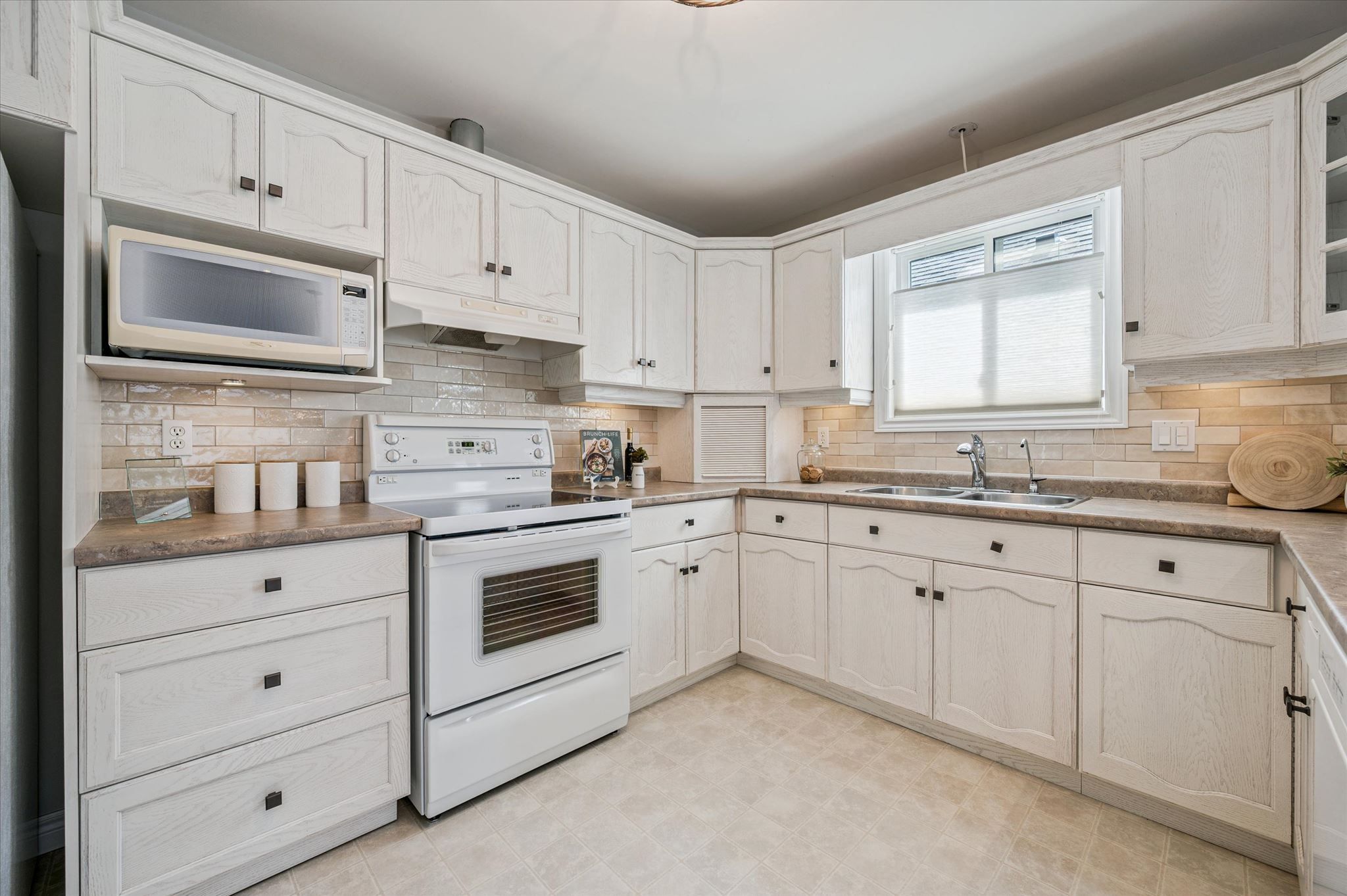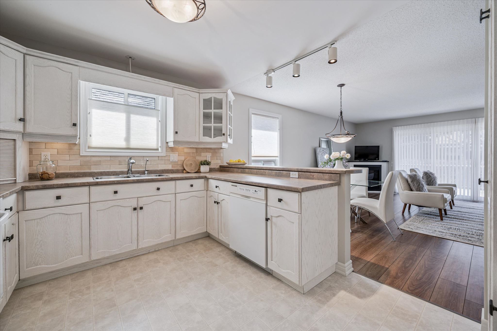 • Open-concept kitchen with modern finishes and raised bar for casual dining.